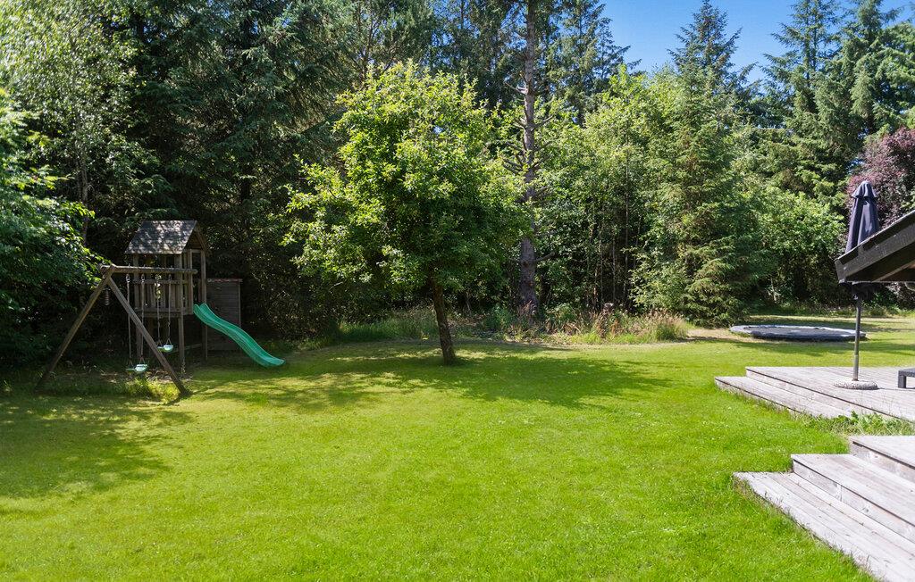 Der große, grüne Garten lädt zu jeder Tageszeit zum Verweilen ein. Setzen Sie sich morgens mit einer Tasse Kaffee auf die sonnige Terrasse, machen Sie auf einer Sonnenliege ein Nachmittagsschläfchen oder schauen Sie Ihren Kindern beim Spielen zu. Für die Jüngsten gibt es eine Schaukel, eine Rutsche und ein Trampolin. Versammeln Sie die Familie abends beim Grillen und lassen Sie den Tag gemeinsam ausklingen.