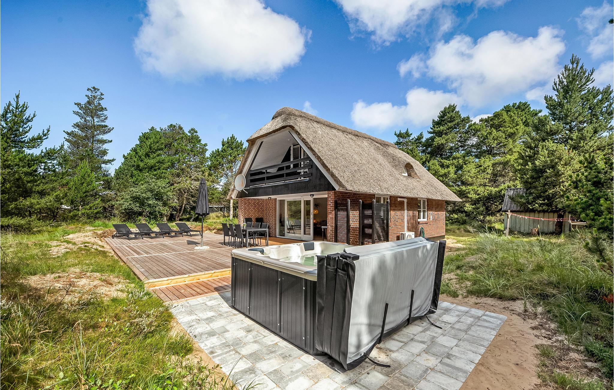 Charmantes Reetdachhaus in Blåvand mit Kamin, Whirlpool, zwei Terrassen und direkter Nähe zum Strand.