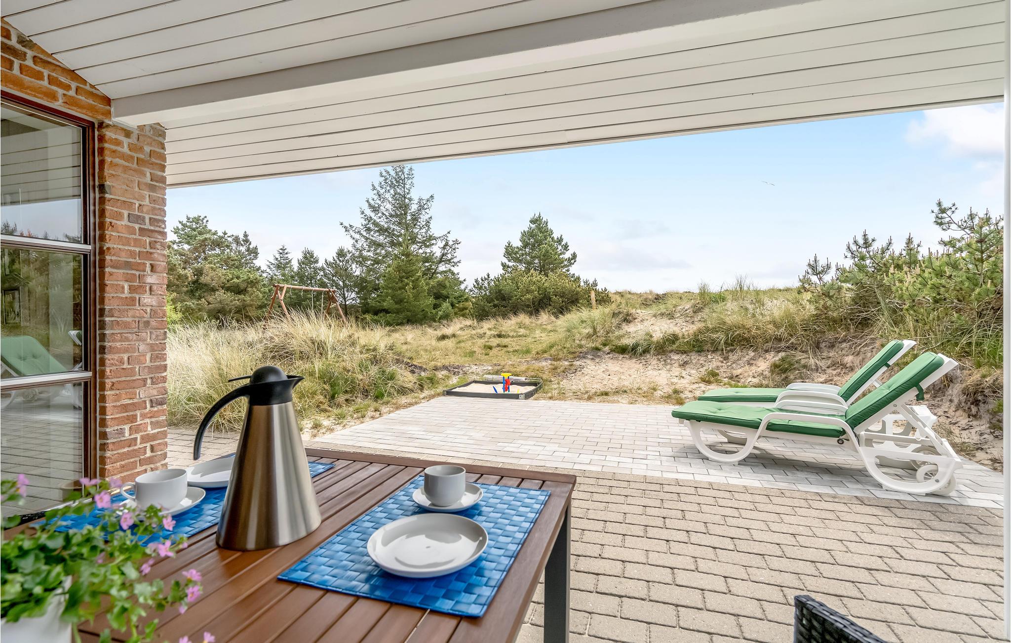 Supergemütliches Ferienhaus, gepflegt und mit persönlicher Einrichtung versehen. Das Herz des Hauses ist die Wohnküche, von wo der Blick in die Dünen vor dem Haus geht. Für ein gemütliches Ambiente dabei sorgt der Kaminofen. Schlaf werden Sie in drei Schlafzimmern finden, für die Kinder gibt es den Hems mit Schlafgelegenheit und Hygge-Ecke. Das Haus hat eine gute Architektur und bietet auch im Eingangsbereich eine Garderobe mit Platz für alle. Schöne Stunden im Freien haben Sie sicher auf der ausgedehnten Terrasse, die überdachten Bereiche sind ideal für lange Sommerabende in der frischen Luft..