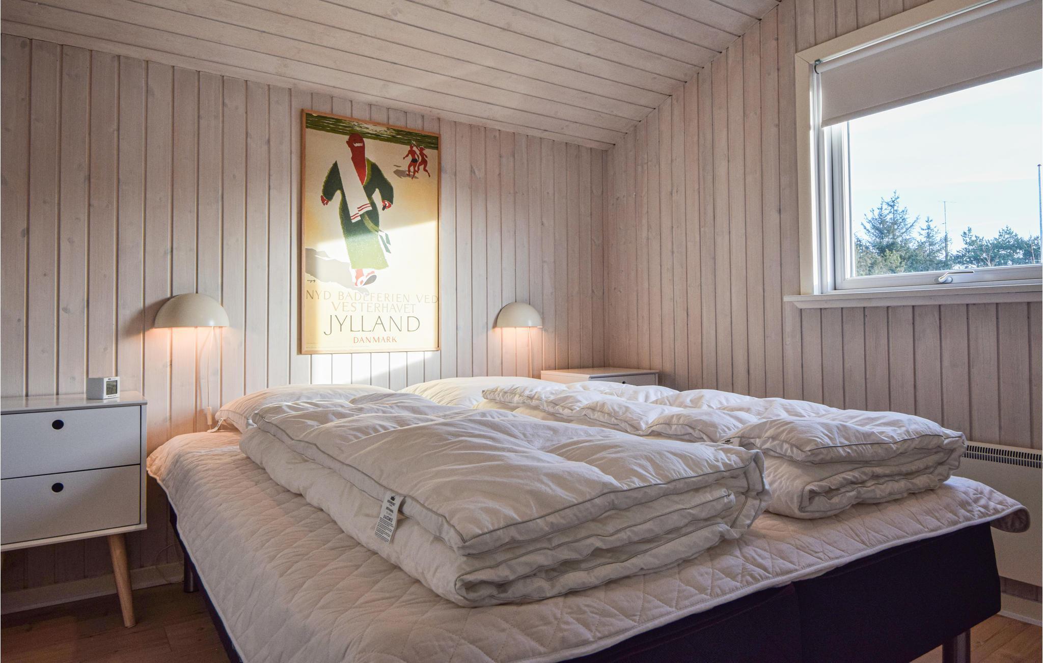 Mitten in Blåvands fantastischem Ferienparadies liegt dieses gemütliche und gut ausgestattete Holzferienhaus, in natürlicher Umgebung, nur einen kurzen Gang vom Blåvand Strand und dem Ort Blåvand. Hier gibt es gute Einkaufsmöglichkeiten, viele schöne Geschäfte, gute Restaurants, gemütliche Cafés, die alle ganzjährig geöffnet sind, und eine Vielzahl an Freizeitaktivitäten wie ein Erlebnisbad sowie Tennis-, Squash- und Badmintonplätze bietet. Das Haus mit Holzfußböden ist sehr geschmackvoll eingerichtet. Mit wenigen hundert Metern bis zum Strand merken Sie deutlich die fische Seeluft und das leise Rauschen der Nordsee. Der Strand und die Natur rund um Blåvandsind ganz besonders. So weit das Auge reicht sind hier breite, weiße Sandstrände, blaugrünes Meerwasser, imposante Dünen, weitläufige Heide und Wald- und Plantagengebiete, die vom größten Rothirschbestand Dänemarks bevölkert sind. Besuchen Sie die geschützte Halbinsel Skallingen, die von vielen Zugvögeln als Ruhe- und Nahrungsgebiet genutzt wird, oder erleben Sie den bezaubernden Sonnenuntergang über der Nordsee am Strand, in den Dünen oder im Ort. Bei einem Strandspaziergang haben Sie gute Chancen, Bernstein zu finden, wenn die Wind- und Wetterverhältnisse günstig sind. An Dänemarks bestem Badestrand dem Hvidbjerg Strand, haben Sie alle Vorteile der Nordsee. Außerdem ist der Strand sehr gut für Kinder geeignet, da er im Schutz des Riffes Horns Rev liegt, das etwa 12 km draußen im Meer liegt und als Fundament für einen großen Windmühlenpark dient. Besuchen Sie den 39 m hohen Turm Blåvandshuk Fyr, der sich an Dänemarks westlichstem Punkt befindet und von desse Spitze Sie eine herrliche Aussicht über das Meer und Blåvand haben. Im Ort gibt es viele offene Werkstätten zu besichtigen. In der Umgebung gibt es auch viele schöne Ausflugsziele, wie z.B. die alte Domkirchenstadt Ribe, die älteste Stadt in Dänemark, und Esbjerg mit dem Fischerei- und Seefahrtsmuseum und einem großen Hafen, sowie natürlich Legoland, den Löwenpark in Givskud eine gute Autostunde von hier.