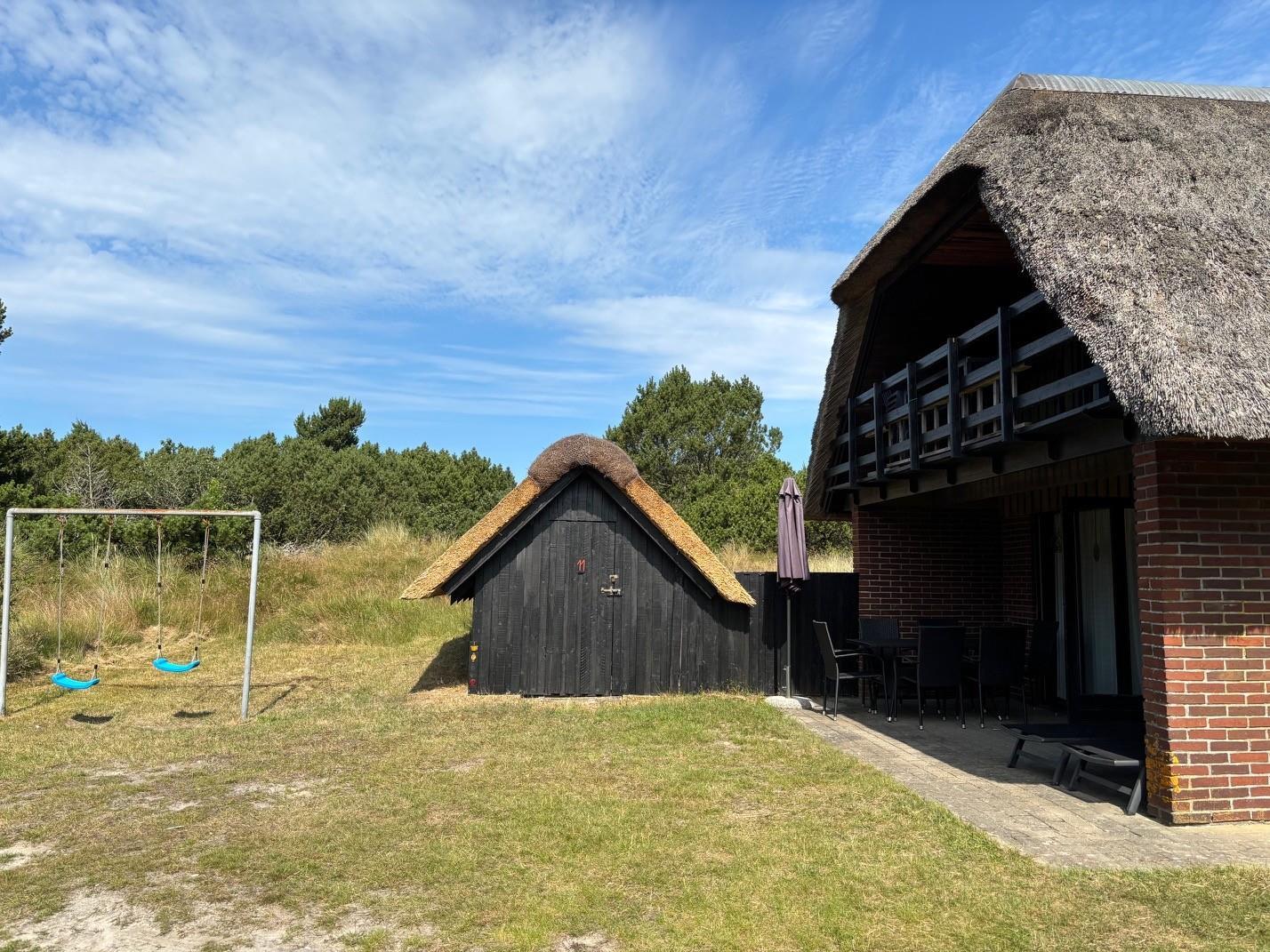 Reetgedecktes, doppelwandiges, Nichtraucher-Steinhaus auf zwei Etagen, unweit von Blåvand und dem Strand. Das Haus wurde 1974 erbaut. Es verfügt über WLAN, Fernseher mit Nordlys-Kanälen, Chromecast und Blu-ray/DVD-Player. Die Küche ist mit Geschirrspüler, separatem Gefrierschrank und Mikrowelle ausgestattet. Eine Waschmaschine sorgt für ausreichend Platz im Urlaub. Hinter dem Haus befindet sich ein Wäscheständer zum Trocknen. Im Wohnzimmer sorgt der Holzofen für gemütliche Stunden. Das Haus liegt auf einem großen Naturgrundstück mit einer schönen, überdachten Terrasse. Im 1. Stock gibt es von einem Schlafzimmer aus Zugang zu einer kleinen Südveranda. Hier finden Sie einen Gartentisch und Stühle, falls Sie die beiden Bänke oben nicht nutzen möchten. Im 1. Stock gibt es in beiden Schlafzimmern zwei Einzelbetten und ein Juniorbett. Im großen Schlafzimmer im 1. Stock gibt es Verdunkelungsrollos. Das Schlafzimmer im Erdgeschoss verfügt über Verdunkelungsvorhänge und ein 3/4-Bett. Im Schrank des Schlafzimmers im Erdgeschoss befinden sich zwei Kinderstühle. Es gibt zwei Terrassen – eine davon ist, wie bereits erwähnt, überdacht. Auf der überdachten Terrasse befinden sich zwei Sonnenliegen. Wie bereits erwähnt, gibt es auch eine Veranda. Vor dem Haus befindet sich eine Schaukel. Das Haus liegt in einer wunderschönen Lage auf einem Dünengrundstück mit vielen verschiedenen Tierarten. Hier können Sie in der Natur und doch stadtnah vollkommen entspannen. Auf der überdachten Terrasse oder Veranda können Sie entspannen und vielleicht die Sterne beobachten. Sie können selbst kochen oder einige der fantastischen Restaurants in Blåvand und Ho besuchen. Parken Sie hier Ihr Auto und schon kann der Urlaub beginnen. Alles ist zu Fuß erreichbar. Wenn Sie mit einem Elektroauto anreisen, ist das Laden auf dem Grundstück strengstens verboten. Das Stromnetz ist nicht für das Laden von Elektroautos jeglicher Art ausgelegt. Daher ist auch die Verwendung der sogenannten Oma-Ladegeräte im Haus verboten. Bitte informieren Sie sich über das Laden von Elektroautos an den Ladestationen in Blåvand. 1–2 kleine Haustiere sind willkommen, sofern sie Türen, Möbel usw. nicht beschädigen. Das Grundstück ist nicht eingezäunt, Hunde müssen daher an der Leine geführt werden. In Blåvand gibt es einen kleinen Hundepark, in dem die Hunde frei laufen können. Blåvand ist eine wunderschöne Küstenstadt im Nationalpark Wattenmeer an der Westküste Jütlands in Süddänemark. Die Stadt ist ein beliebtes Touristenziel und bekannt für ihre atemberaubende Natur, ihre charmante Atmosphäre und ihre zahlreichen Attraktionen, die Besucher aus Dänemark und dem Ausland anziehen.