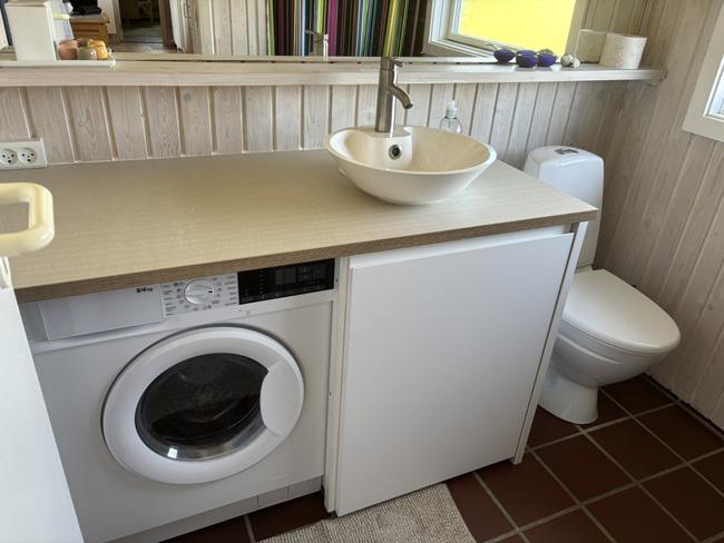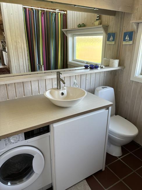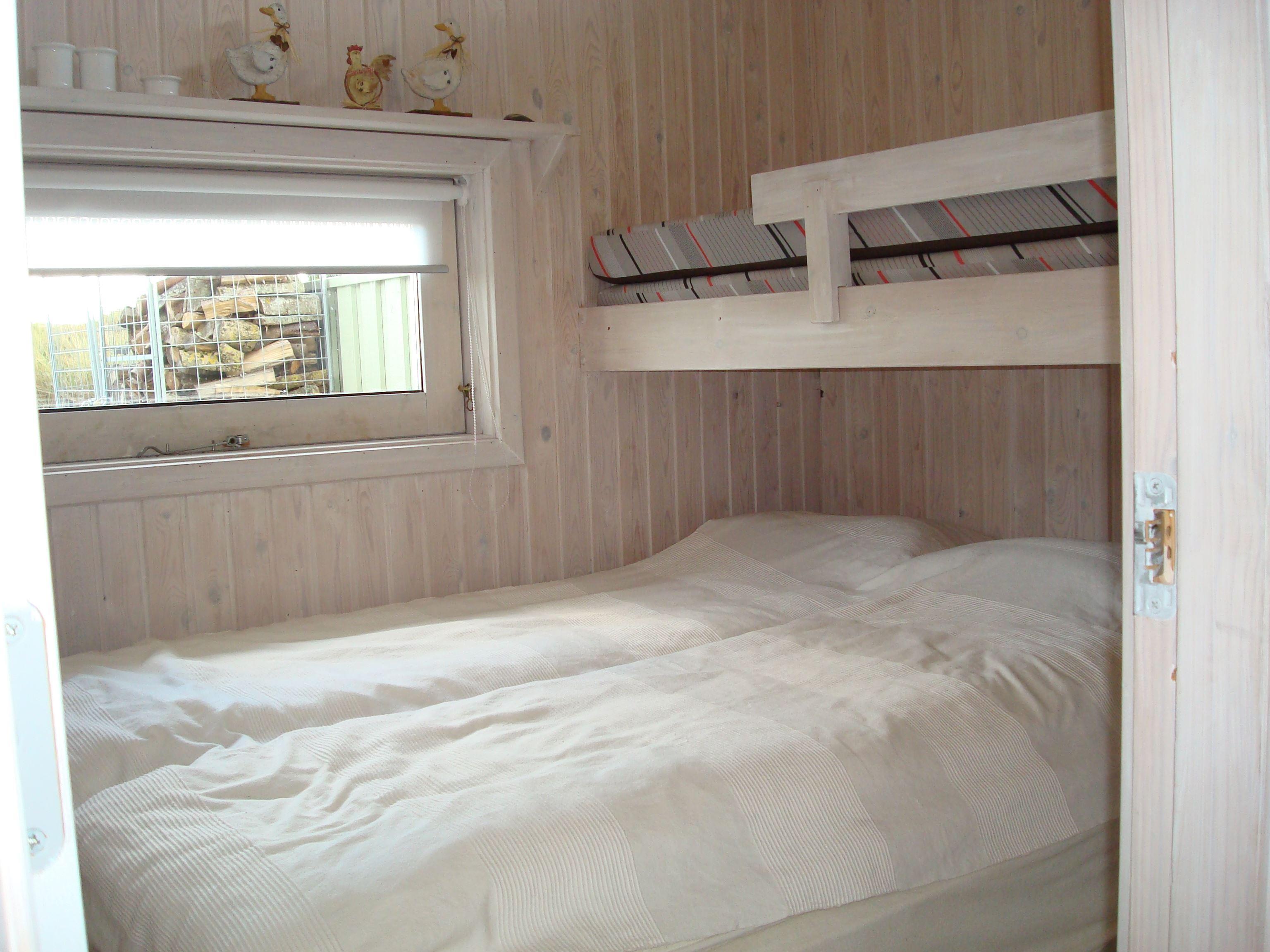 Huset har et badeværelse og tre soveværelser. Det ene soveværelse har en dobbeltseng og de to andre har en trekvart seng og en overhængende køje hver.