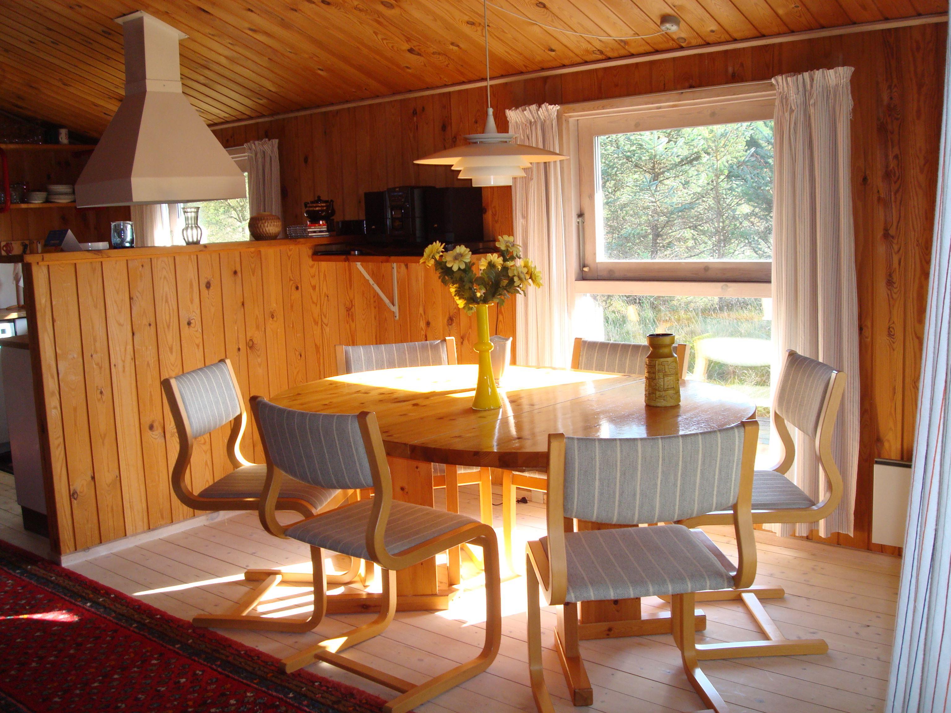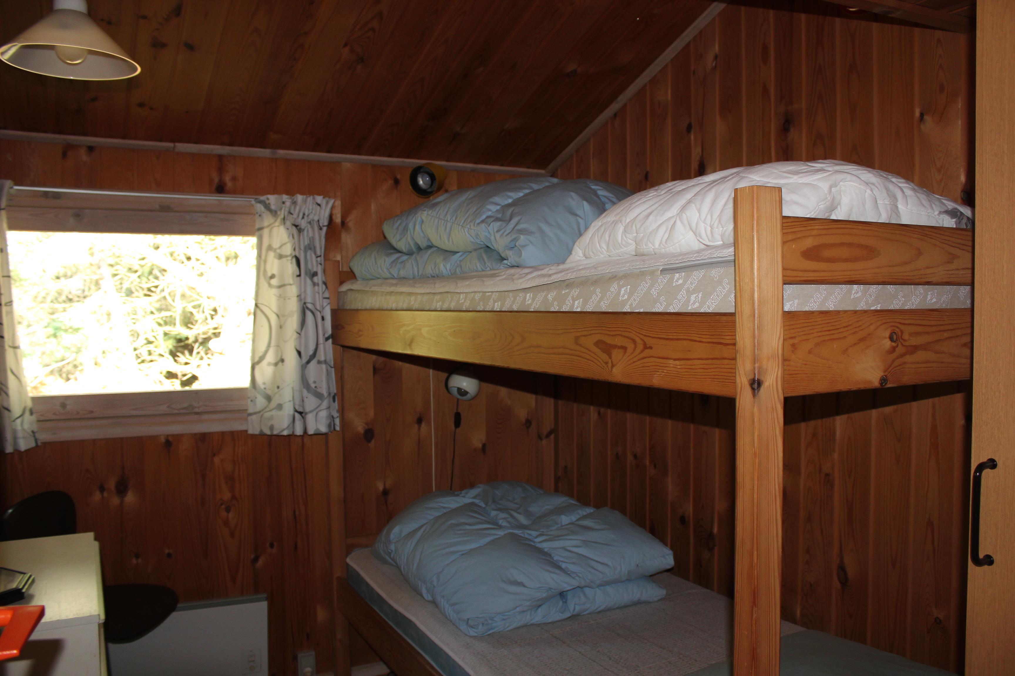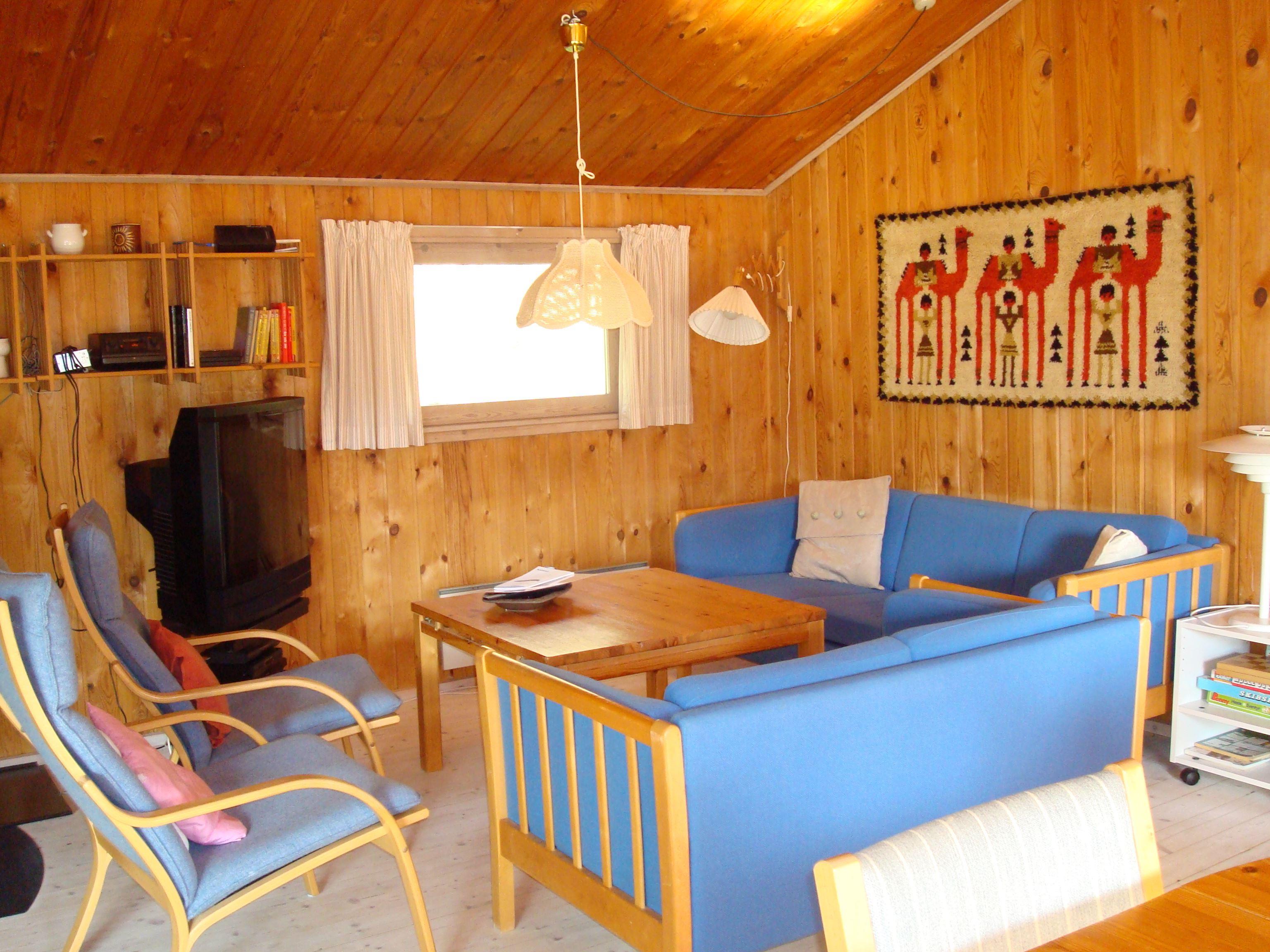 Der Kern des ganzen Hauses ist der Koch - und Wohnbereich mit einer grossen Küche, einem Esstisch und einer Sofaecke, beide Bereiche mit viel Platz für die ganze Familie. Das Haus hat 3 Schlafzimmer, eines davon mit einem Doppelbett und die beiden anderen mit je einem Etagenbett ausgestattet. Es gibt auch einen Schlafboden. Einige Fenster des Hauses sind grosszügig gebaut, so dass eine Menge Licht hereinfällt.