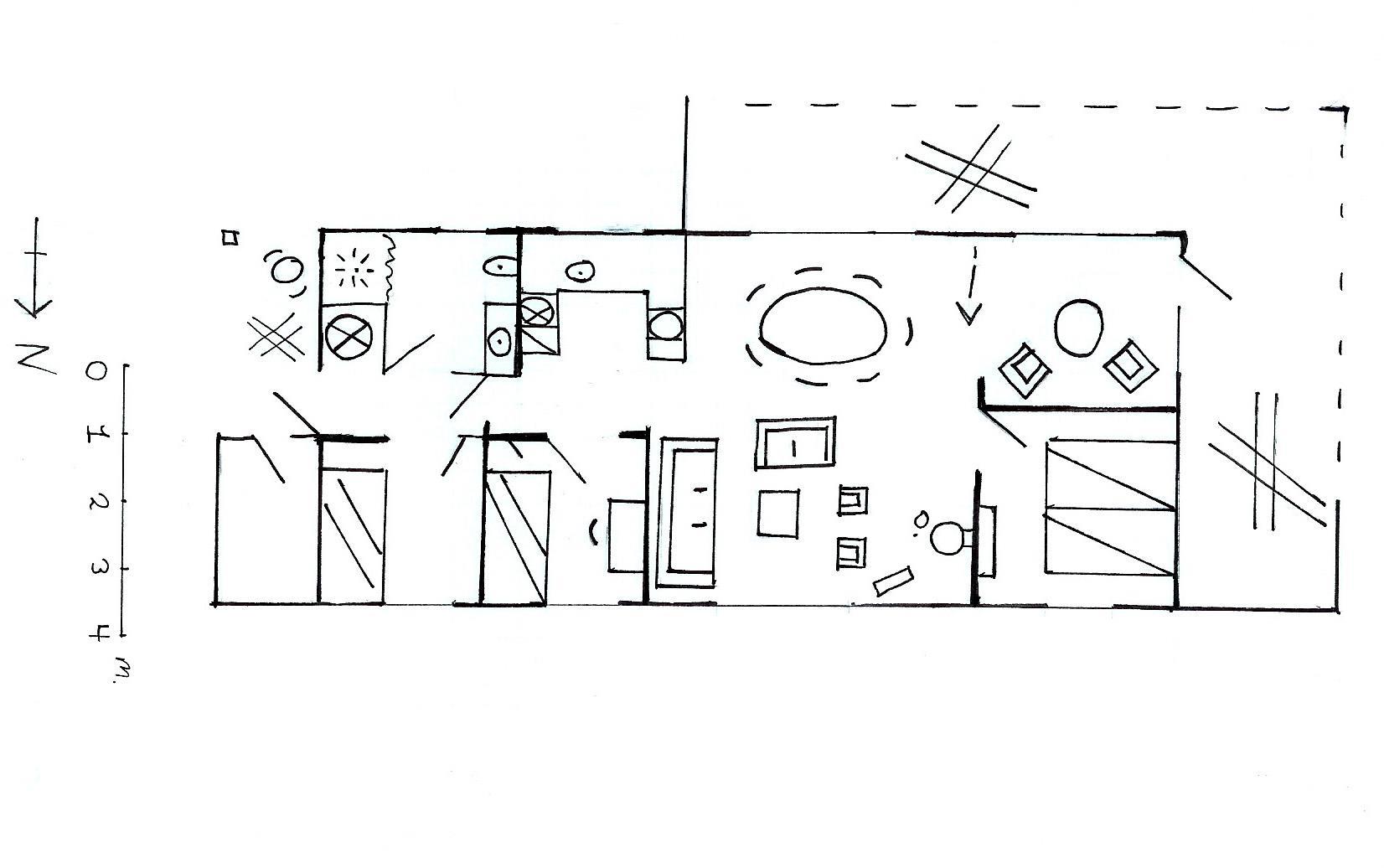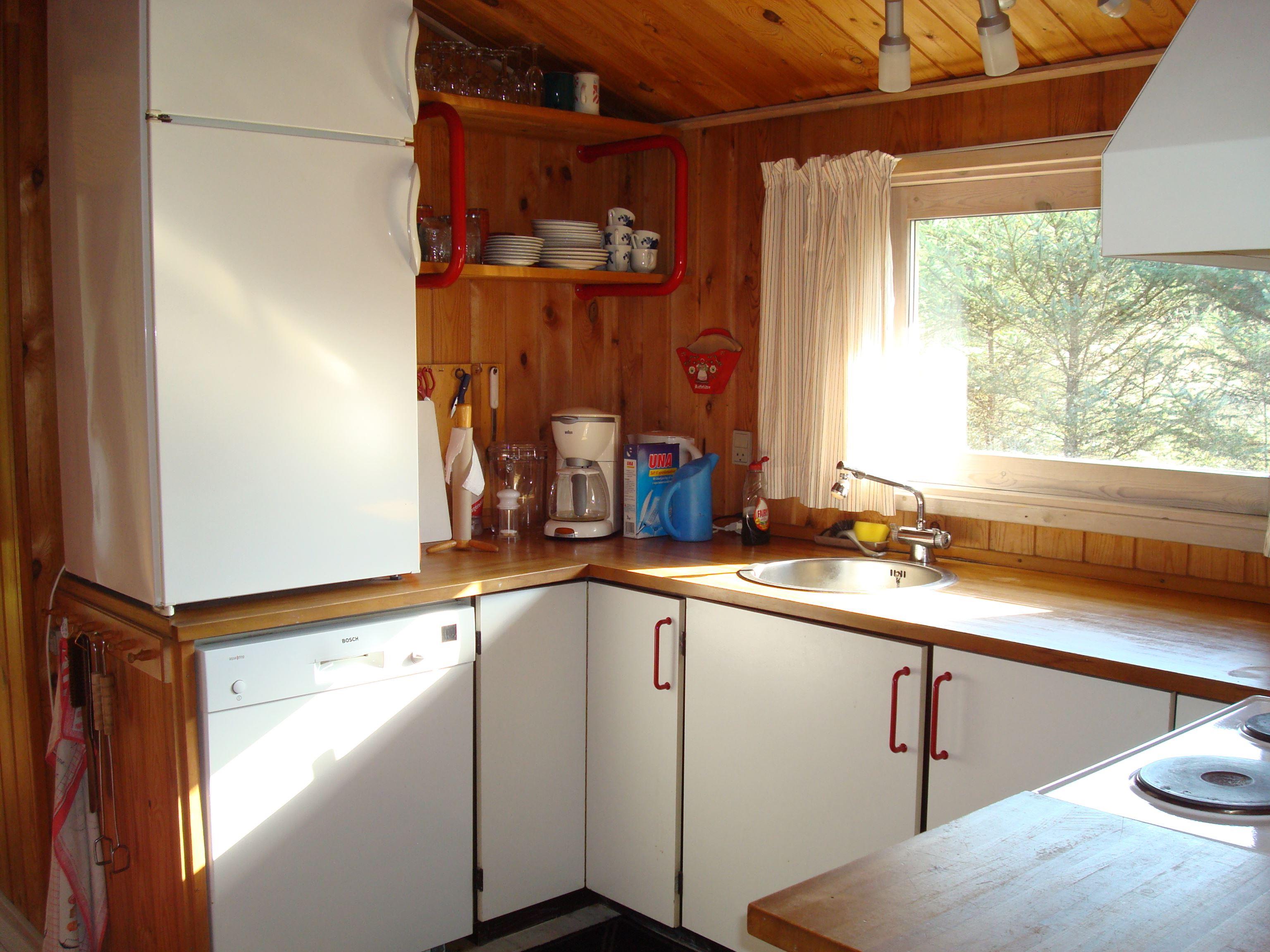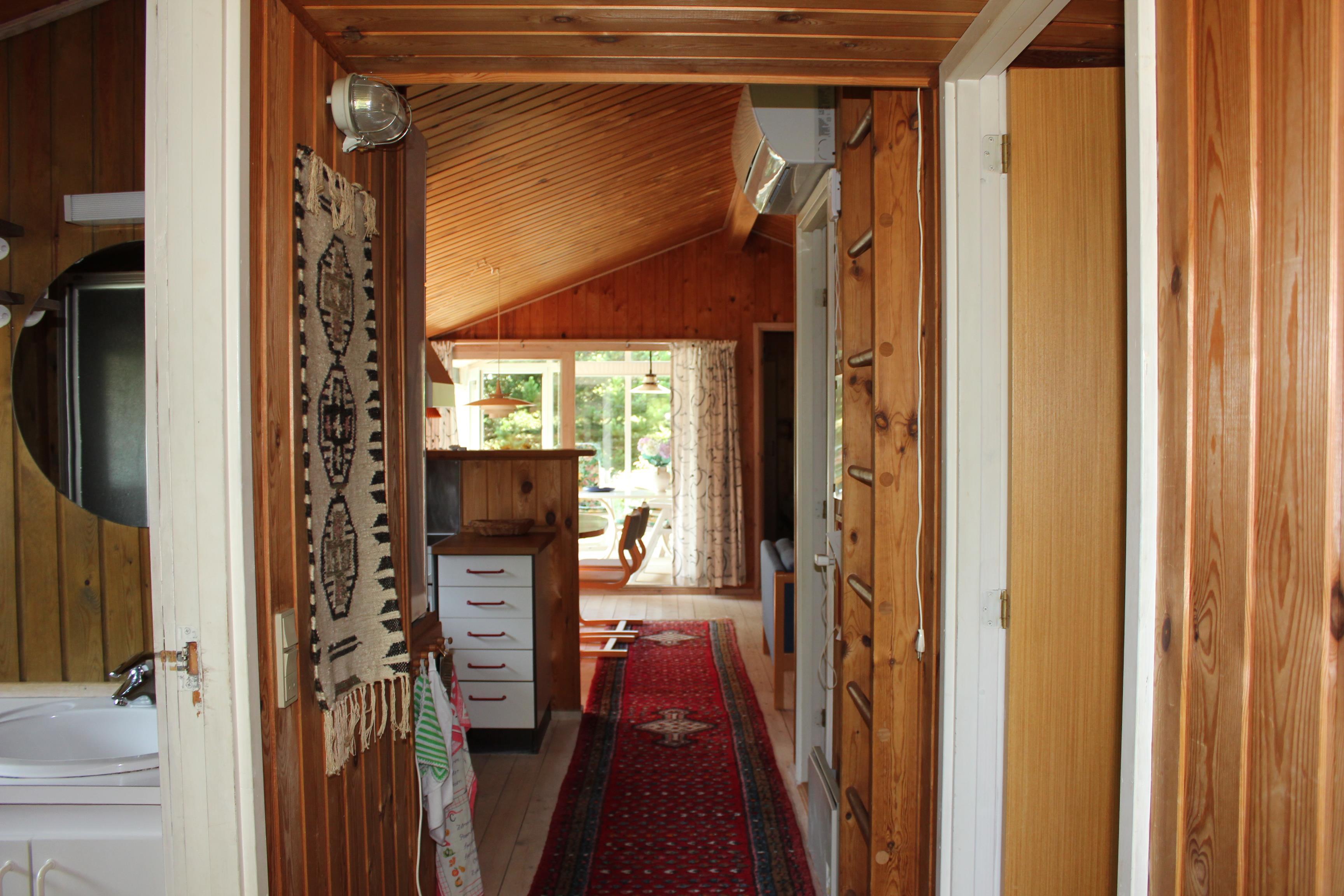 Der Kern des ganzen Hauses ist der Koch - und Wohnbereich mit einer grossen Küche, einem Esstisch und einer Sofaecke, beide Bereiche mit viel Platz für die ganze Familie. Das Haus hat 3 Schlafzimmer, eines davon mit einem Doppelbett und die beiden anderen mit je einem Etagenbett ausgestattet. Es gibt auch einen Schlafboden. Einige Fenster des Hauses sind grosszügig gebaut, so dass eine Menge Licht hereinfällt.