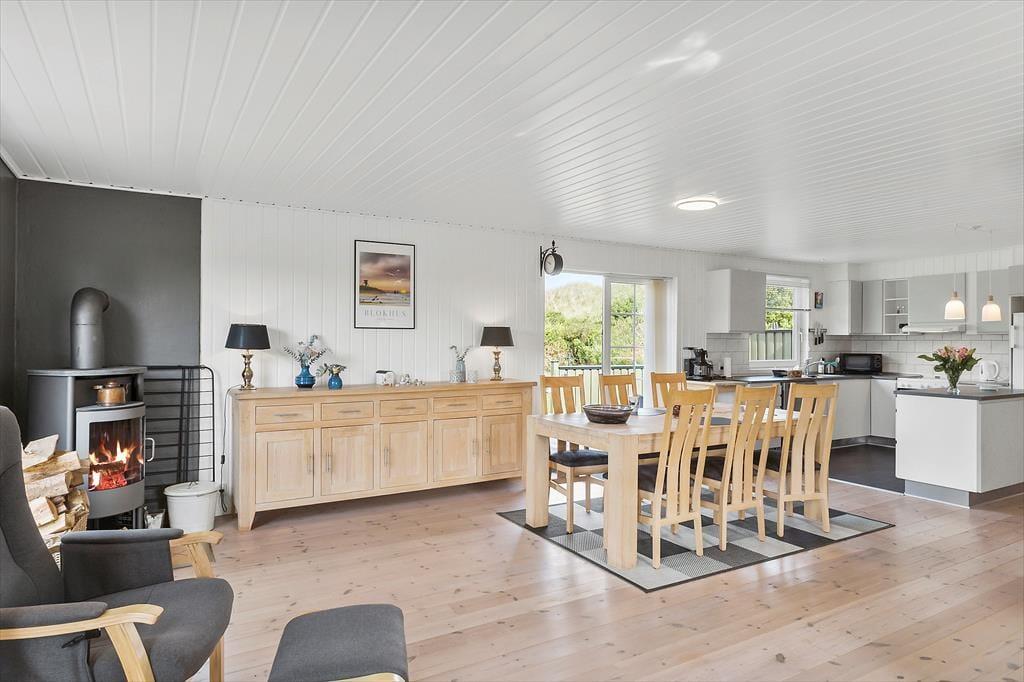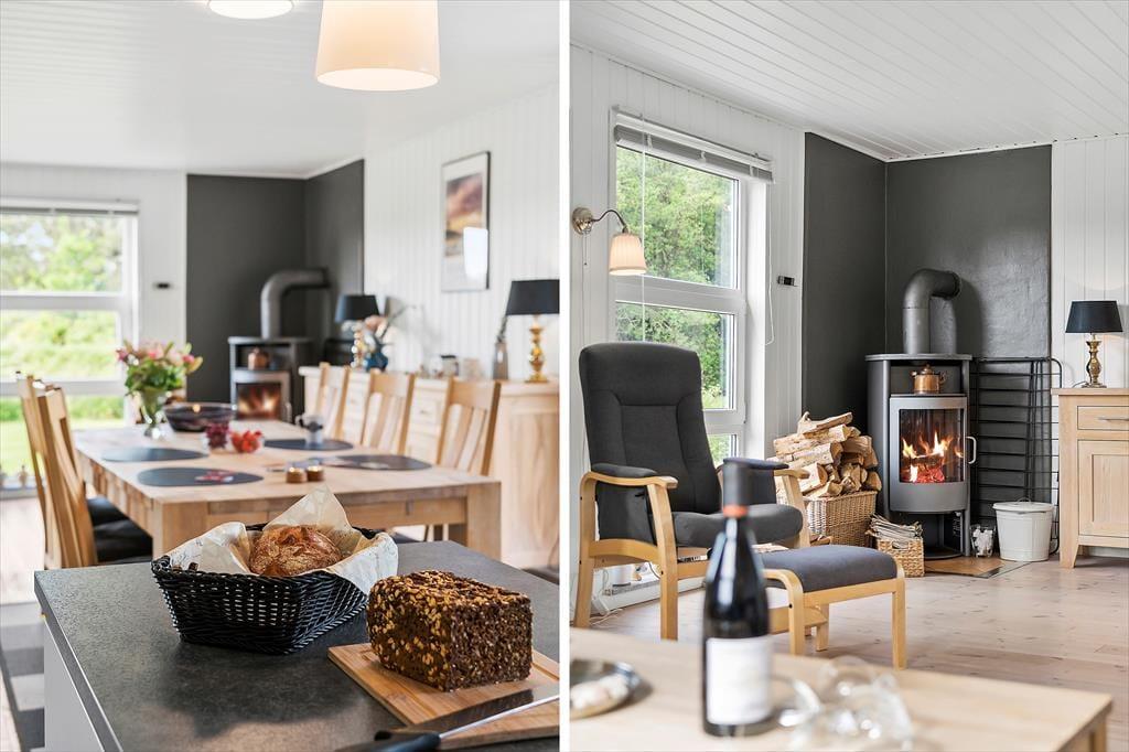 Betrete dieses gemütliche Ferienhaus, wo dich eine heimelige und entspannte Atmosphäre erwartet. Hier wurde an alles gedacht, um den Urlaub in vollen Zügen zu genießen. Das Wohnzimmer ist hell und einladend mit einer angenehmen Aufenthaltsatmosphäre, in der du dich auf einem weichen Sofa vor dem Kamin niederlassen kannst. Von hier aus hast du einfachen Zugang zu einer gut ausgestatteten Küche, in der das Kochen eine Freude ist, egal ob du eine schnelle Mahlzeit oder ein leckeres Abendessen für die ganze Familie zubereiten möchtest. Die großen Fenster und das offene Raumgefühl schaffen eine Verbindung zwischen drinnen und draußen, sodass das Licht und die Natur hereingelassen werden und den Aufenthalt besonders gemütlich machen. Die komfortablen Schlafzimmer bieten eine ruhige Umgebung für eine gute Nachtruhe, sodass du frisch und ausgeruht in einen neuen Ferientag starten kannst.