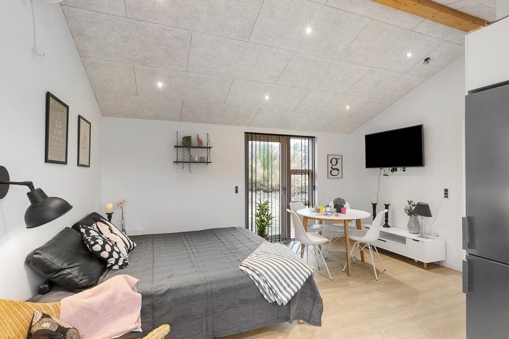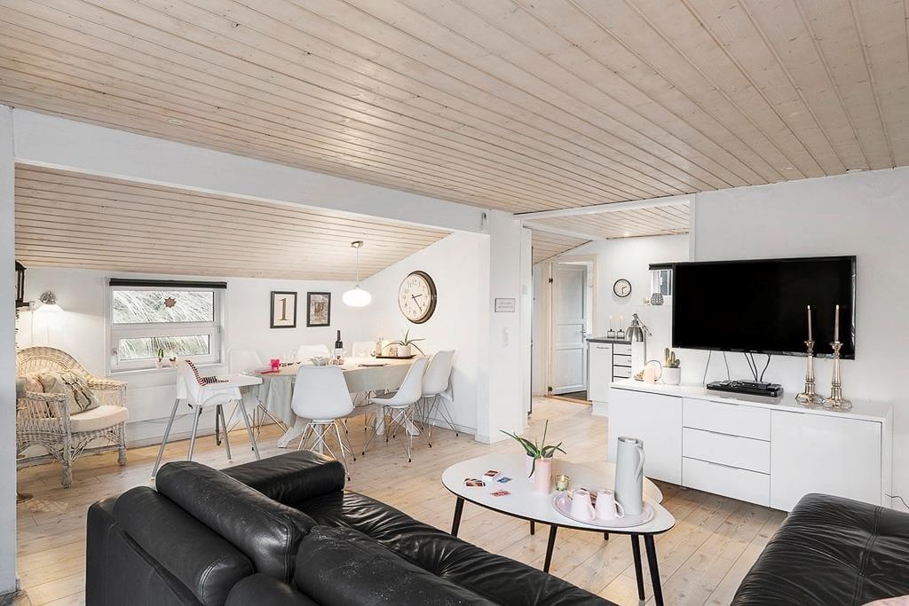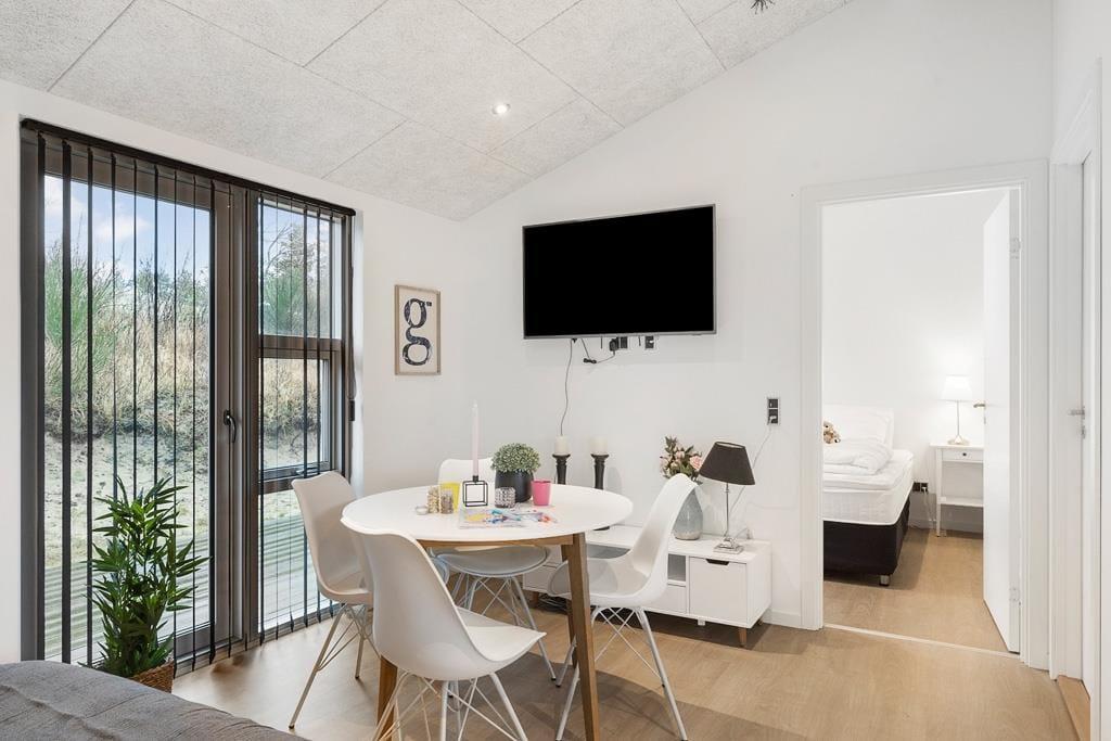 Herzlich willkommen in einem schönen und sehr funktionalen Ferienhaus. Das Haus ist in einem warmen Stil mit weißen Holzwänden, geschmackvollen Möbeln und einem großen Kamin eingerichtet, damit auch Urlaube in den kühleren Monaten möglich sind. Es gibt tatsächlich nichts Schöneres als nach einem langen Spaziergang an der frischen Luft am Strand in die Wärme zu kommen und es sich mit einem heißen Kakao gemütlich zu machen. Der Mittelpunkt des Hauses ist eindeutig das Wohnzimmer, in dem Sie vor dem TV entspannen, auf dem Boden spielen oder ein spannendes Buch lesen können. Außerdem verfügt das Haus über zwei Schlafzimmer -beide mit einem Doppelbett und ein Badezimmer mit Dusche. Ein richtig gemütliches und sehr funktionales Ferienhaus, in dem die Familie definitiv eine schöne gemeinsame Zeit verbringen wird!