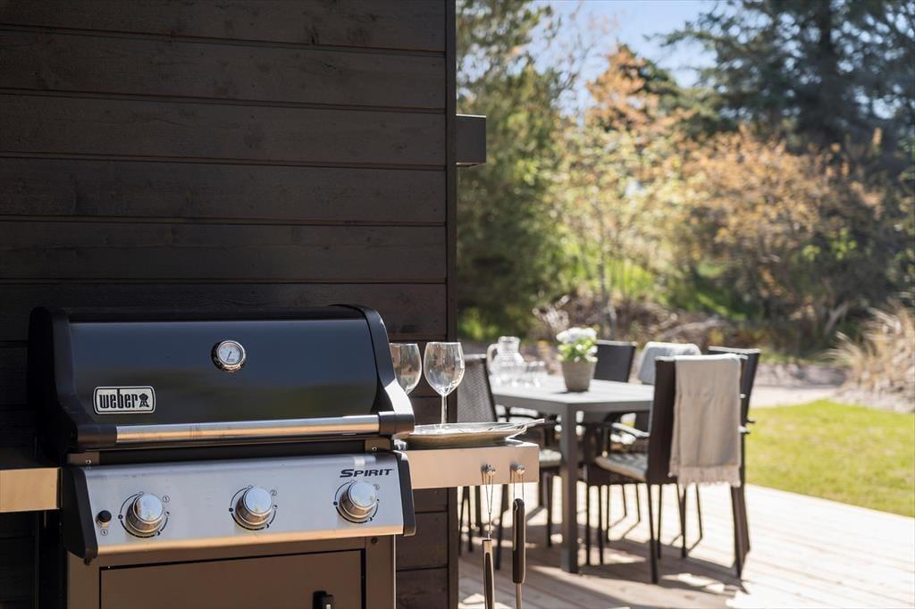 Die große Terrasse ist das Herzstück des Hauses im Freien. Hier finden Sie einen Whirlpool, eine Sauna und eine Außendusche – alles umgeben von der Ruhe des Naturgrundstücks. Tagsüber können Sie sich in der Sonne entspannen, während Sie abends den Sternenhimmel vom Whirlpool aus genießen. Die nach Südwesten ausgerichtete Terrasse garantiert den ganzen Tag Sonne, und die überdachten Bereiche bieten Schatten, wenn nötig. Egal, ob Sie grillen, lesen oder einfach die Natur genießen möchten, die Terrasse ist der ideale Ort.