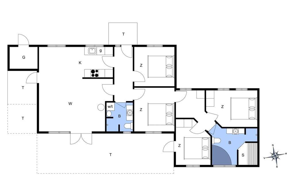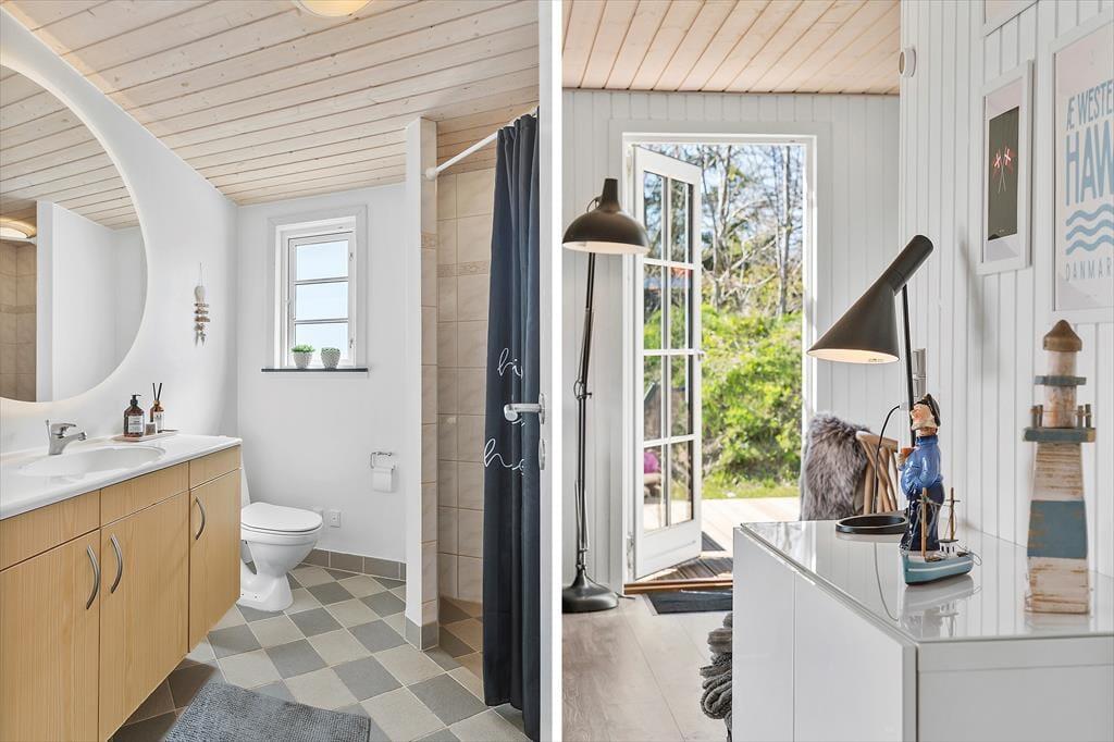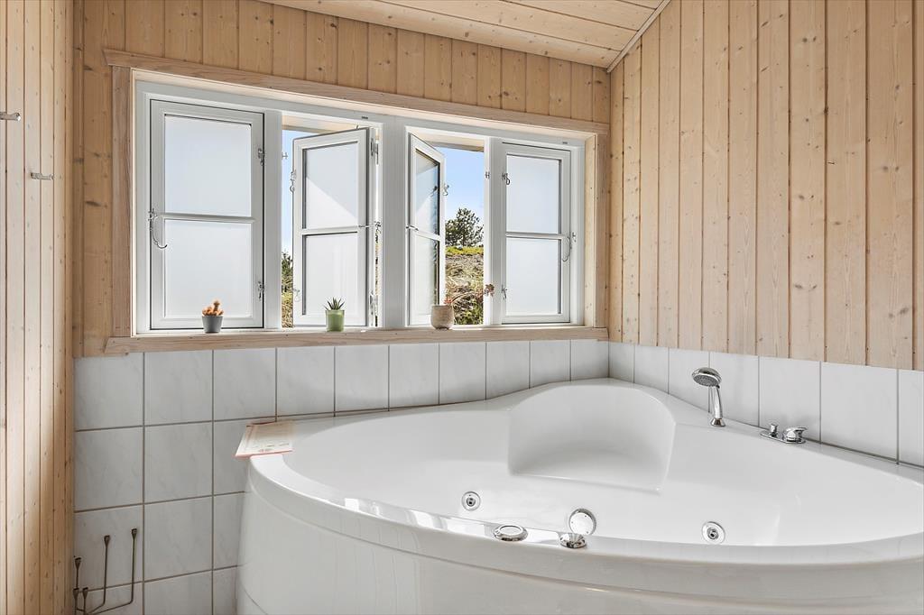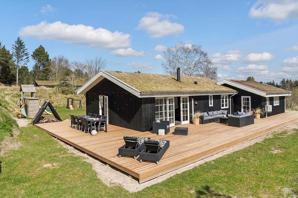Das ursprünglich im Jahr 1981 erbaute Ferienhaus wurde 2018 einer umfassenden Renovierung unterzogen und präsentiert sich Ihnen nunmehr in einem ganz hervorragenden Zustand. Die hellen Räume verfügen über eine geschmackvolle und einladende Einrichtung. Die Holzvertäfelung der Wände, die Sprossenfenster, der Kamin und andere ansprechende Details verleihen diesem Urlaubsdomizil die wunderbar gemütliche und typisch dänische Ferienhausatmosphäre. Egal ob Sie als Familie, als Paar oder mit Freunden anreisen, dieses Haus bietet einen herrlichen Rahmen für jegliche Urlaubsform. Das Haus beherbergt vier Schlafräume, die allesamt mit einem Doppelbett ausgestattet sind. Hinzu gesellen sich zwei Badezimmer, von denen das größere mit seinem Whirlpool und der Sauna erholsame und entspannte Moment voller Wellnessstimmung verspricht. Den Rest der Wohnfläche nennt der offen mit der Küche verbundene Wohnbereich sein Eigen. Dieser besticht mit viel Bewegungsfreiheit und lädt zum gemütlichen Beisammensein während der Zubereitung der Mahlzeiten, bei Gesellschaftsspielen am Esstisch oder entspannten Momenten auf den Sofas ein.