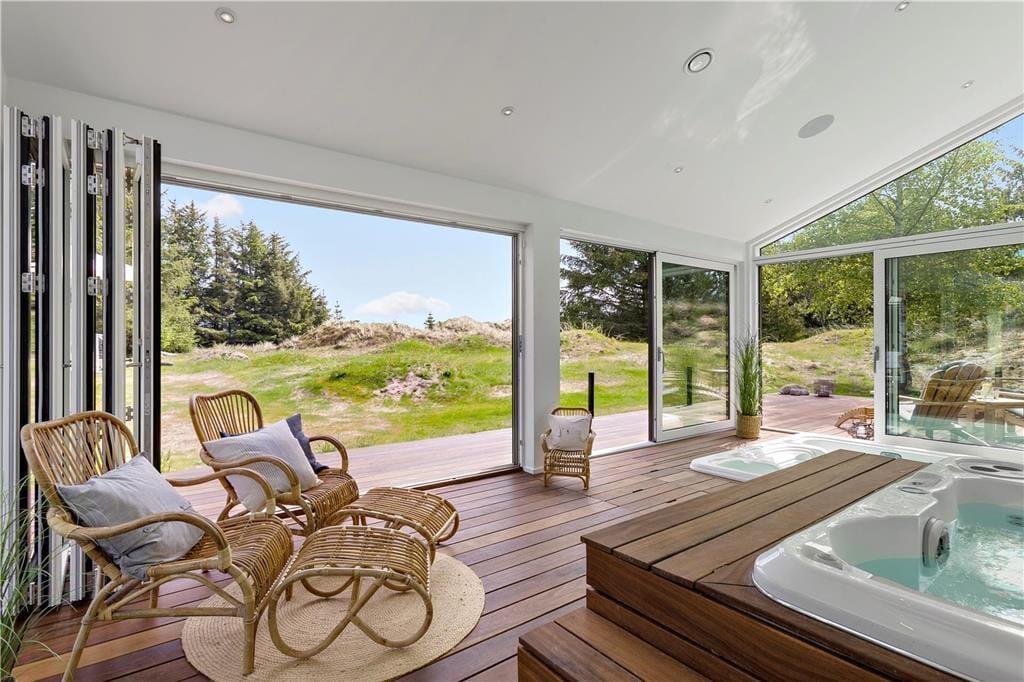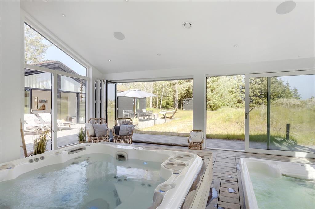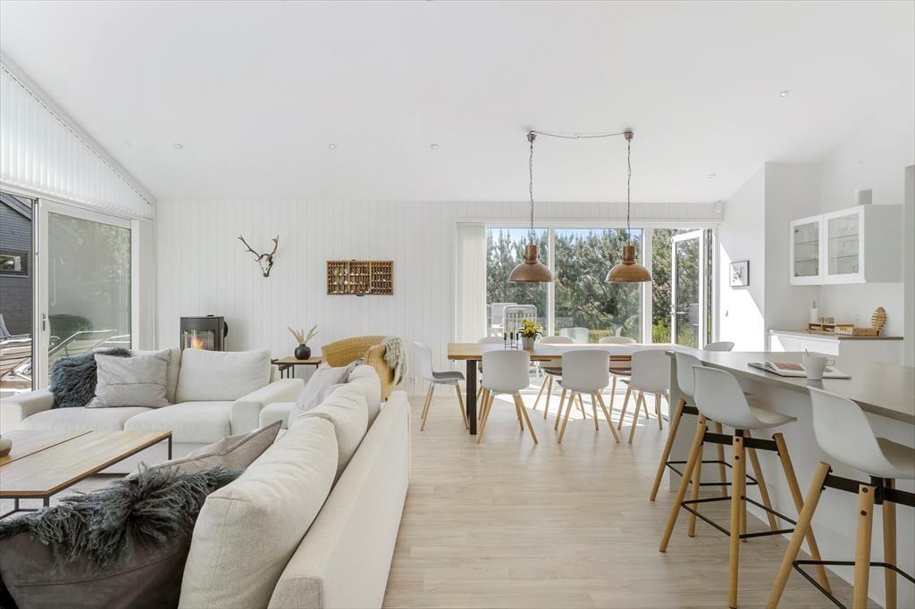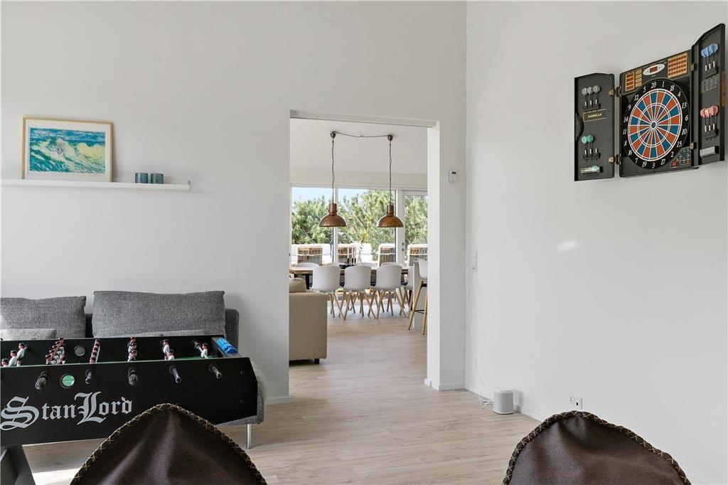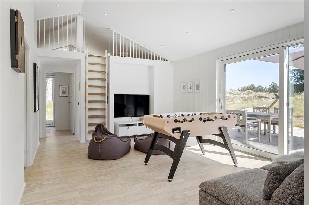 Sobald du das Haus betrittst, wirst du von einer einladenden und modernen Einrichtung begrüßt, bei der Stil und Komfort Hand in Hand gehen. Der offene Wohnbereich bietet viel Platz, um als Familie zusammenzukommen, und die großen Fenster sorgen für viel natürliches Licht, das eine helle und luftige Atmosphäre schafft. Die moderne Einrichtung zeichnet sich durch elegante Möbel und stilvolle Details aus, die den Aufenthalt zu einem Genuss machen. Nach einem Tag voller Aktivitäten kannst du die Ruhe im gemütlichen Wohnzimmer mit Kamin genießen, das zum Entspannen und Verweilen einlädt. Das Haus verfügt außerdem über einen luxuriösen Wellnessbereich mit Sauna und Whirlpool, in dem du dich verwöhnen und für einen weiteren Tag in Blokhus auftanken kannst.