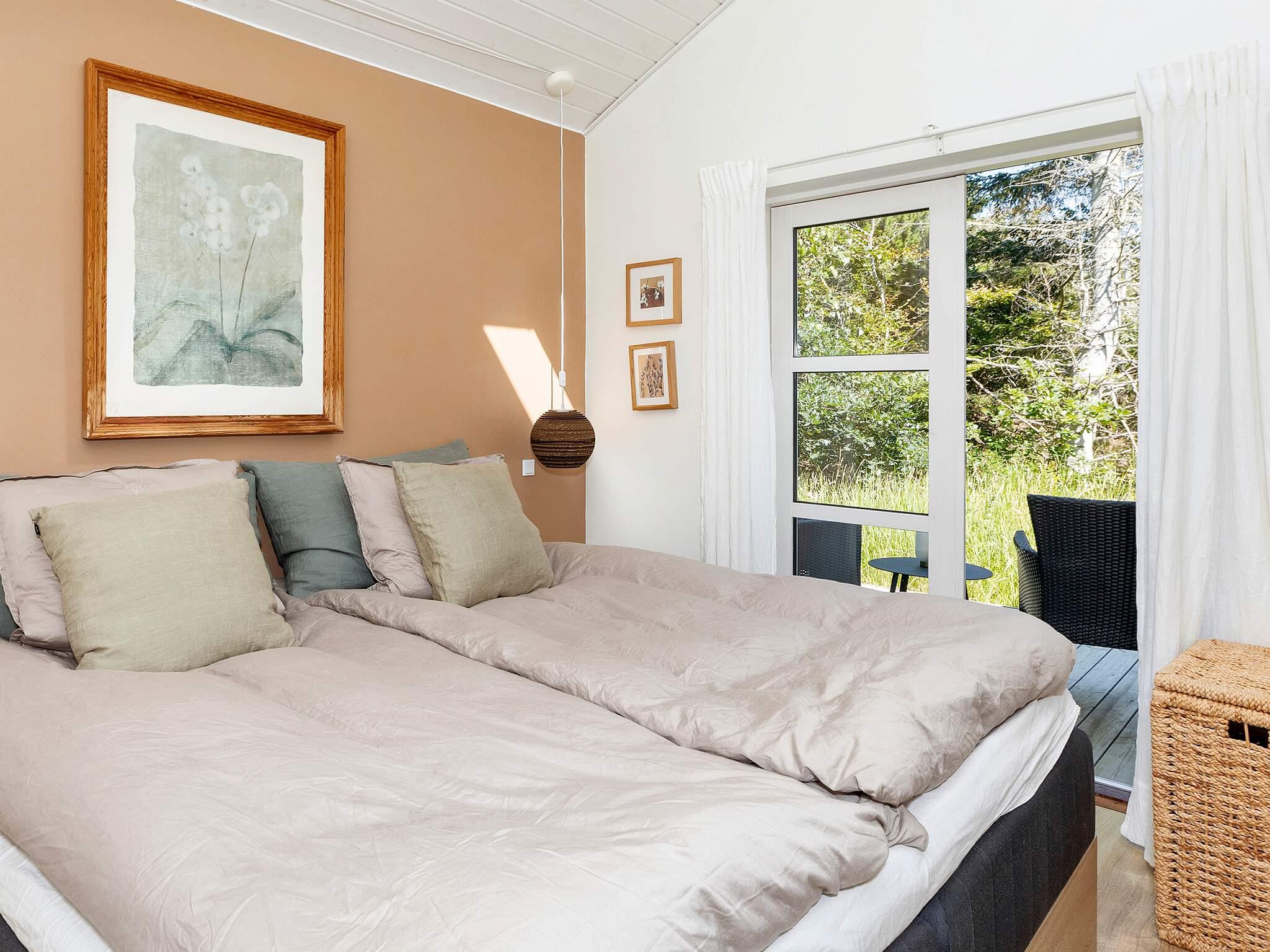 Vom Architekten gezeichnetes Ferienhaus mit Whirlpool. Das Haus steht in schöner Umgebung bei Blokhus auf einem höhergelegenen Grundstück nur ca. 500 m vom Wasser und Strand entfernt. Es bietet Ihnen eine offene Küche und Wohnraum mit Sitzecke und Essbereich, vier Schlafzimmer, Bad mit Whirlpool und eine Gästetoilette. Die Möblierung ist im modernen dänischen Ferienhausstil gehalten. Vom Wohnraum und mehreren der Zimmer haben Sie Zugang zur Terrasse. Im ganzen Haus sind Fußbodenheizungen verlegt. Die Küche ist u.a. mit amerikanischem Kühlschrank und Eiswürfelmaschine (180l), Ceranfeldherd und Einbauofen mit Grill ausgestattet. Zur Unterhaltung stehen Ihnen Nintendo Wii, BluRay-Player, WLAN und TV mit internationalen Programmen zur Verfügung. Für kostengünstige Erwärmung des Hauses sorgt die Luft-/Wasser-Wärmepumpe. Das Grundstück ist hügelig mit Bepflanzung. Auf der Terrasse befindet sich eine Außendusche.