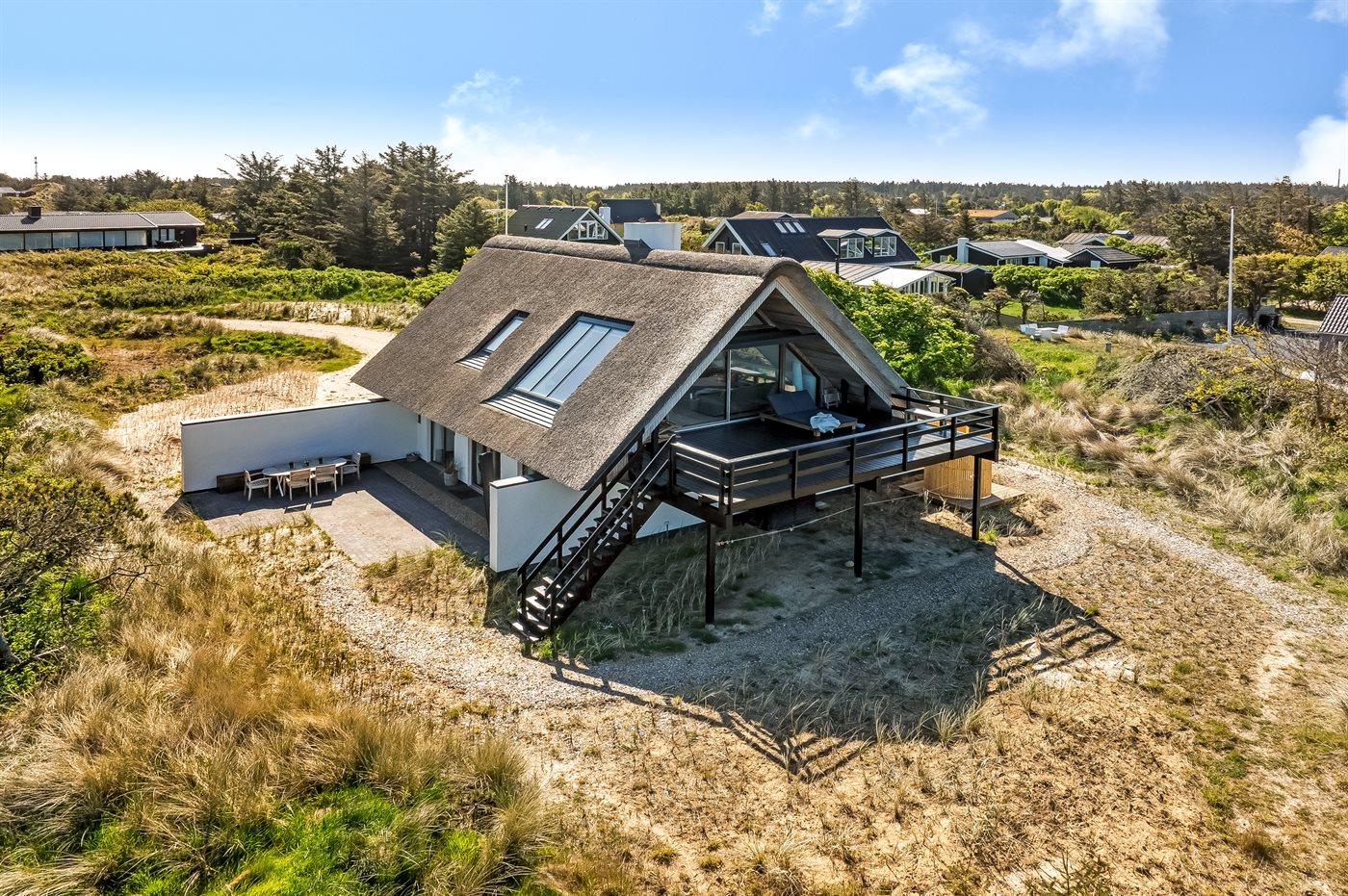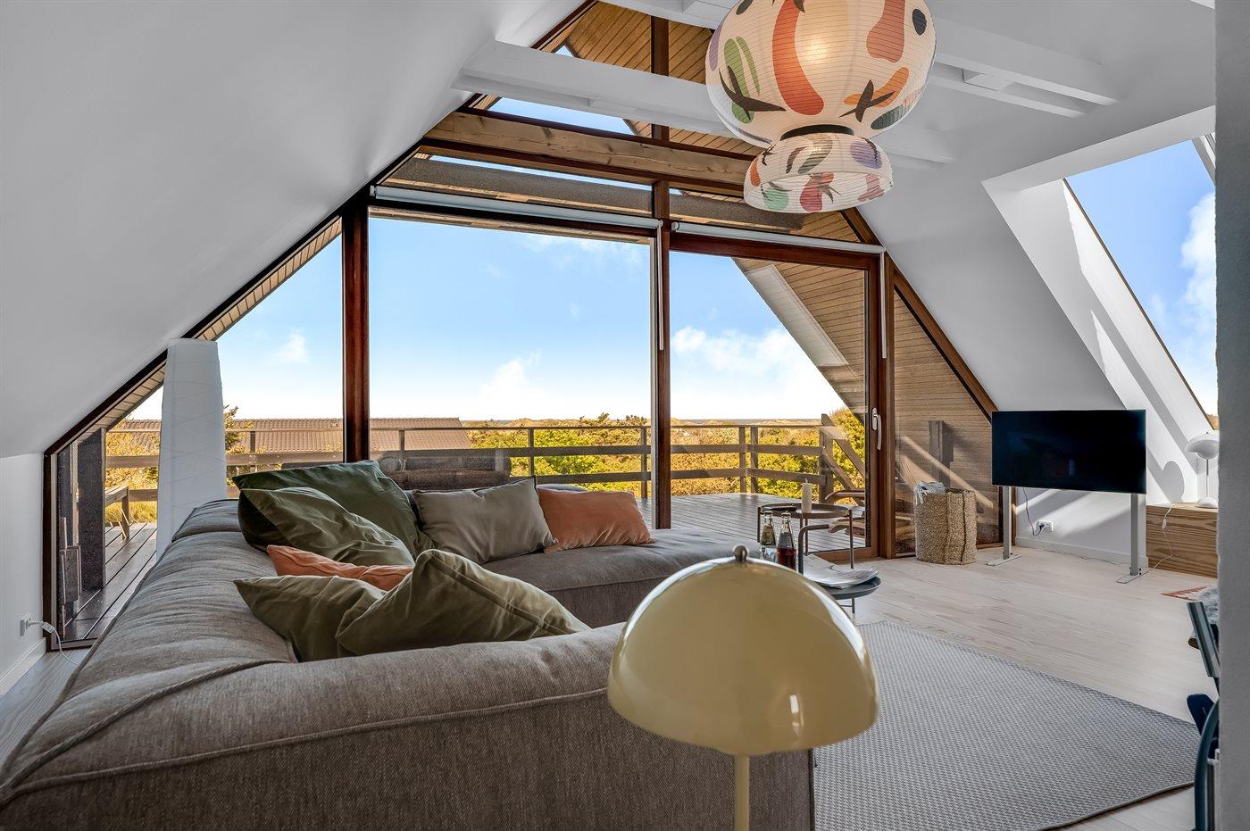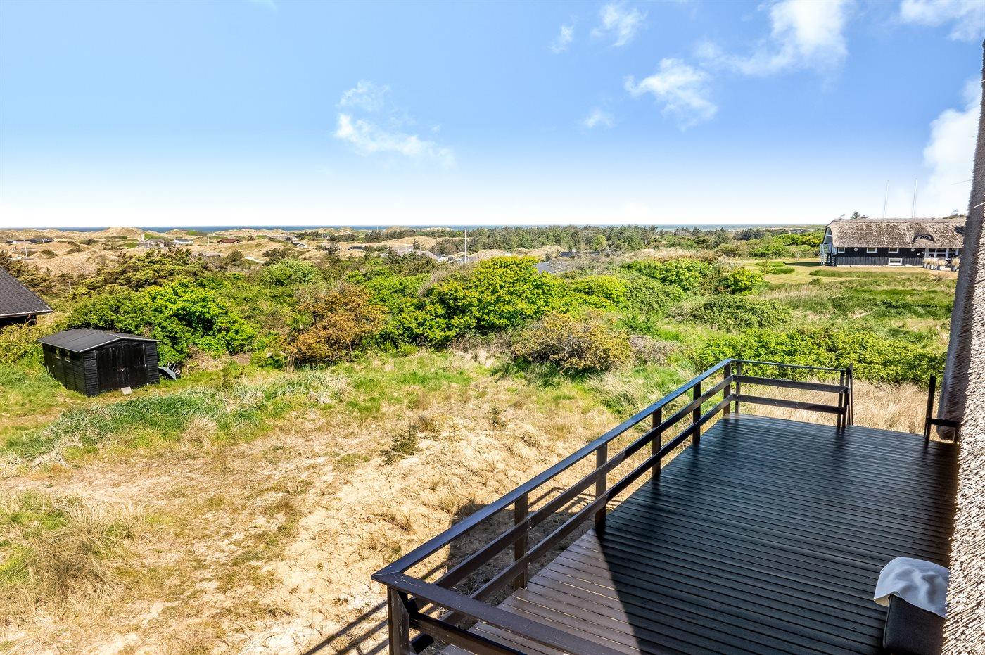 Man finden das Haus auf einem ungestörten, großen Naturgrundstück am Ende einer Stichstraße, mit hoher Lage im Viertel ”Lien” im nördlichen Teil von Blokhus. Vom Obergeschoss des Hauses aus hat man einen herrlichen Panoramablick auf die Jammerbucht, das Meer sowie die Dünen, und im Südwesten sieht man die Stadt Blokhus und das Seezeichen der Stadt.