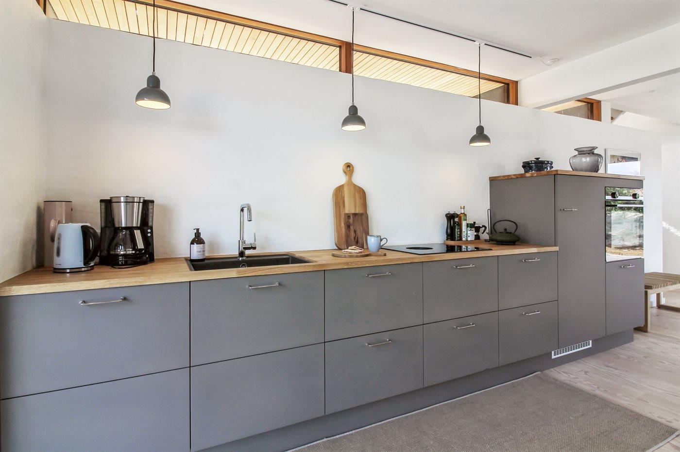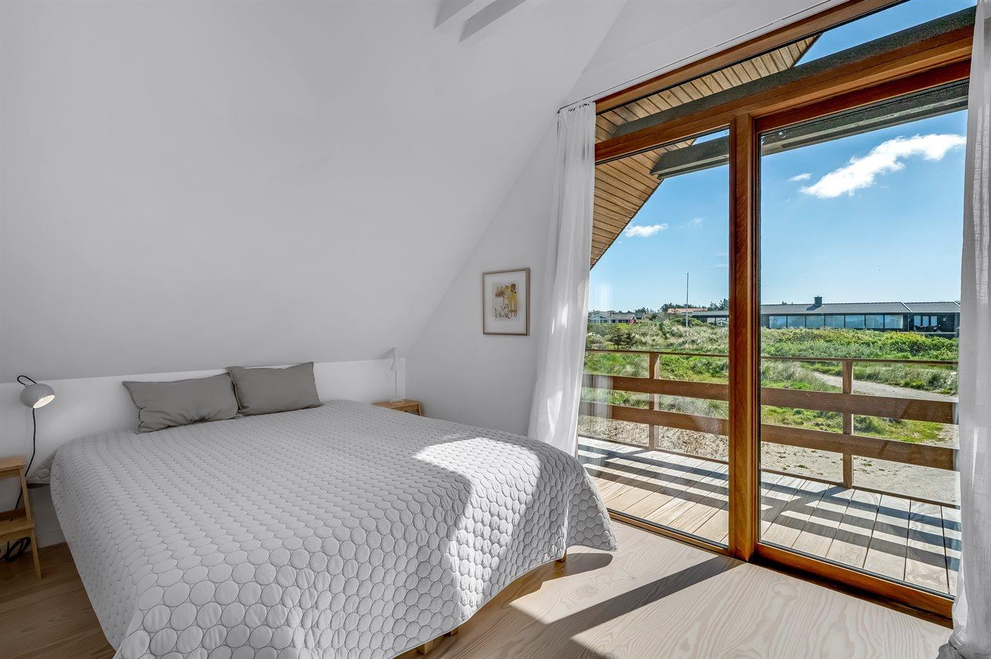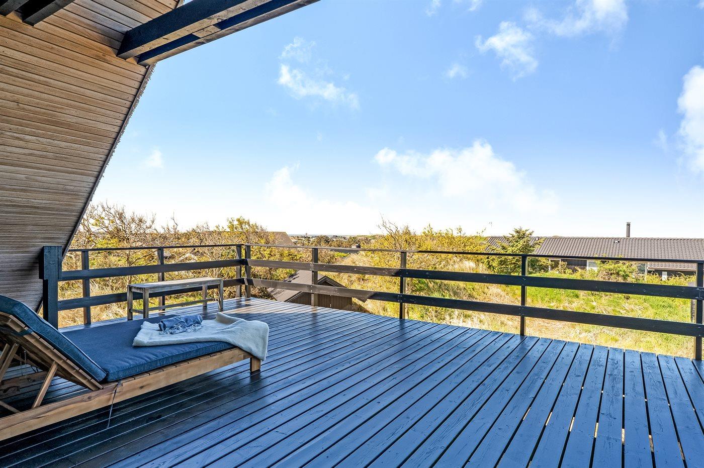 Man finden das Haus auf einem ungestörten, großen Naturgrundstück am Ende einer Stichstraße, mit hoher Lage im Viertel ”Lien” im nördlichen Teil von Blokhus. Vom Obergeschoss des Hauses aus hat man einen herrlichen Panoramablick auf die Jammerbucht, das Meer sowie die Dünen, und im Südwesten sieht man die Stadt Blokhus und das Seezeichen der Stadt.
