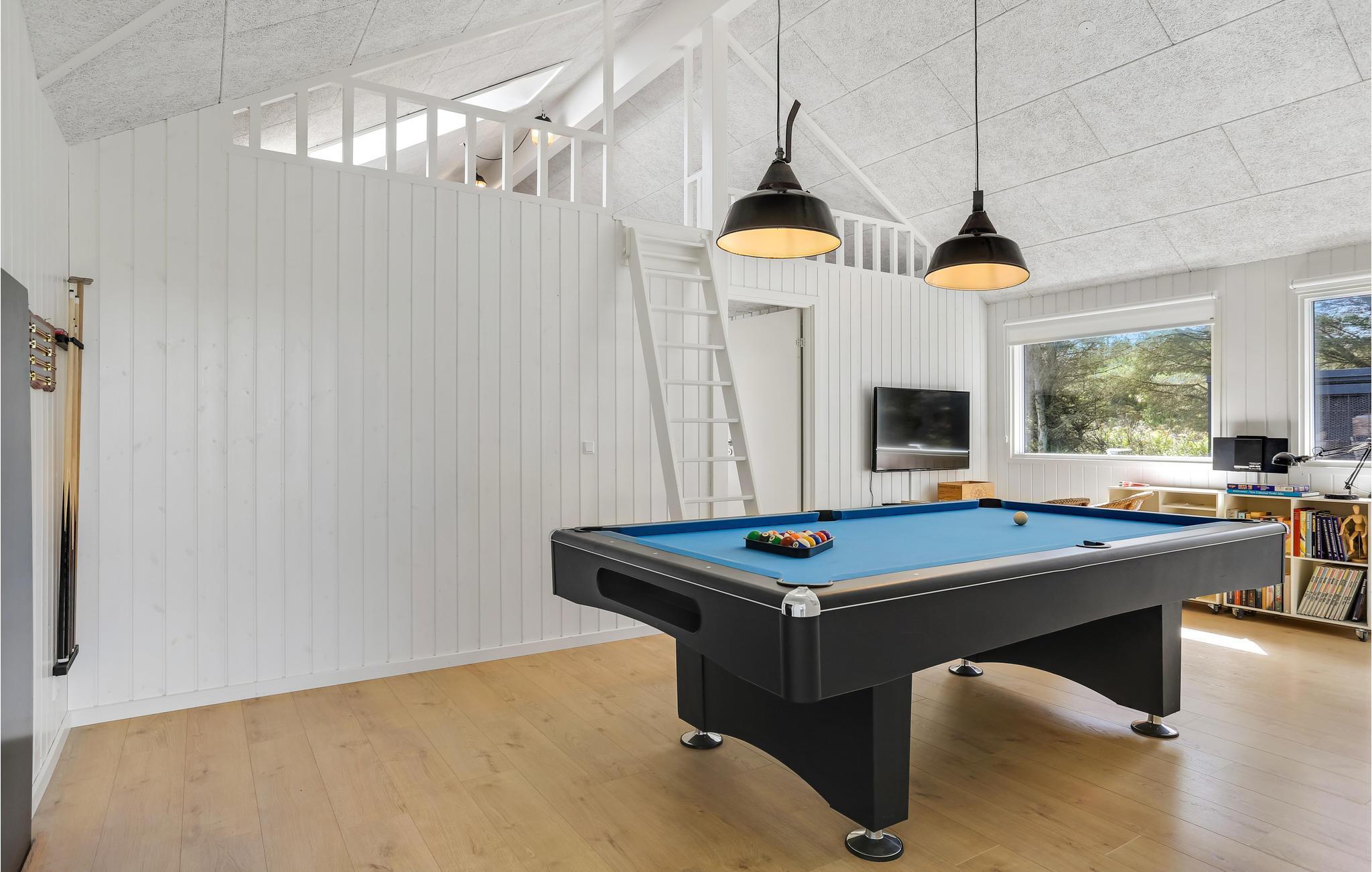 Dieses Ferienhaus nah am schönen Strand von Blokhus kann das ganze Jahr über für einen Urlaub genossen werden. Hier gibt es Aktivitätsangebote auch für anspruchsvolle Familien. Wenn Sie sich vom Spielzimmer losreißen können, werden Sie schöne Stunden im Pool oder auf der Terrasse nach Westen im großen Whirlpool im Freien verbringen. Und nach nur 2 Minuten zu Fuß erreichen Sie obendrein die Nordsee. Fußlänglich liegen auf gute Restaurants und die Geschäfte von Blokhus. Es gibt auch einen 18-Loch Golfplatz, das Faarup Sommerland, Reitpferde und viel mehr zu entdecken.