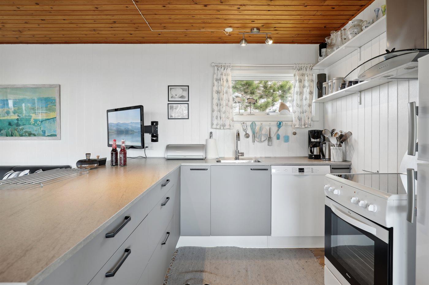 Ein sehr gepflegtes Ferienhaus, laufend renoviert – letztens 2021, wo eine neue Küche mit u. a. Geschirrspüler montiert wurde. Das Haus liegt auf einem Naturgrundstück mit einer großartigen Panoramaaussicht über die Ostsee sowohl vom Haus als auch vom Grundstück. Vom Wohnzimmer gibt es Ausgang zu einer hübschen Veranda, die von Wind und Wetter mit einer Fensterfront abgeschirmt ist. Beim Eingang des Hauses gibt es eine überdachte Terrasse, wo Sie die Morgensonne genießen können. Das gemütliche und gut eingerichtete Ferienhaus liegt hoch über den schönen und ungestörten Sandstrand bei Boderne. Hier finden Sie sowohl ein Restaurant als auch ein ausgebautes Ferienhausgebiet. Der Strand wird überwiegend von den Feriengästen im Gebiet besucht. Ein naheliegendes Ausflugsziel ist NaturBornholm - NaturBornholm in Åkirkeby erzählt die Geschichte von Bornholms Natur ab dem Zeitpunkt, wo die glühende Lava vor mehr als einer Milliarde Jahren ausbrach. Besichtigen Sie dort u. a. Modelle von Dinosauriern, lebende Krokodile und eine Zeitmaschine.