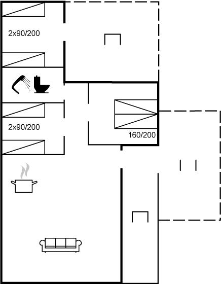 Die Schlafplätze verteilen sich auf 3 Schlafräume. 2 Schlafplätze in einem Doppelbett. 4 Schlafplätze in Einzelbetten.