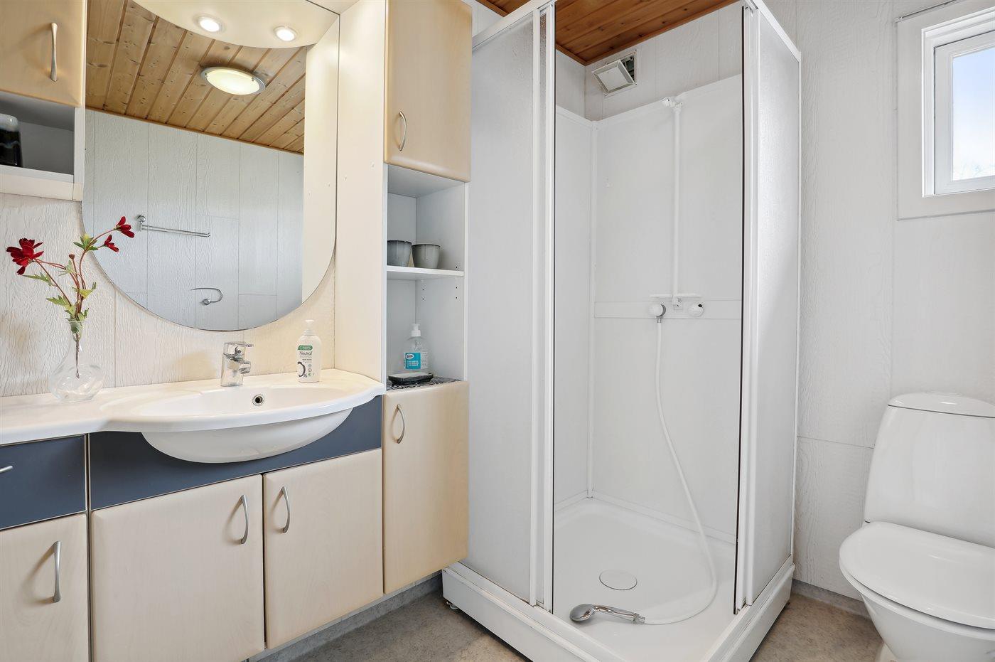 Es gibt 1 Badezimmer mit Duschnische und 1 Toilette.
