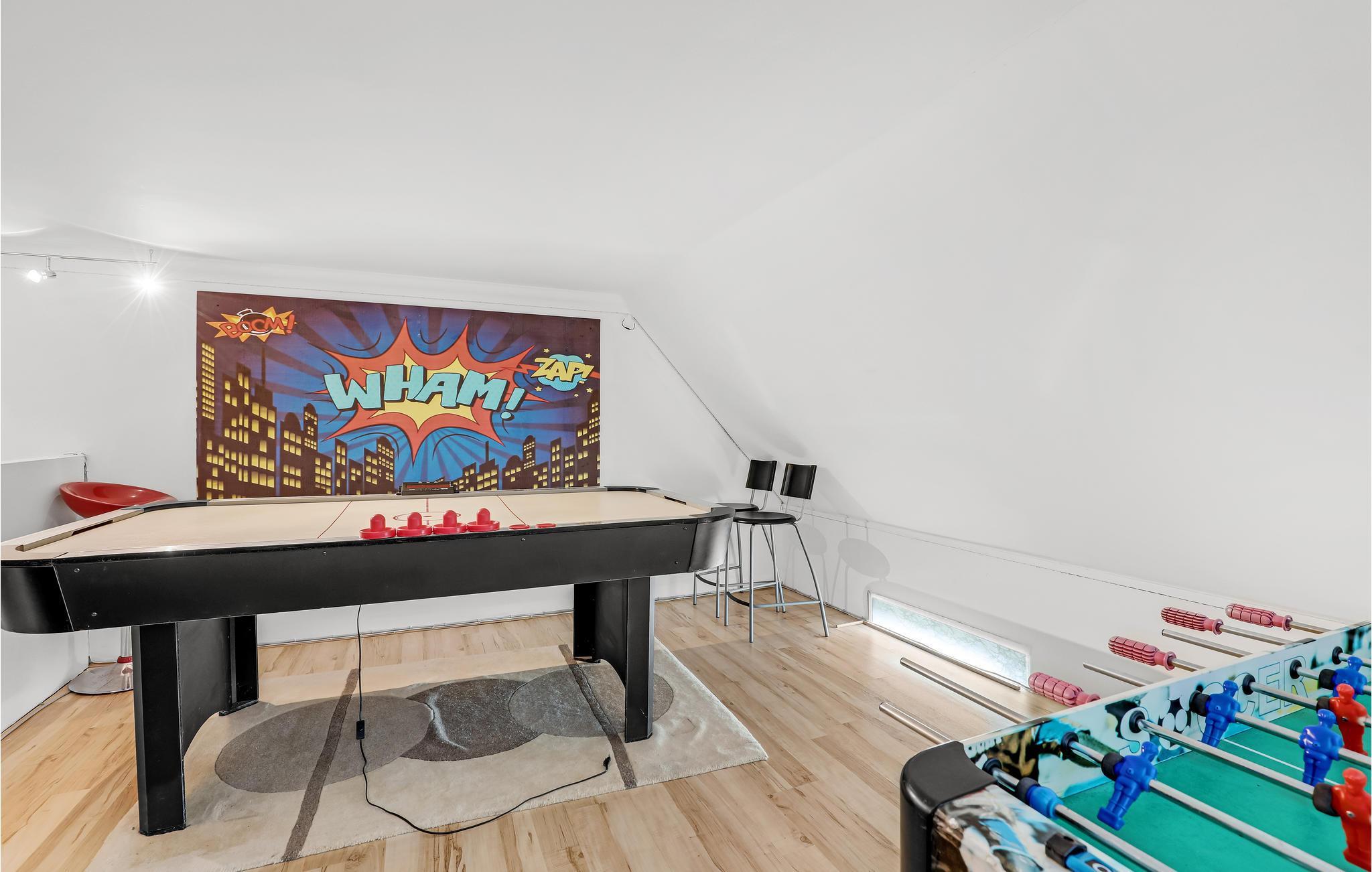 Dieses schöne Ferienhaus mit zwei Etagen ist außergewöhnlich gut ausgestattet und empfängt Sie u. A. mit eigenem Kino mit Surround-Sound und 8 originalen Kinosesseln. Vergessen Sie Ihr Popcorn nicht! Ein Hobbyraum, in dem Sie sich im Kickern und Airhockey messen können, zwei Badezimmer und eine Sauna sorgen für herrliche Entspannung nach einem langen Tag. Dank insgesamt fünf großen Schlafzimmern und zwei hübschen Badezimmern ist dieses Haus perfekt für eine große Familie oder zwei Familien, die gemeinsam einen unvergesslichen Urlaub auf der Sonneninsel Bornholm verbringen möchten. In der großen, offenen und bestens ausgestatteten Küche sind der Entfaltung Ihrer kulinarischen Künste keine Grenzen gesetzt.