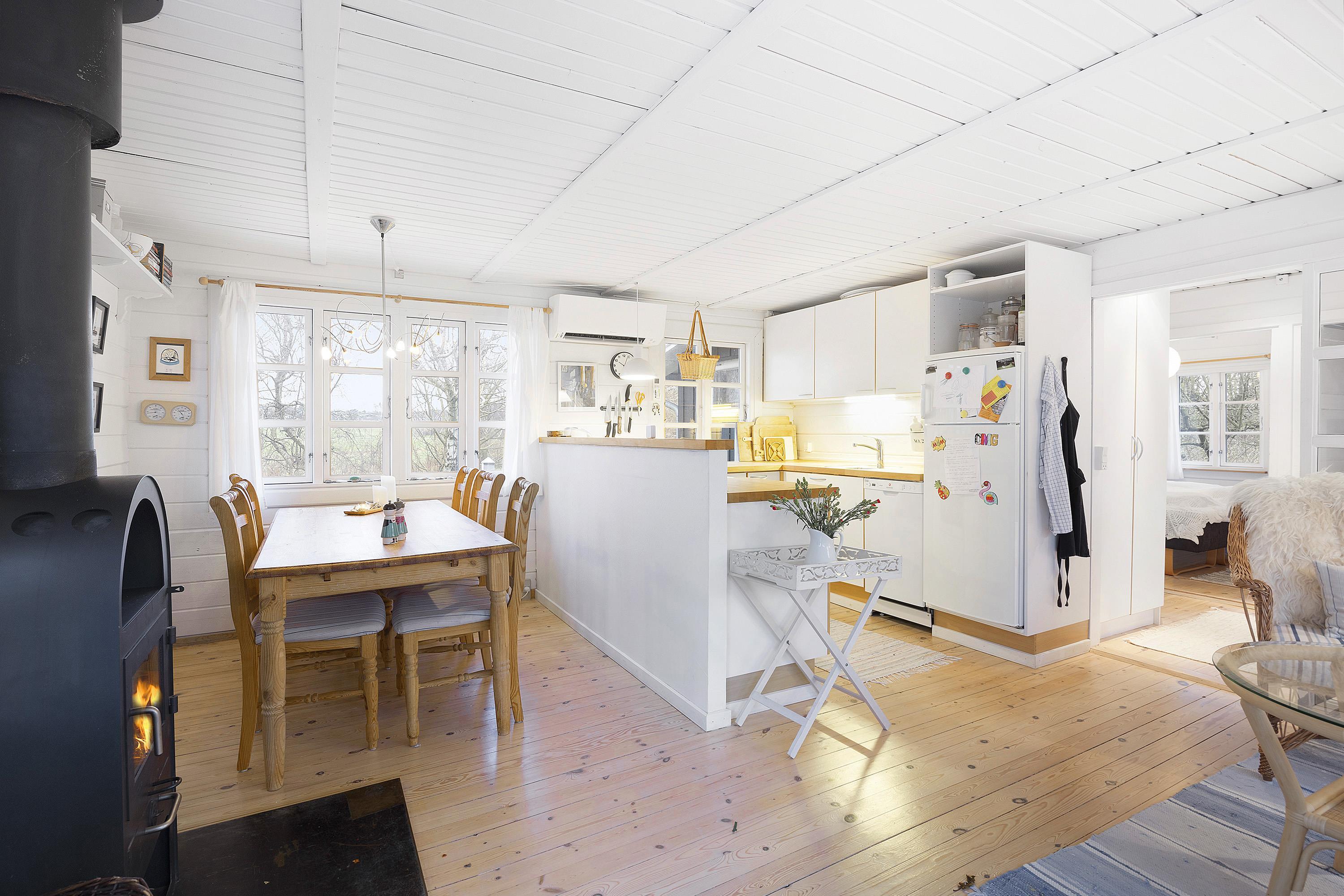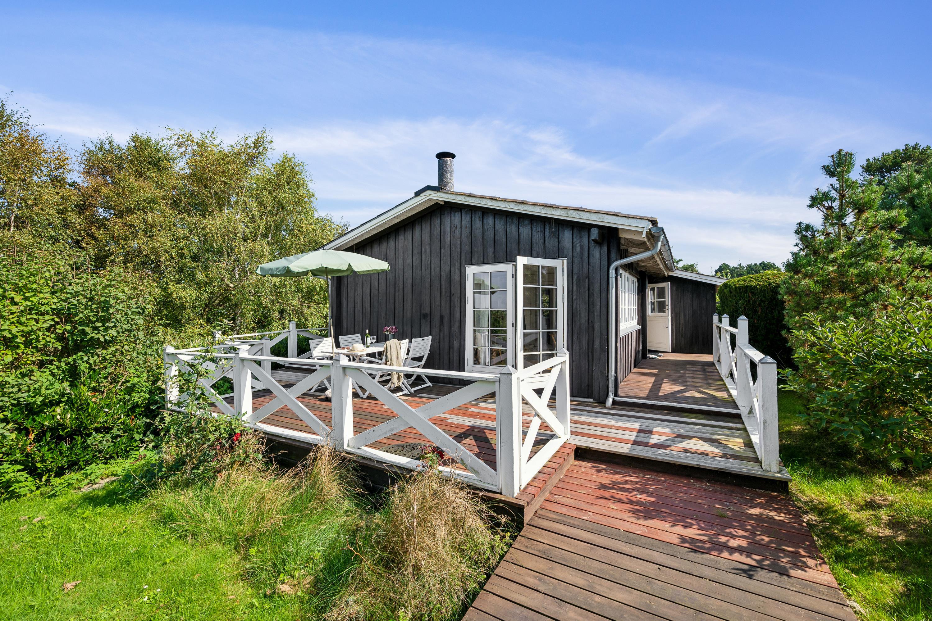 Nicht weit von einem schönen Strand entfernt, finden Sie dieses kleinere, aber sehr gemütliche Ferienhaus. Hier finden Sie ein kleines, gemütliches Wohnzimmer mit Wärmepumpe und Brennofen sowie Zugang zu einer schönen Terrasse, von der Sie einen schönen Blick über die Grünflächen haben. In Verbindung mit dem Wohnzimmer befindet sich die Küche mit unter anderem Geschirrspüler. Das Ferienhaus verfügt über drei gemütliche Zimmer, eines mit einem Doppelbett, eines mit einem Etagenbett und ein Zimmer mit einem 3/4-Bett. Schönes Badezimmer mit Dusche und Zugang zur Waschmaschine. Es gibt WLAN im Haus und das Fernsehen erfolgt über Chromecast/Streaming. Auf dem Gelände finden Sie einen Anbau, der Ihnen zur Verfügung steht. Am Haus gibt es schöne Terrassenbereiche mit Gartenmöbeln und Grill. Schönes Grundstück mit großer Rasenfläche, die sich für Spaß und Aktivitäten im Freien geeignet ist. Das Haus liegt 5-10 Gehminuten vom Strand entfernt.