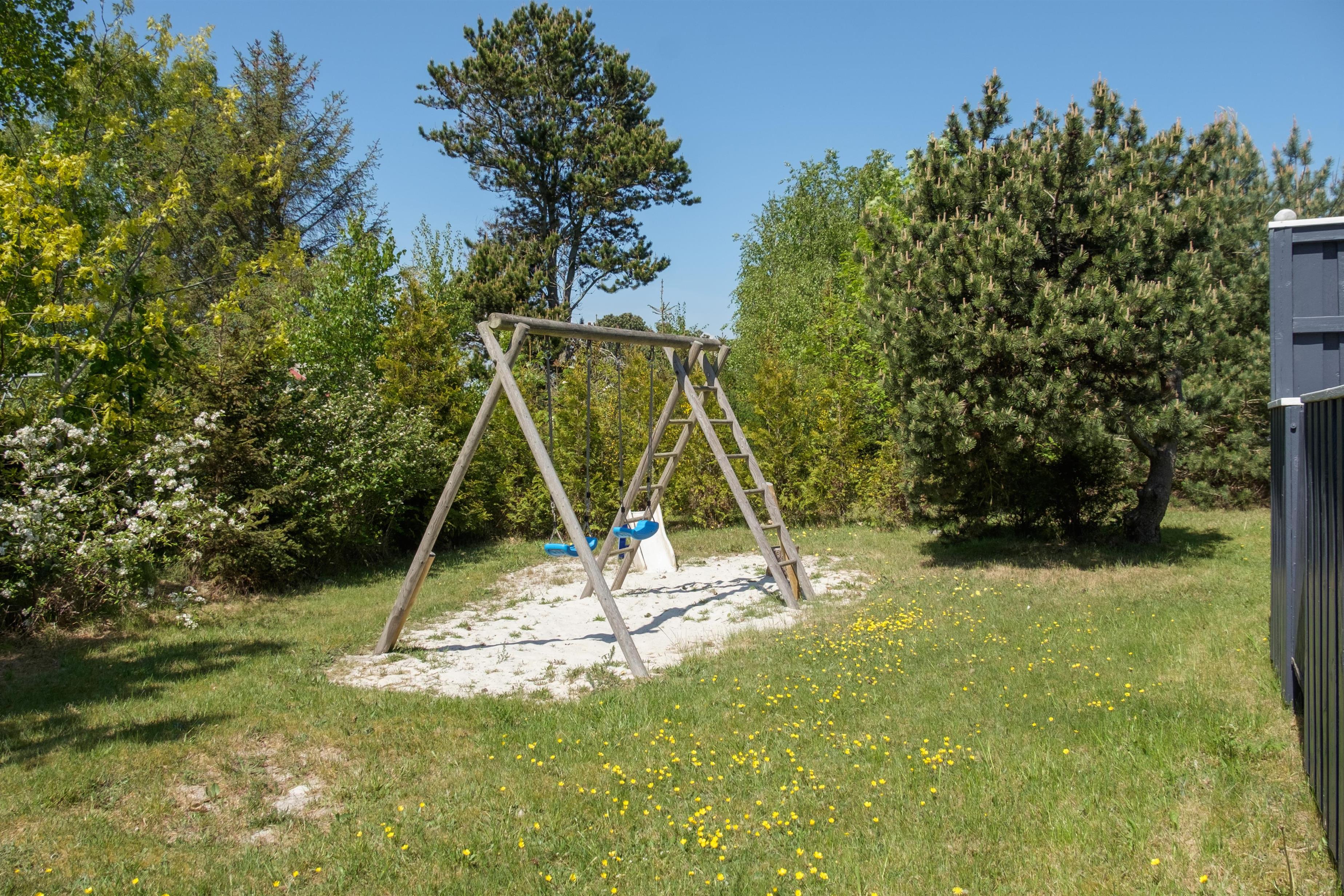 Modernisiertes Ferienhaus nahe Boeslum Strand mit Garten, Pavillon und Spielgerüst für Kinder.