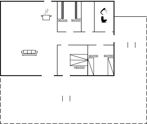 Die Schlafplätze verteilen sich auf 3 Schlafräume. 2 Schlafplätze in einem Doppelbett. 2 Schlafplätze in Einzelbetten. 4 Schlafplätze in Etagenbetten. Ferner steht ein Kinderbett zur Verfügung.