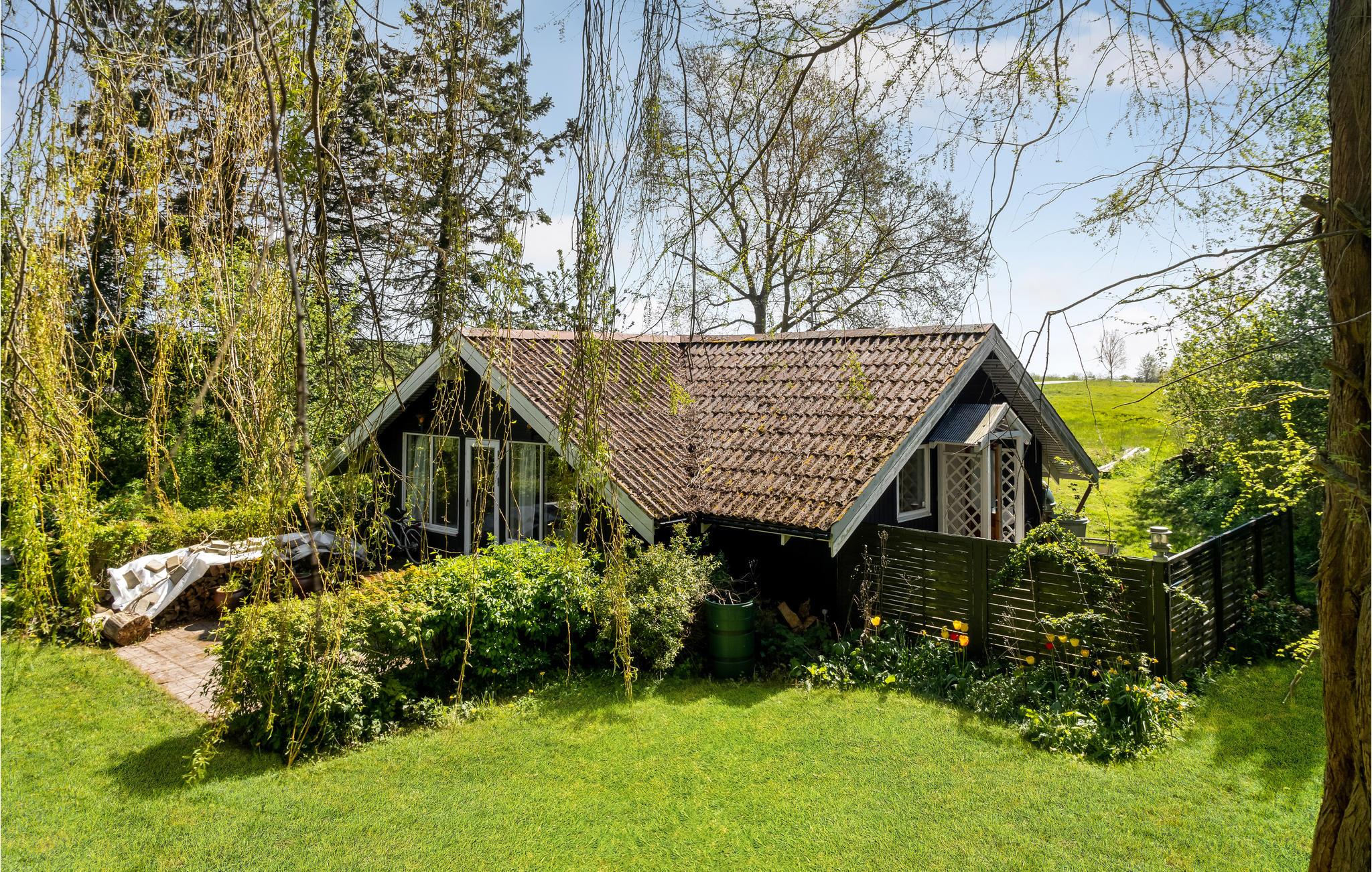 Gemütliches Ferienhaus auf Bogø mit Kamin, großem Garten und Terrasse für entspannte Urlaubstage in Dänemark.