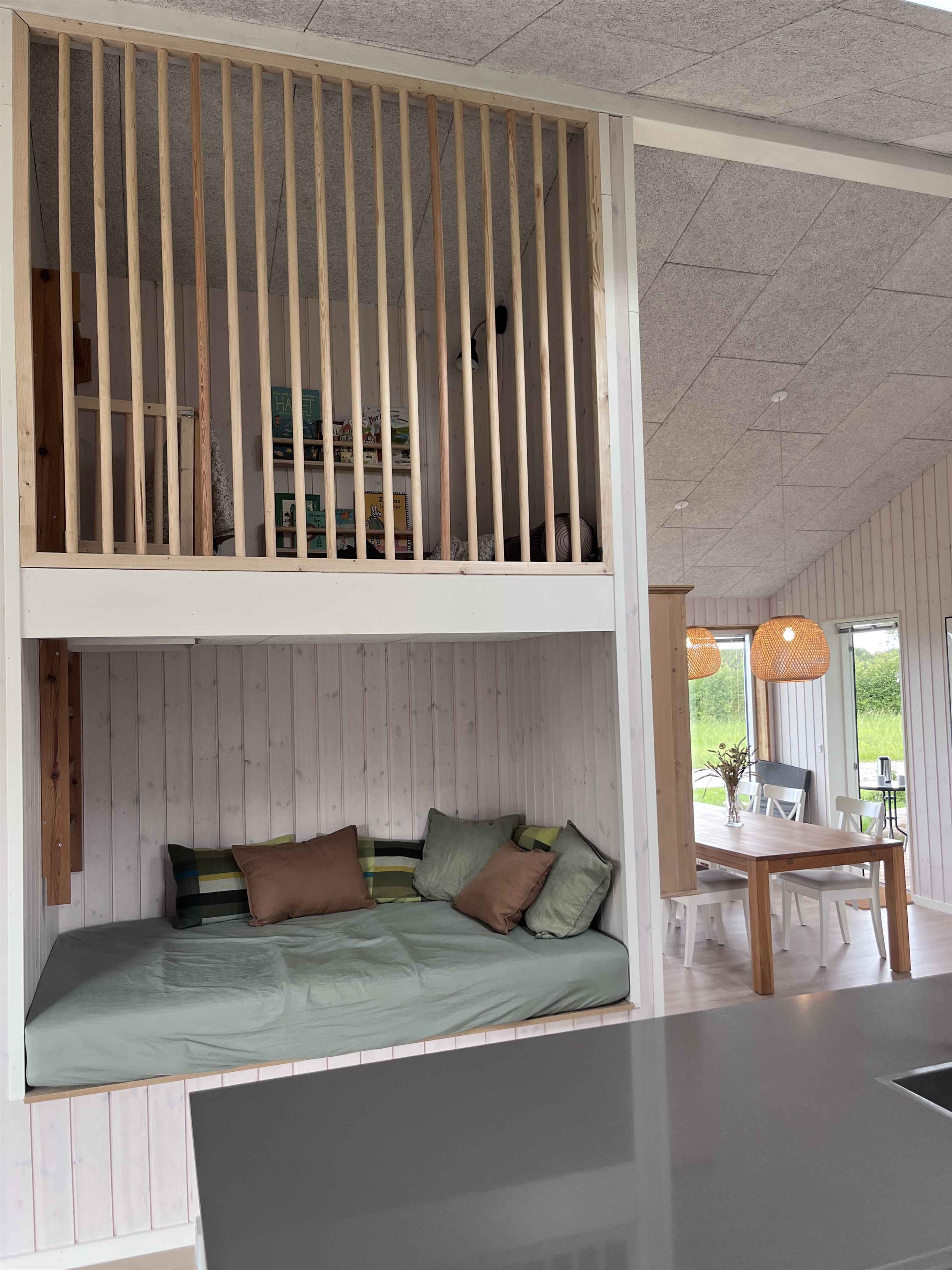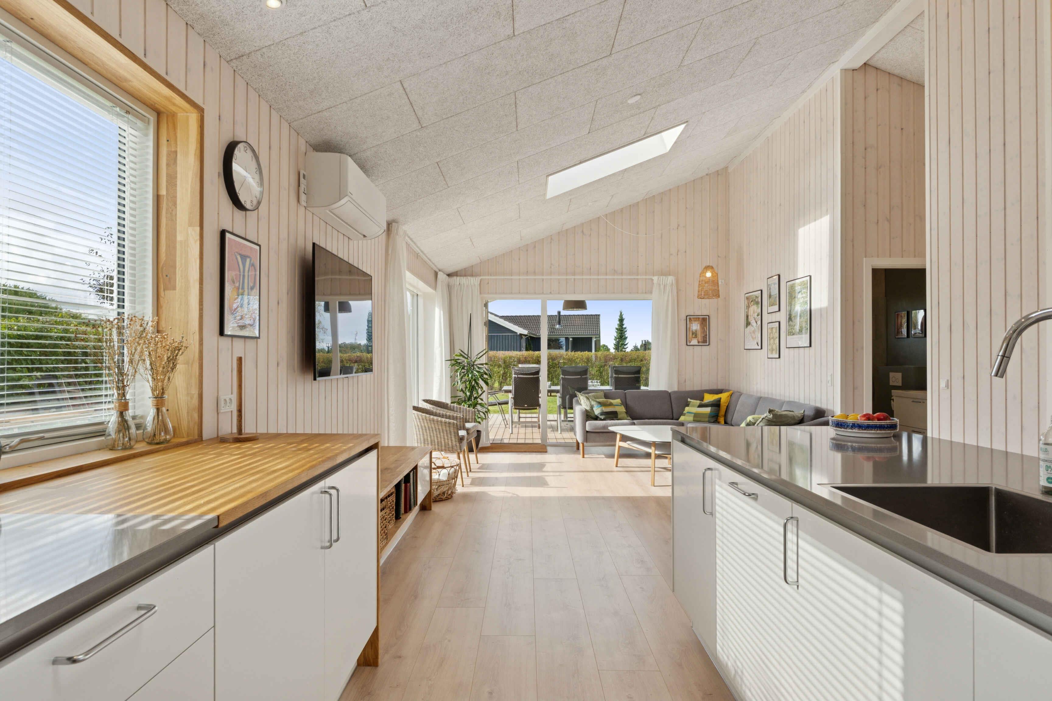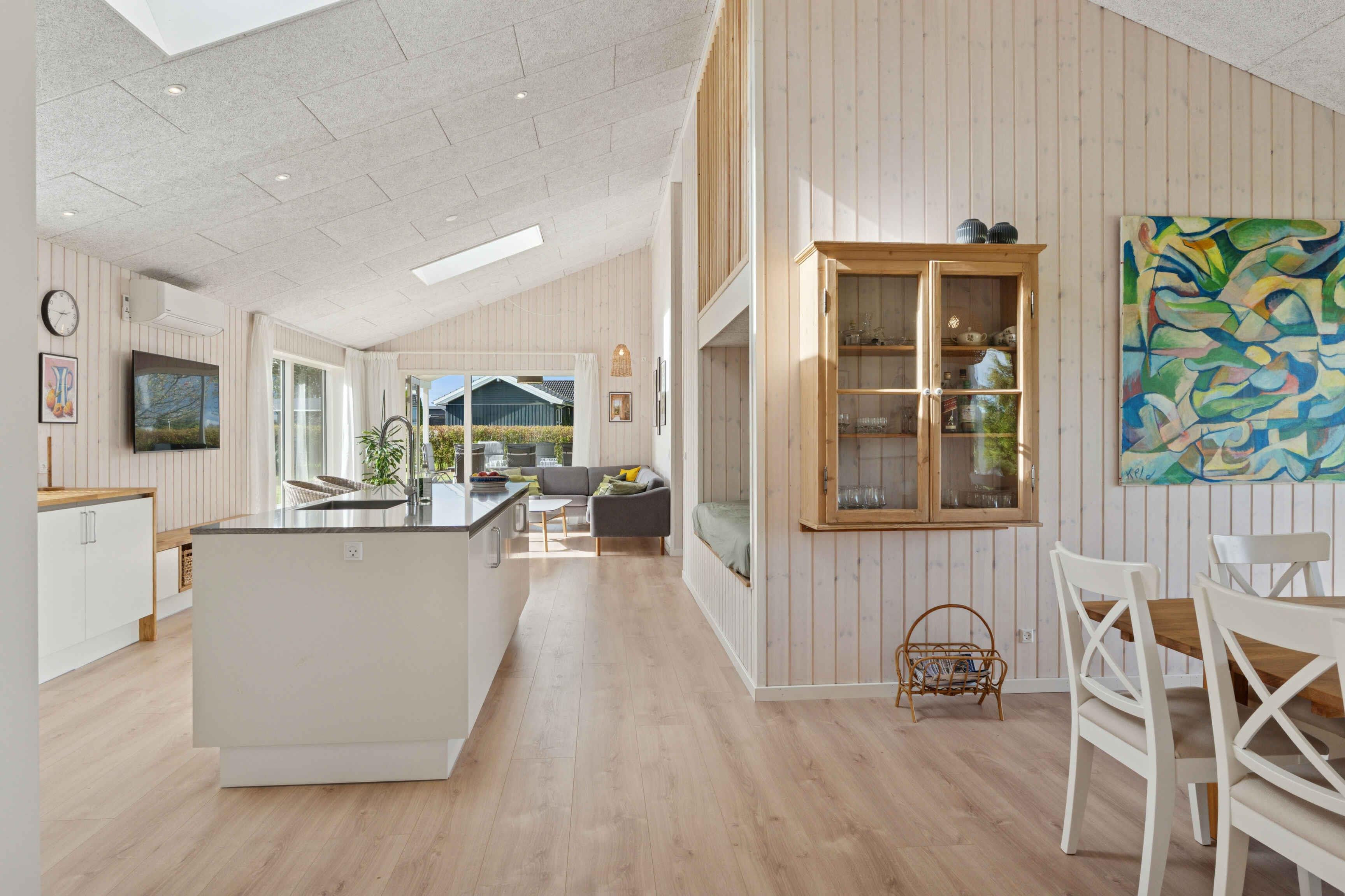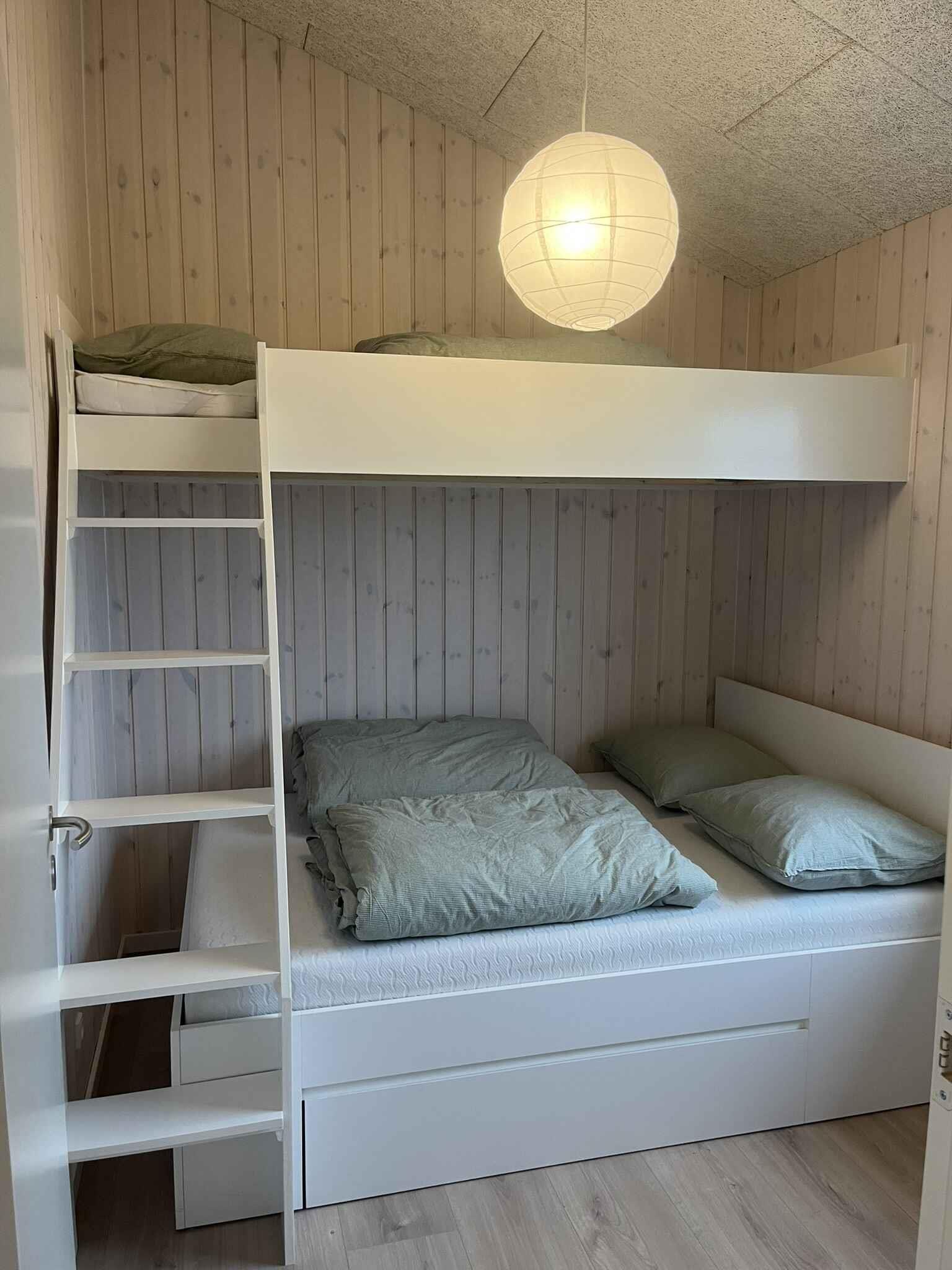 Dieses Ferienhaus aus dem Jahr 2025 bietet 130 m² Wohnfläche und verfügt über vier Schlafzimmer mit insgesamt zehn Schlafplätzen. Es ist eine ideale Wahl für größere Familien oder Freundesgruppen, die Urlaub mit Platz für Gemeinschaft und Privatsphäre verbringen möchten. Das Haus verfügt über einen offenen Wohnbereich mit Küche, Essplatz und Wohnzimmer in einem. Hier lassen sich Mahlzeiten, Spielen und Entspannung gut verbinden. Eine Wärmepumpe sorgt das ganze Jahr über für ein angenehmes Raumklima, und im gesamten Haus steht Internet zur Verfügung. Es gibt zwei Schlafzimmer mit Doppelbett (180/160 x 200 cm) und zwei Schlafzimmer mit kleinem Doppelbett (140 x 200 cm), jeweils mit einem Etagenbett darüber (90 x 200 cm). Der Garten ist groß und bietet ein Spielgerüst, eine Schaukel und eine Rutsche. Außerdem gibt es viel Platz für Ballspiele, zum Spielen oder für ruhige Momente im Grünen. Draußen stehen ein Grill und eine Ladestation zur Verfügung, sodass das Elektroauto direkt am Haus geladen werden kann. Das macht den Aufenthalt praktisch und flexibel. Die Umgebung des Hauses hat viel zu bieten. Der Strand ist nur 1,5 km entfernt. Hier kann man baden, Steine und Muscheln sammeln oder am Abend entlang des Wassers spazieren. Der Strand ist sowohl für Kinder als auch für Erwachsene geeignet. Bogø ist bekannt für seine ruhige Atmosphäre und schöne Natur. Die Insel bietet Rad- und Wanderwege durch Wälder und offene Felder. Am Hafen trifft man auf eine maritime Umgebung und eine entspannte Stimmung, die zu einem Eis oder einem Spaziergang einlädt. Von Bogø aus ist es nicht weit nach Møn, wo die Kreidefelsen von Møns Klint ein beliebtes Ausflugsziel sind. Hier erwarten Sie eine beeindruckende Landschaft, einzigartige Ausblicke und die Möglichkeit zur Fossiliensuche. Außerdem bietet die Region gemütliche Städte, Kulturgeschichte und kleine Restaurants. Das Ferienhaus ist ein idealer Ausgangspunkt für einen abwechslungsreichen Urlaub mit Platz für Spiel, Erholung und Ausflüge. Die Kombination aus moderner Ausstattung, großem Garten und der Nähe zu Strand und Natur schafft den perfekten Rahmen für einen gelungenen Urlaub. Das Ferienhaus ist 2025 neu gebaut worden, weshalb noch Bauarbeiten stattfinden. Spielgerüst/Schaukeln/Rutsche sind daher noch nicht auf den Fotos zu sehen. Alles wird fertiggestellt sein, wenn die Vermietung im März 2026 beginnt. Schlafzimmer 1: 1 Doppelbett 180x200 Schlafzimmer 2: 1 Doppelbett 140x200, 1 Etagenbett Schlafzimmer 3: 1 Doppelbett 160x200 Schlafzimmer 4: 1 Doppelbett 140x200, 1 Etagenbett