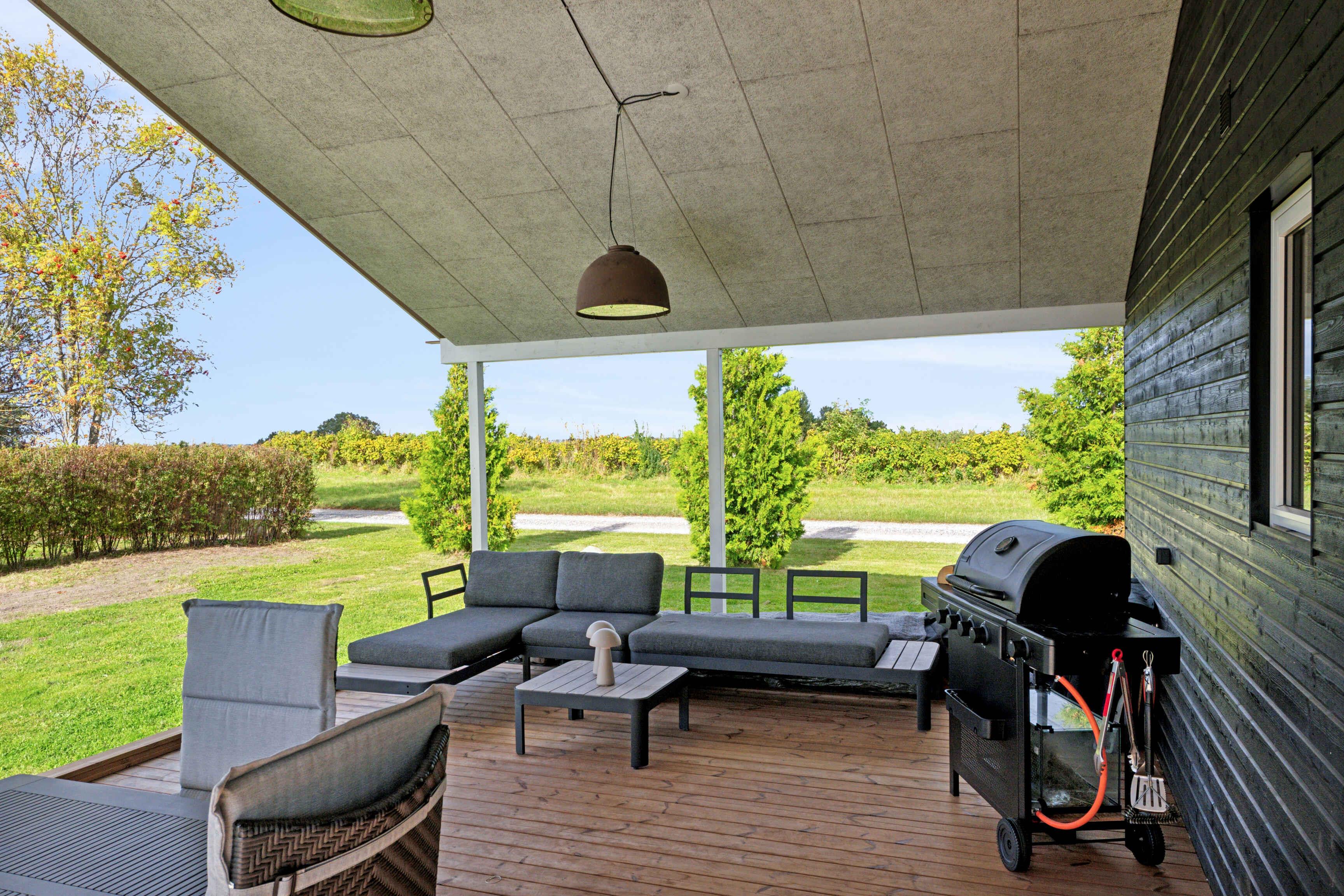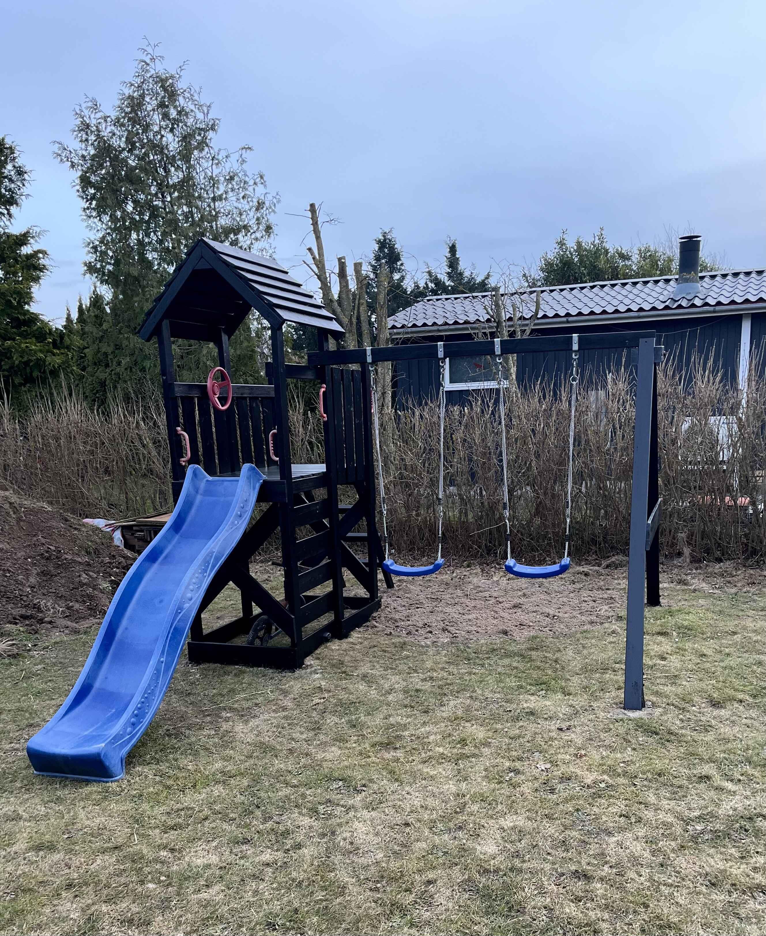 Neues Ferienhaus mit schöner Aussicht auf Felder und Wald, Wärmepumpe, Internet, Grundstück mit Platz zum Spielen, Außenküche, Außendusche, Spielgerüst, Schaukel, Rutsche
