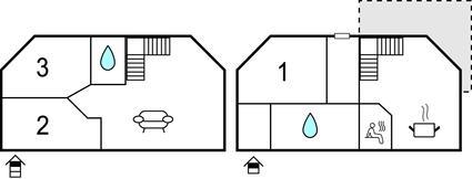 Badezimmer (nr. 1) - WC. Warmes und kaltes Wasser. Dusche