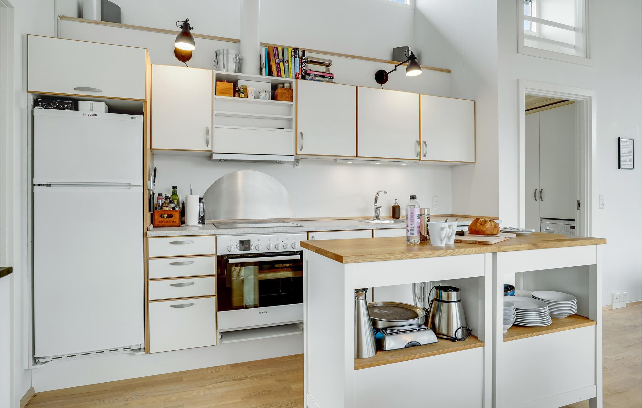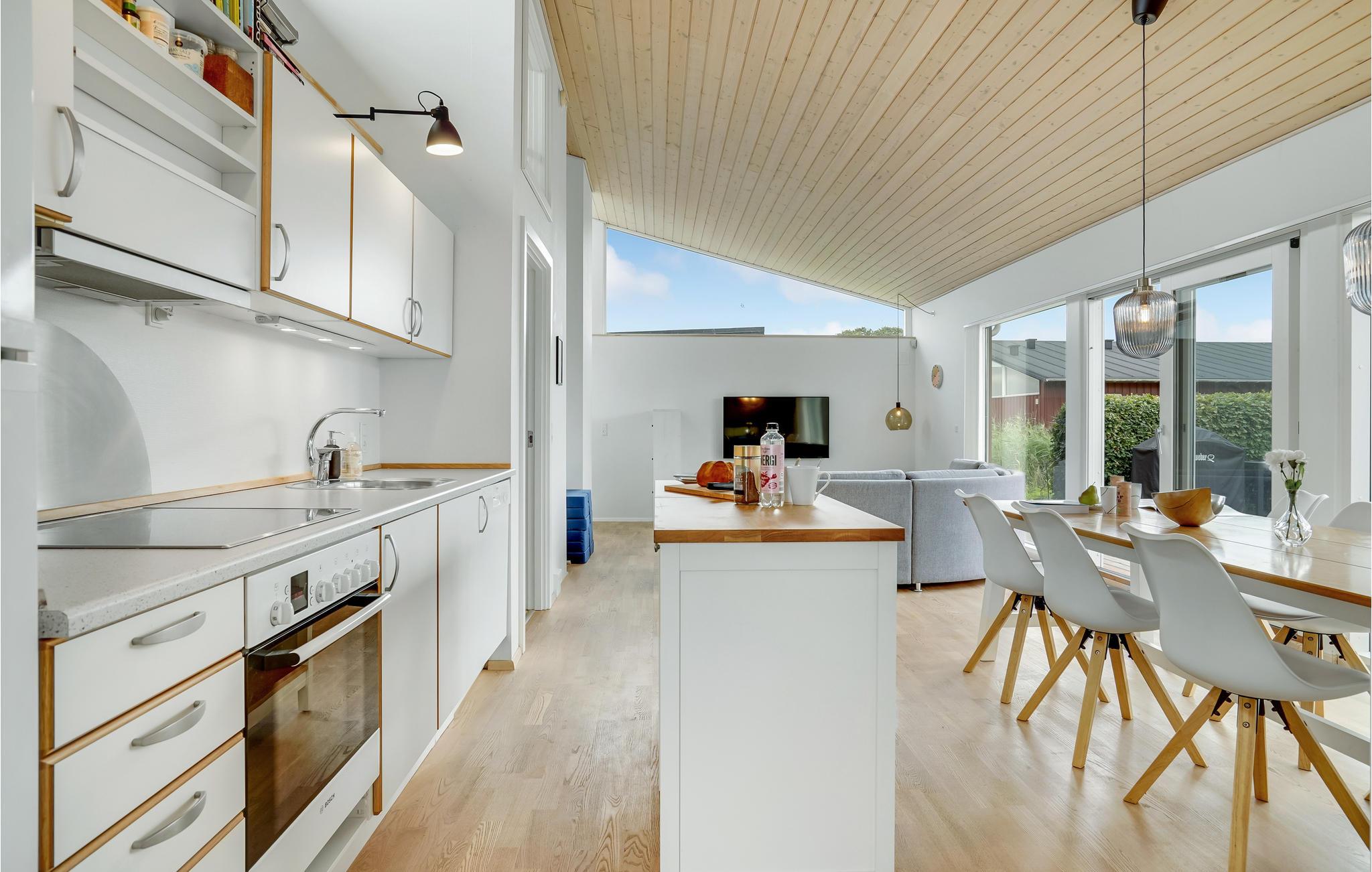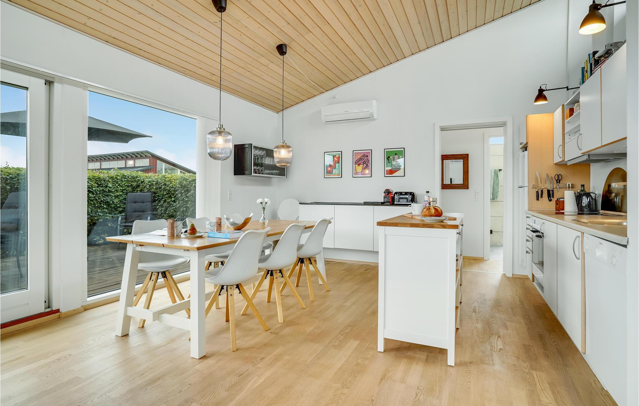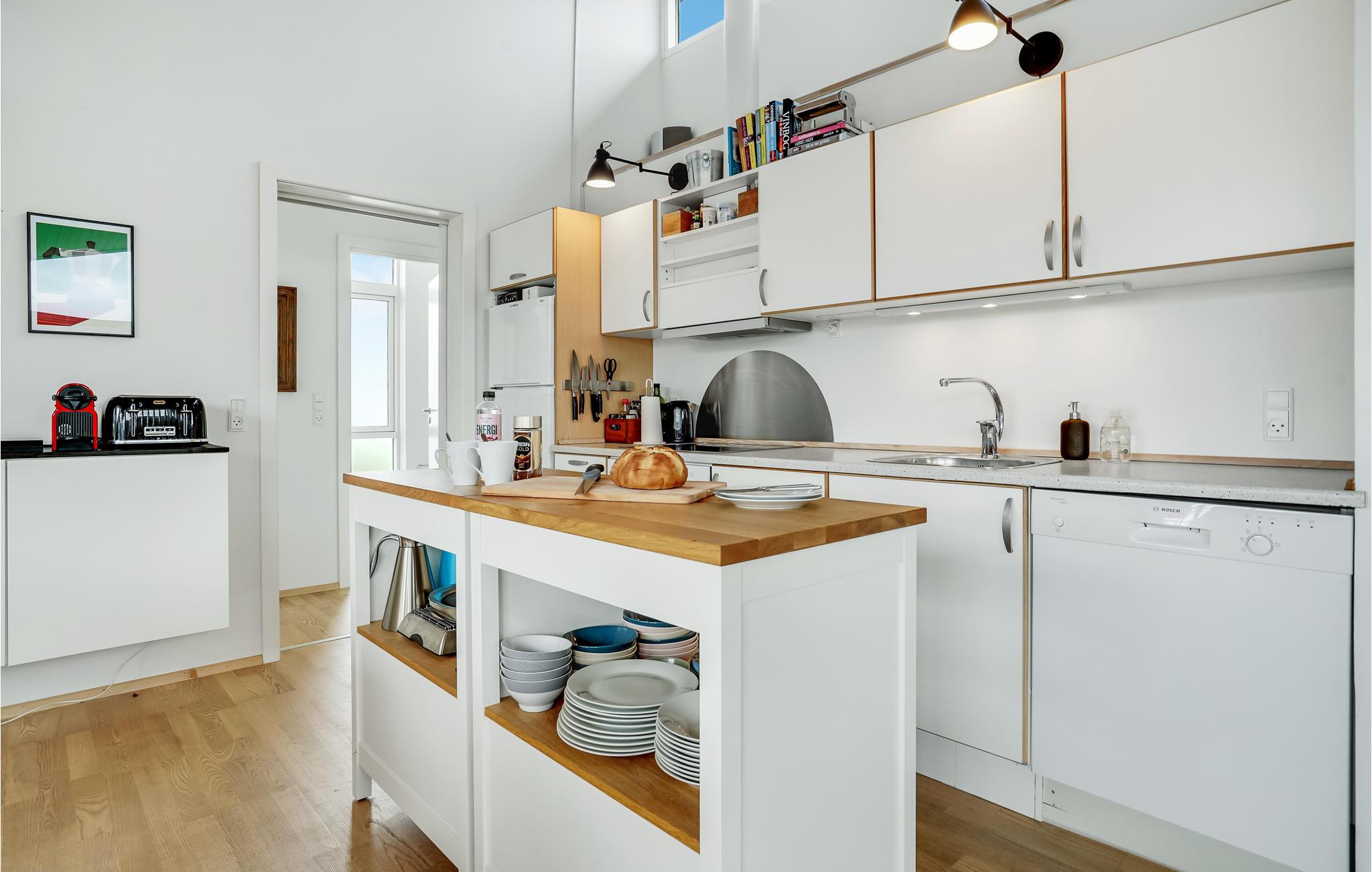 Im gemütlichen Bogense an der Nordküste der Insel Fünen finden Sie dieses original gestaltete Ferienhaus. Dank der offenen Dachfront und der vielen Fenster fällt viel Licht ins hell und modern eingerichtete Wohnzimmer mit offener Küche, das das Herzstück des Hauses bildet. Hier bekommen Sie stilvolle, gut ausgestattete Zimmer sowie einen kleinen, offenen Dachboden, der sicher ein beliebter Spielort unter den Kindern wird.