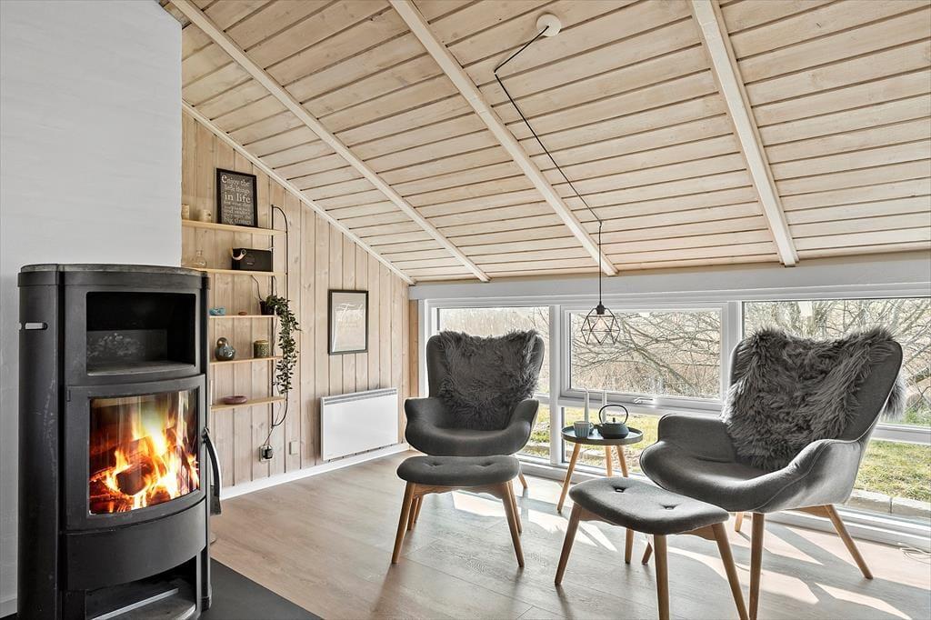 Das Ferienhaus, das über eine Wohnfläche von 137 m² verfügt, bildet einen vollendeten Rahmen für deine Urlaubstage. Die Aufteilung der Räumlichkeiten macht es möglich, dass sich bis zu acht Personen im Haus aufhalten können, denn es gibt vier schöne Schlafzimmer mit Doppelbett und Kleiderschränken sowie ein großes Badezimmer, einen Wohnbereich und eine Küche. Die Küche ist im Zuge einer gelungenen Modernisierung des Hauses komplett erneuert worden und sehr gut ausgestattet. Der einladende Wohnbereich und die Küche bilden zusammen einen herrlichen Aufenthaltsraum mit hoher Decke, Brennofen und einer wunderbaren Aussicht über das Naturgrundstück. Den Ausblick kannst du übrigens auch genießen, wenn du dich im Whirlpool entspannst, der sich im Badezimmer neben der Sauna befindet.