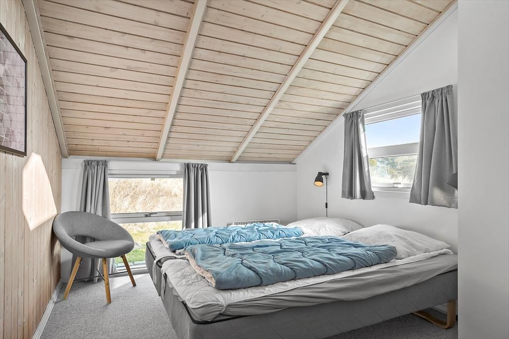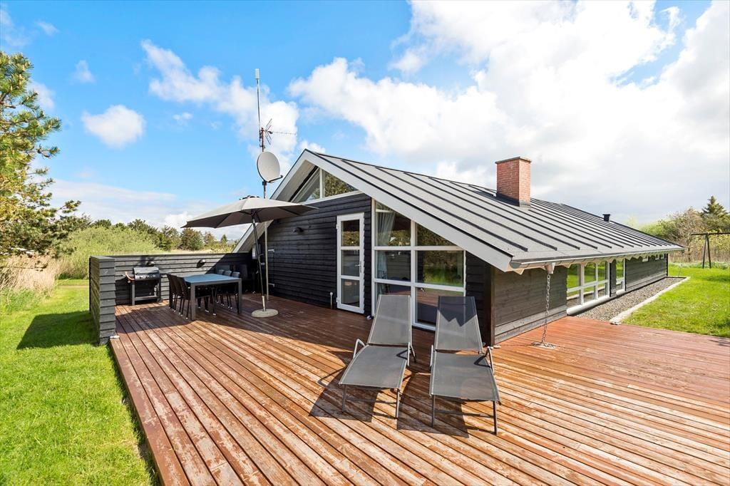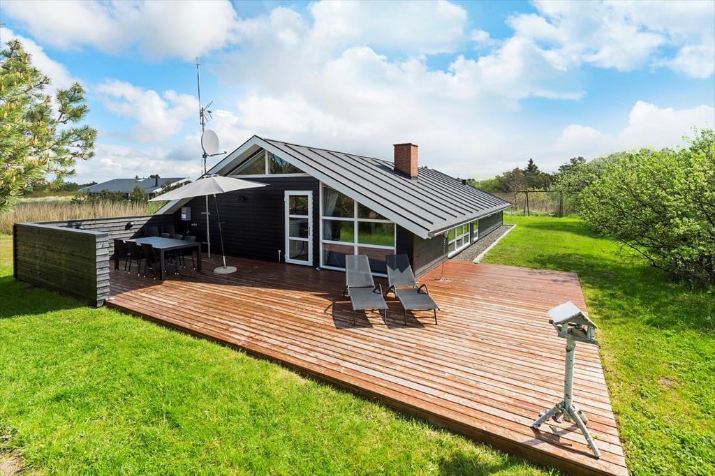 Das Ferienhaus liegt wunderbar ungestört am Ende des Wegs Mågevej, direkt angrenzend an die schöne Natur in Bolilmark. Ganz in der Nähe führt ein Rad- und Wanderweg zum Ort Lakolk, wo du in der Nordsee baden und das Strandleben genießen kannst. Du kannst ebenfalls durch die Heidelandschaft der Tvismark Baumplantage wandern und den Aussichtspunkt Høstbjerg besteigen.