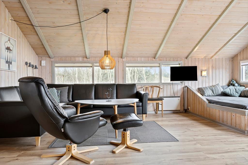 Es ist kein Zufall, dass dieses Ferienhaus auf den Namen ”Udsigten” (Die Aussicht) getauft worden ist, denn es hat eine ganz wunderbare Lage auf einem großen Naturgrundstück, das direkt an ein Heidegebiet grenzt. Möchtest du nicht nur die ganze Zeit die schöne Umgebung bewundern, so kannst du das Leben im Whirlpool und in der Sauna genießen, wenn du das Bedürfnis hast, wirklich mal ganz abzuschalten.