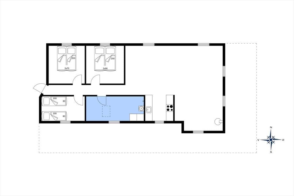 Das Ferienhaus kann ohne Weiteres als funktionelles und gemütliches Feriendomizil mit 90 m² Wohnfläche beschrieben werden, das einen ausgezeichneten Grundriss mit Platz für bis zu sechs Urlaubsgäste bietet. Es gibt drei Schlafzimmer: Eines ist mit einem Doppelbett ausgestattet, eines mit zwei Elevationsbetten, die zu einem Doppelbett zusammengeschoben werden können, und eines mit zwei Einzelbetten. Im Badezimmer gibt es nicht nur eine Dusche, Fußbodenheizung und Waschmaschine, sondern auch einen Whirlpool und eine Sauna, sodass du dich auf Wellnessabende und Entspannung freuen kannst. Im Wohnbereich, der offen mit der gut ausgestatteten Küche kombiniert ist, kannst du viele gemütliche gemeinsame Stunden verbringen. Genau wie im Rest des Hauses ist die Atmosphäre hier hell und einladend, mit Dachschräge, Kamin und großen Fensterpartien, die das Sonnenlicht und die malerische Umgebung hereinlassen.