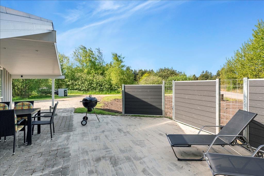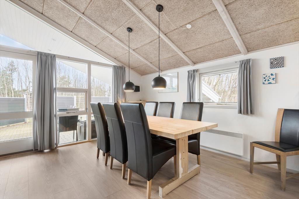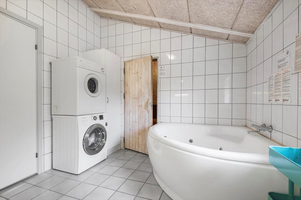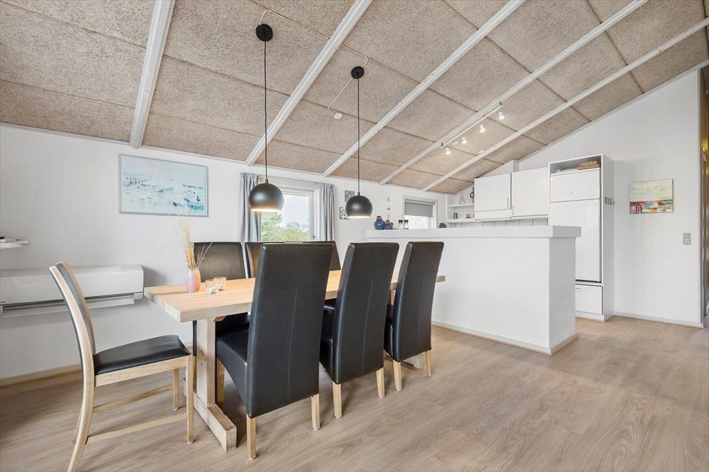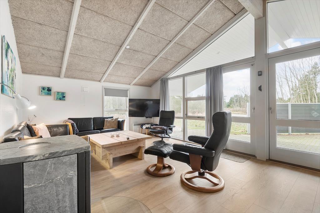 Im Inneren dieses besonders schönen und gepflegten Ferienhauses kannst du dich auf 94 m² nach Herzenslust ausbreiten. Dank der hellen Farbtöne und der großen Fensterflächen ist die Atmosphäre leicht und luftig, und die Raumaufteilung ist vernünftig ausgeführt. Zwei Schlafzimmer sind mit jeweils einem Doppelbett ausgestattet, während das dritte mit zwei Etagenbetten eingerichtet ist. Insgesamt verfügt das Haus also über Schlafplätze für acht Personen. Das große Badezimmer ist nicht nur praktisch mit einer Waschsäule eingerichtet, sondern beherbergt auch einen Whirlpool und eine Sauna, sodass du abschalten und die Urlaubstage in vollen Zügen genießen kannst. Zu guter Letzt ist da noch der Aufenthaltsbereich – ein schöner Raum mit hoher Decke, bequemen Möbeln und Brennofen, der mit der offenen, gut ausgestatteten Küche kombiniert ist.