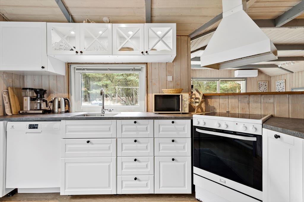 Schon wenn du das Haus von außen siehst, kommst du in Urlaubsstimmung, denn es präsentiert sich auf schöne und klassische Art und Weise. Mit der Holzfassade und dem grünen Dach passt es perfekt in die schöne Umgebung. Im Inneren kannst du dich auf 81 gut aufgeteilten Quadratmetern nach Herzenslust ausbreiten. Das Haus verfügt unter anderem über drei gute Schlafräume mit insgesamt sieben Schlafplätzen. Natürlich gibt es auch ein Badezimmer, in dem du einmal ganz abschalten kannst, wenn du dich selbst im Whirlpool oder in der Sauna verwöhnst.