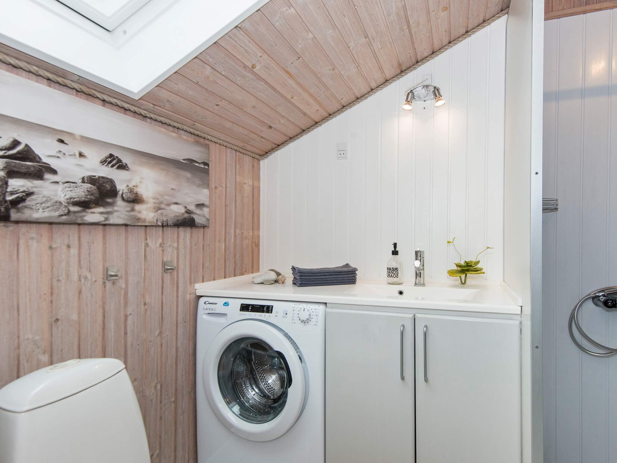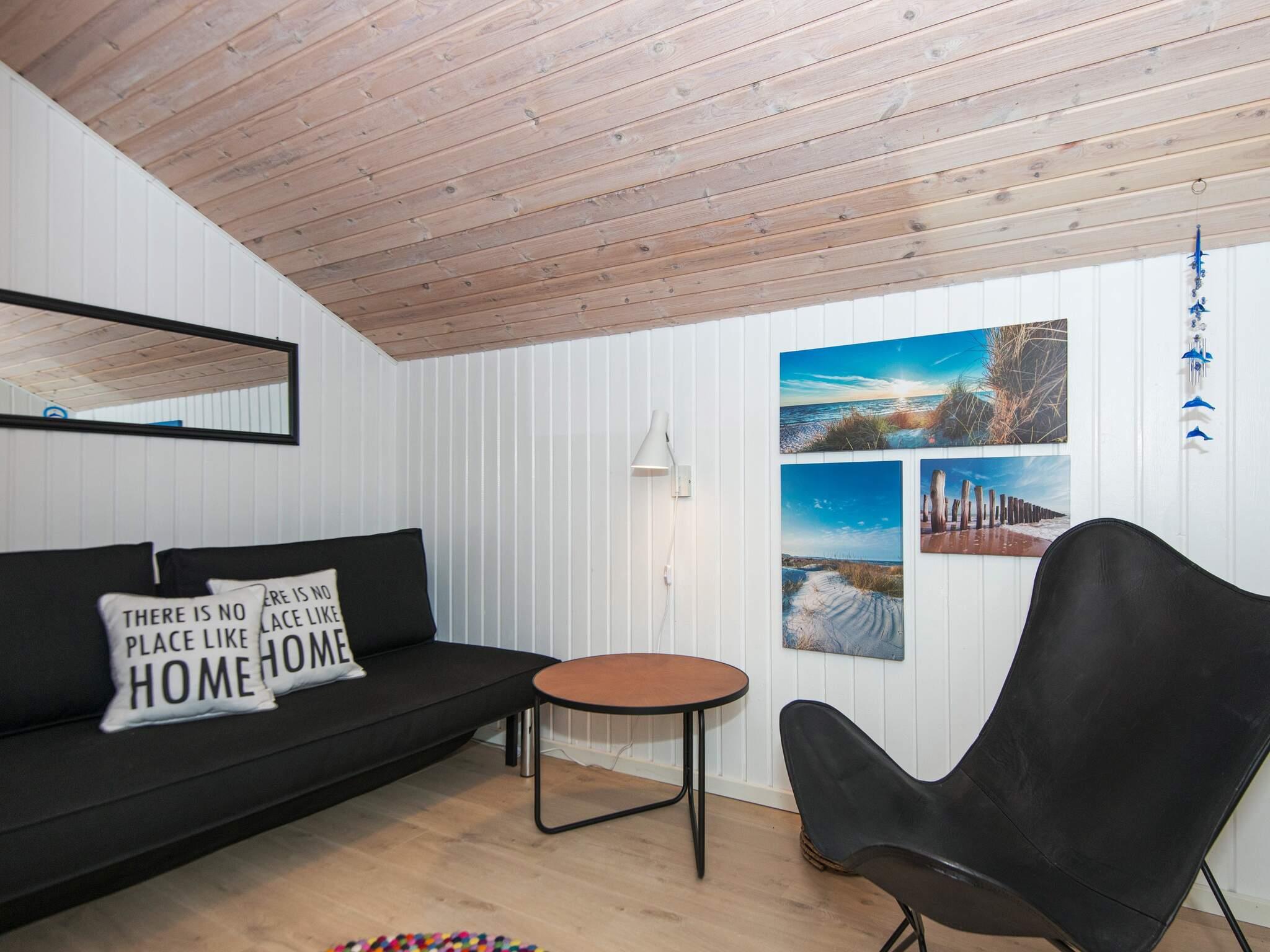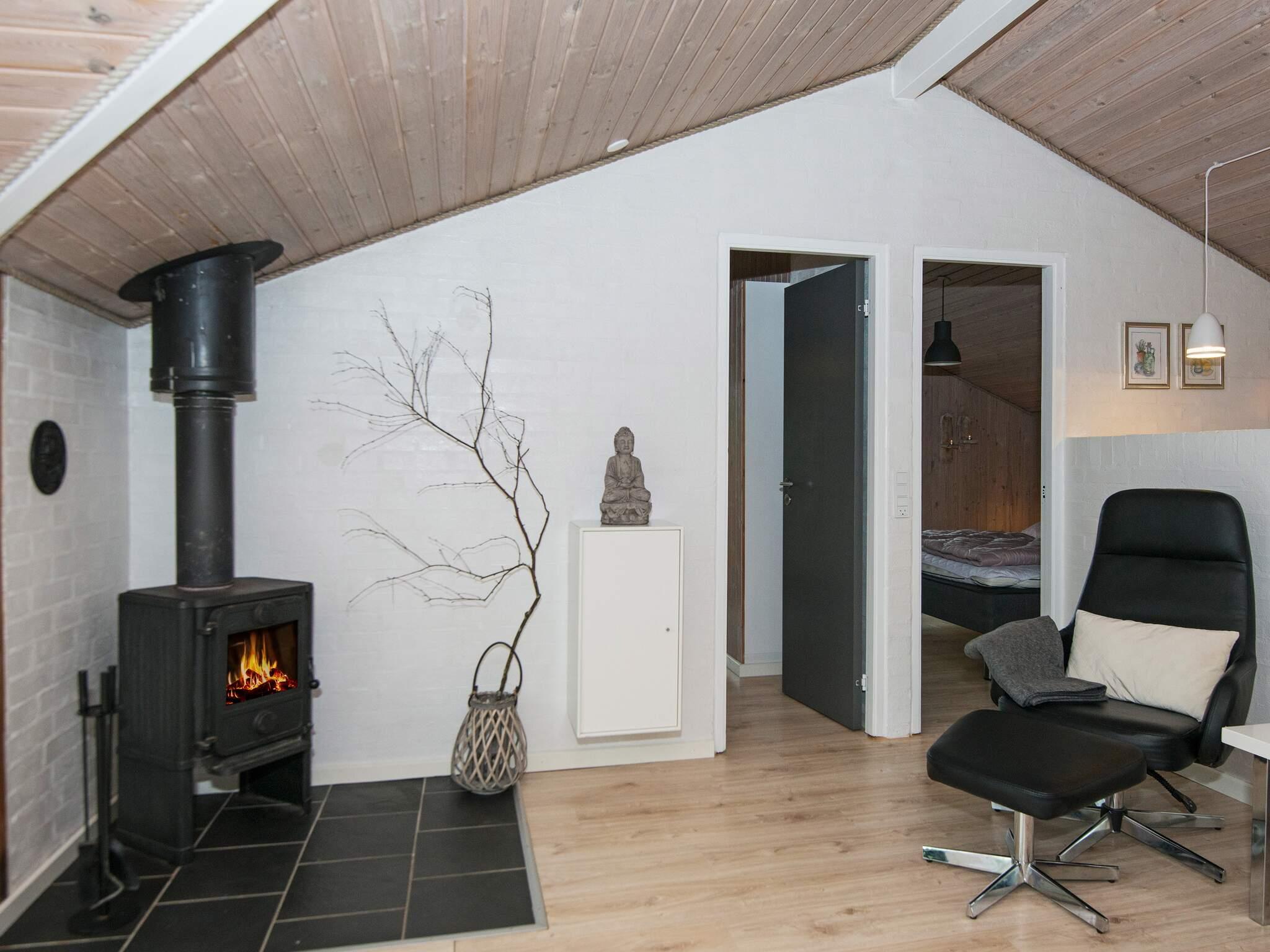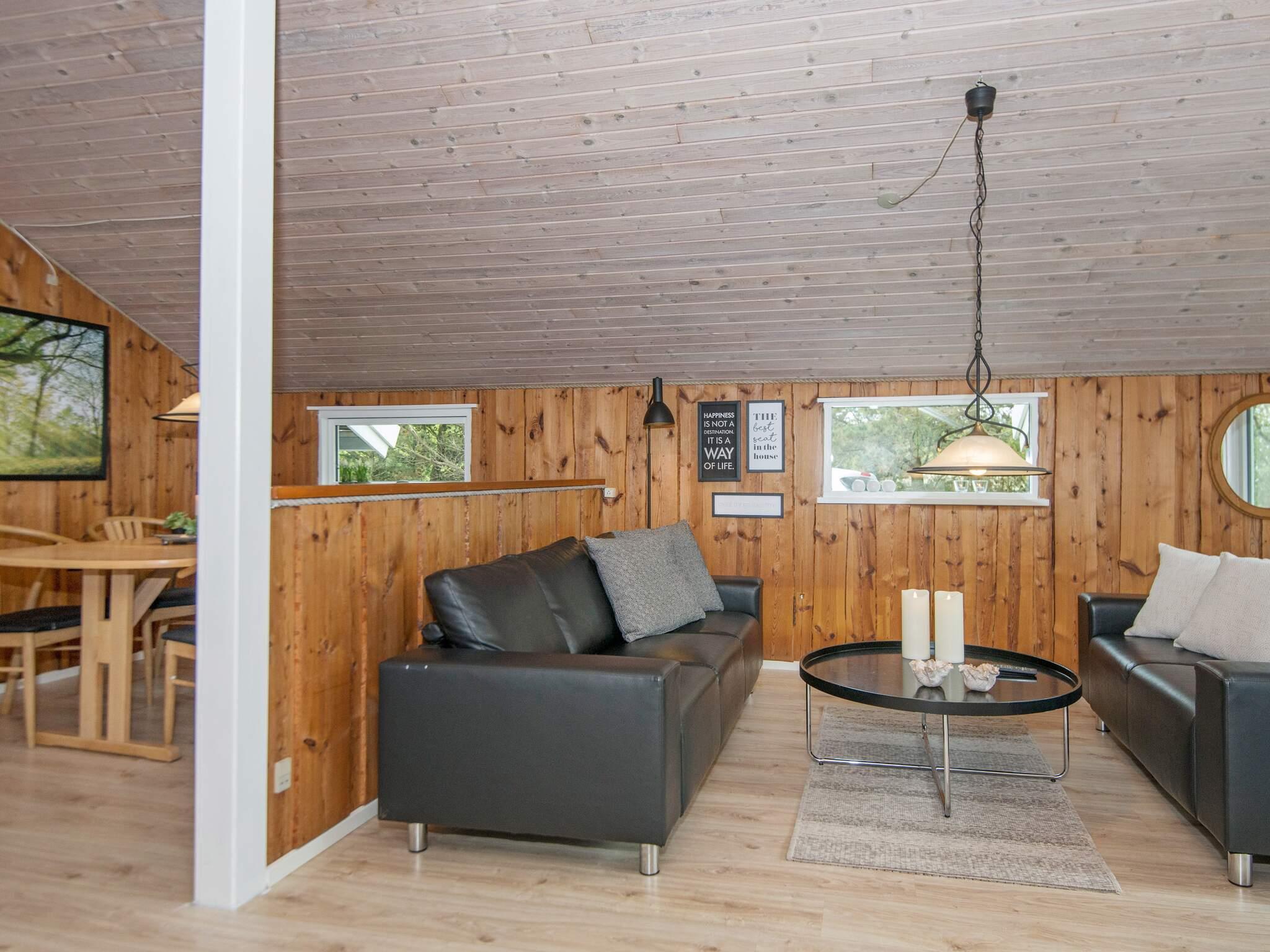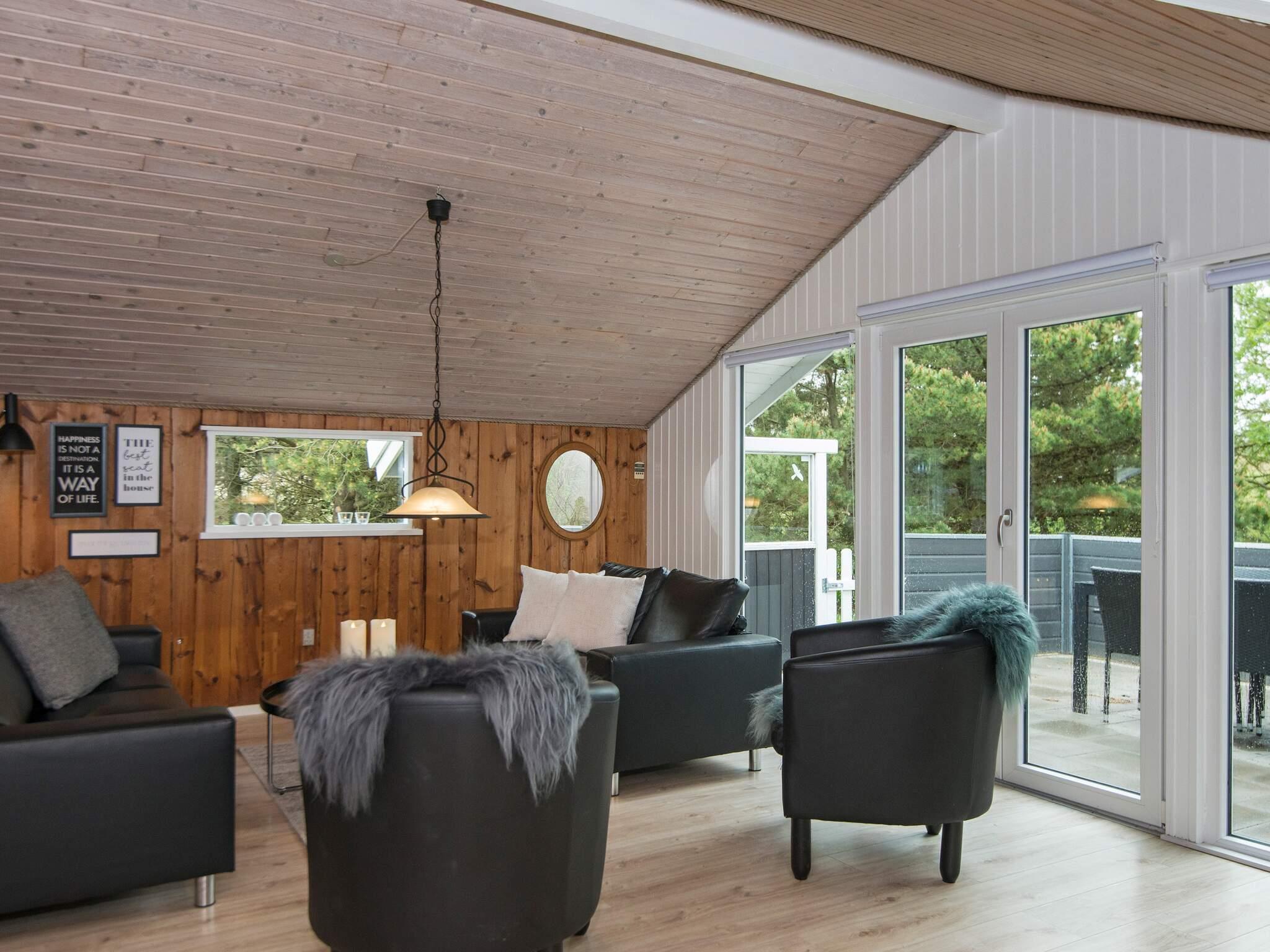 Im Haus gibt es Holzböden. Das Badezimmer is mit angenehmer Fußbodenheizung, Dusche und Sauna ausgestattet Die helle, schmale Küche ist offen mit dem Essbereich verbunden und u.a. mit Gefrierschrank, Geschirrspüler und Mikrowelle ausgestattet. Der helle Wohnbereich hat große Fensterflächen mit Sonne von vor- bis nachmittags und eine gemütliche Essecke. Holzofen sowie WLAN, TV und Stereoanlage mit CD-Player sind ebenfalls vorhanden.