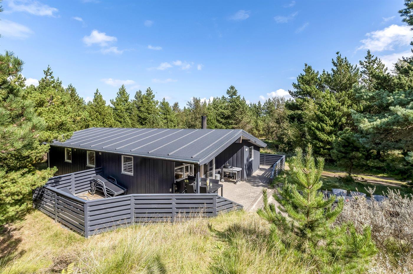 Gemütliches Holzferienhaus auf großem Naturgrundstück mit Whirlpool, Sauna und überdachter Terrasse in Bolilmark, Dänemark.
