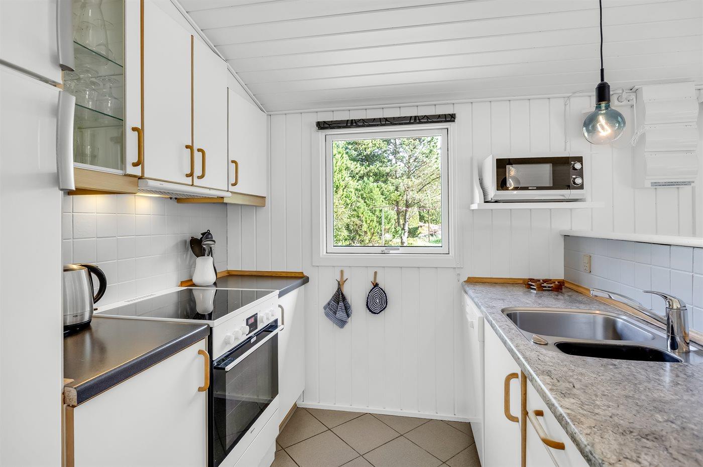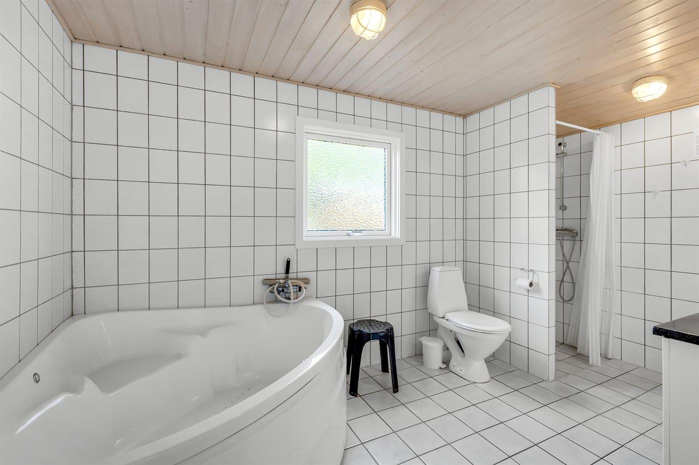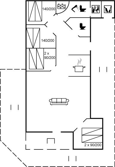 Zum Haus gehört ein großes, teils überdachtes Terrassenareal mit Gartenmöbeln und Weber-Grill. Das helle Badezimmer ist mit 2-Pers. Whirlpool, Dusche, Fußbodenheizung und direktem Zugang zur Sauna ausgestattet. Gästetoilette mit Waschmaschine und Wäschetrockner. Die Küche liegt in Verbindung mit dem Wohnzimmer und enthält u. a. Tiefkühlgerät, Geschirrspüler, Mikrowelle, Umluftofen und Herd mit Ceran-Feld. Im Wohnzimmer gibt es u. a. Kaminofen und TV. Die Schlafplätze verteilen sich auf 4 helle Schlafzimmer; 2 mit Doppelbett und 2 mit je 2 Einzelbetten.