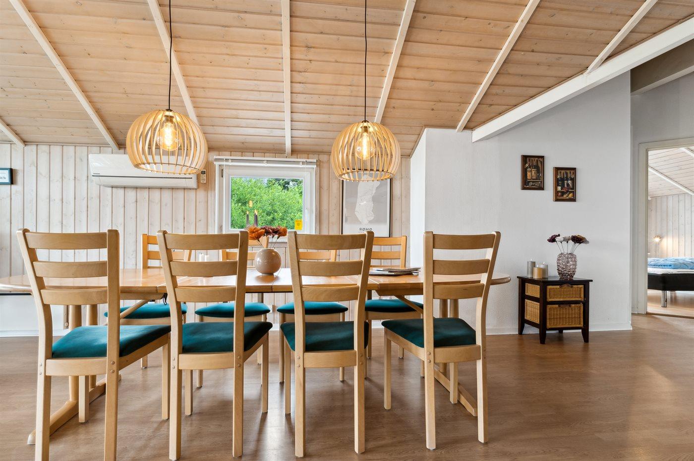 Dieses Ferienhaus aus Holz liegt auf einem großen Naturgrundstück. Zum Haus gehören sowohl offene als überdachte Terrasse mit Gartenmöbeln. Das Haus ist für 2 Familien besonders gut geeignet und liegt in naturschöner Umgebung – ca. 13 km von einem 27-Loch Golfplatz, ca. 18 km von einem Badeland und ca. 7 km von einem Angelsee entfernt.