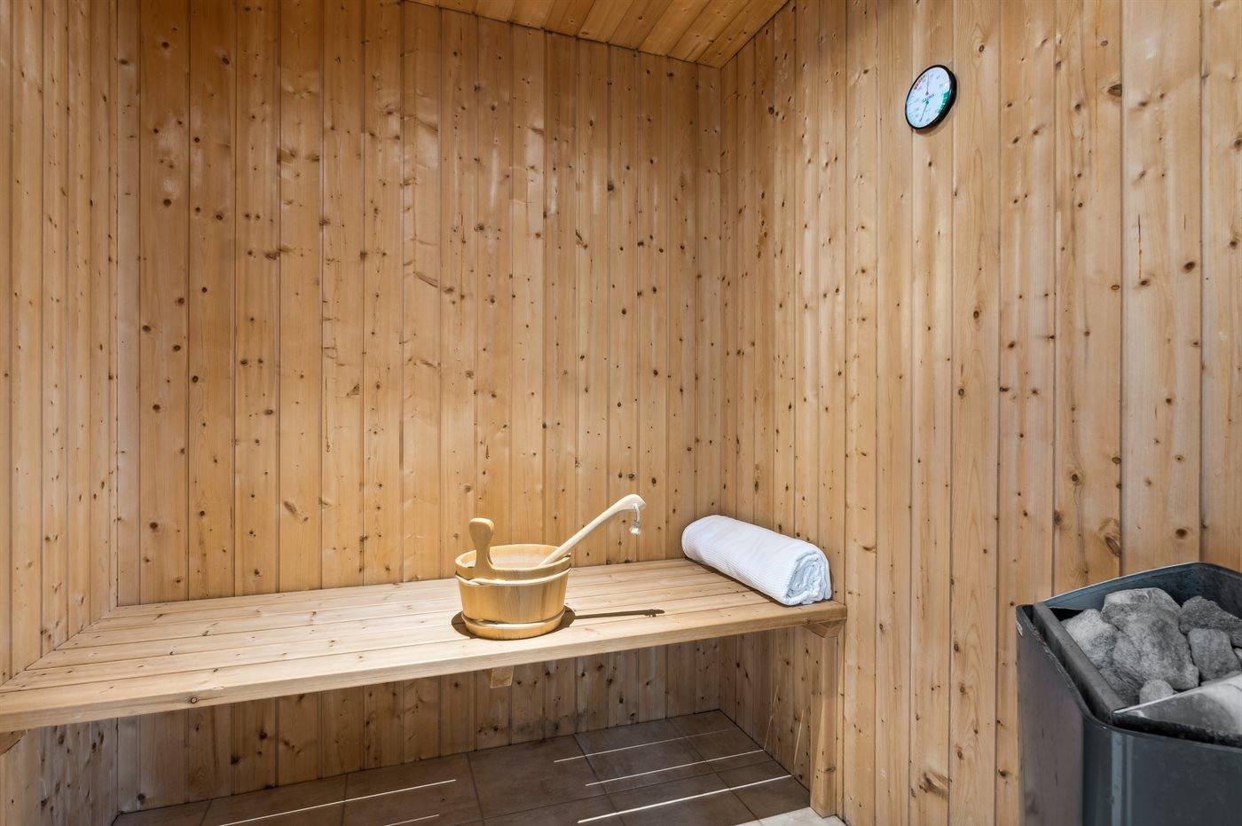 Es gibt 2 Badezimmer mit Dusche und 2 Toiletten. Fußbodenheizung in 2 Badezimmern. Es steht eine Sauna mit Dampftherapie zur Verfügung in der Sie sich so richtig entspannen können.
