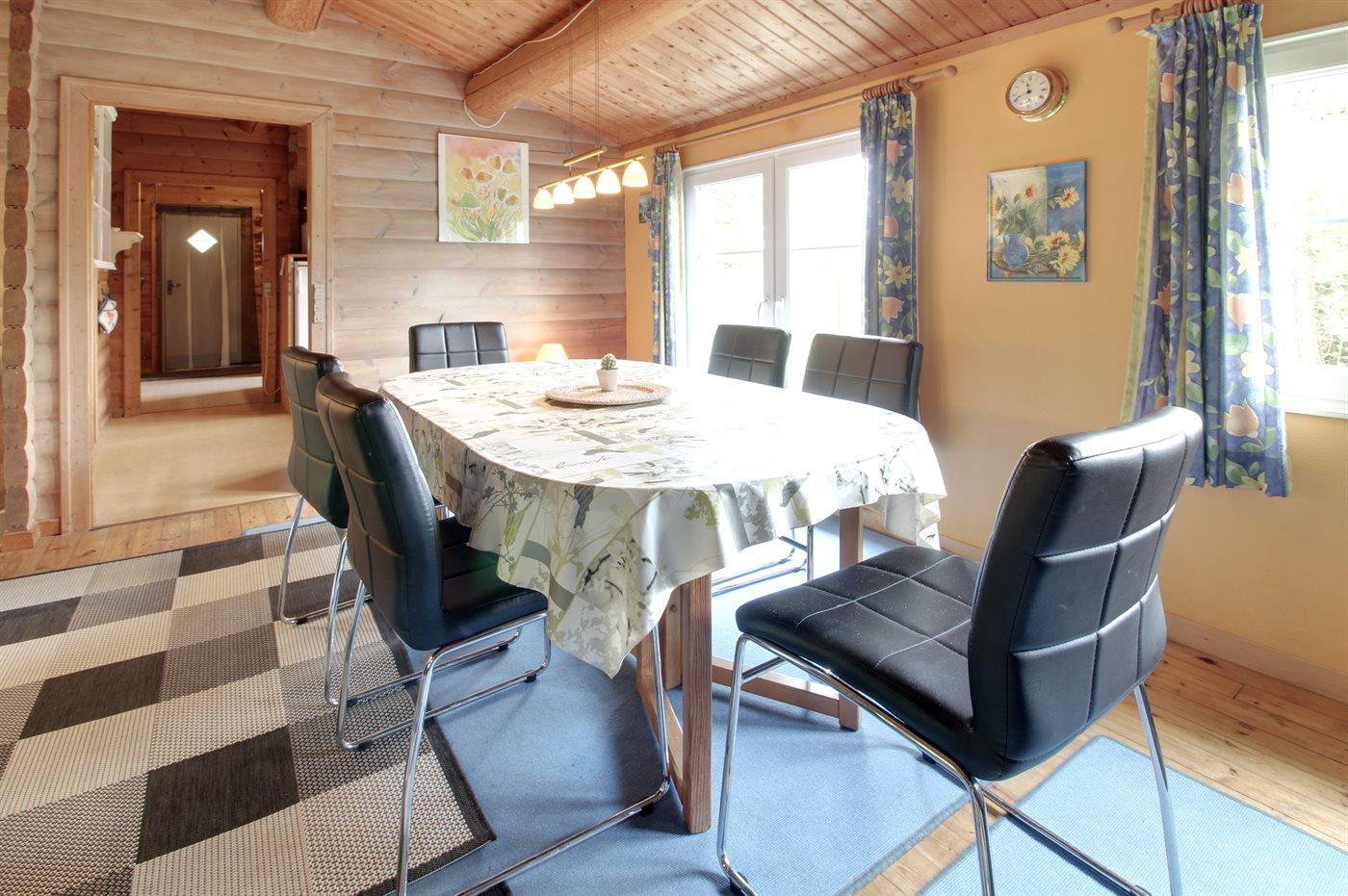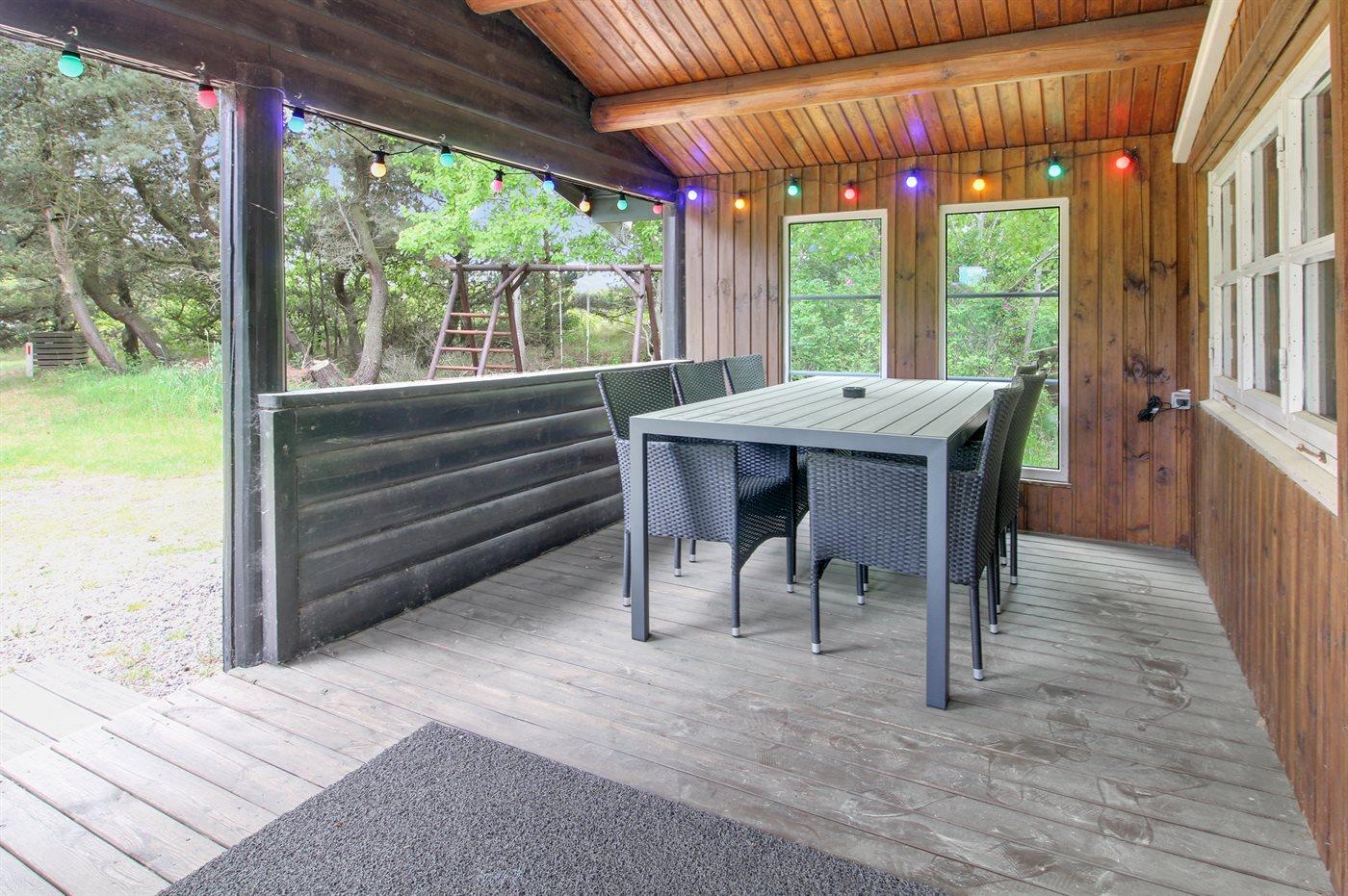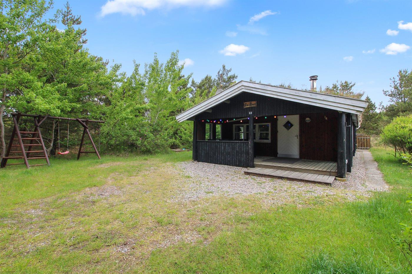 Ferienhaus aus Holz, 1977 gebaut und 2000 modernisiert, in ruhiger Umgebung auf einem schönen Naturgrundstück, dicht an Pfad zum Strand gelegen. Zum Haus gehört sowohl offenes als überdachtes Terrassenareal mit Gartenmöbeln. Badezimmer mit Dusche. Die Küche ist u. a. mit Tiefkühlgerät, Warmluftofen und Mikrowelle ausgerüstet. Das Wohnzimmer ist mit TV mit digitalem Satellitenanschluss, Stereoanlage mit CD-Spieler sowie Kaminofen eingerichtet. Die Schlafplätze des Hauses verteilen sich auf 2 Zimmer mit je 2 Einzelbetten. Für die kleinen Feriengäste sind Sandkiste und Schaukel vorhanden.
