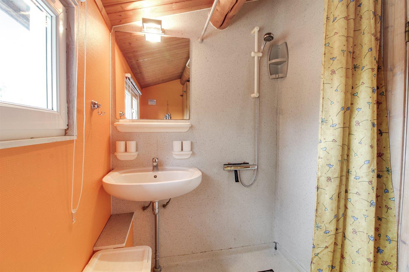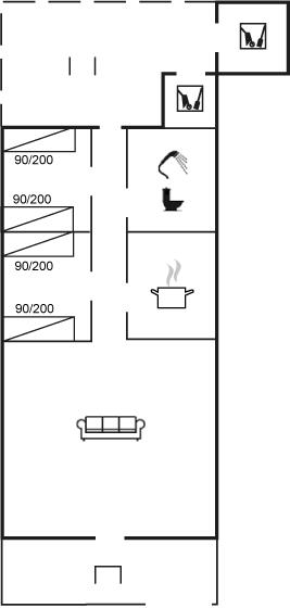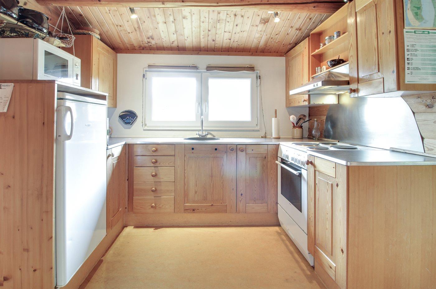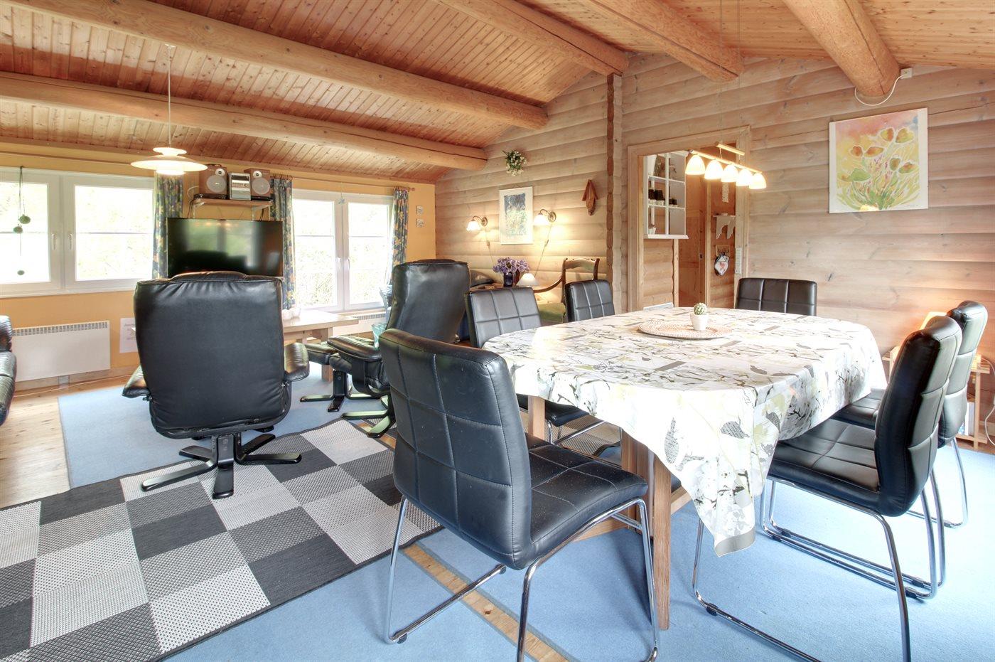 Ferienhaus aus Holz, 1977 gebaut und 2000 modernisiert, in ruhiger Umgebung auf einem schönen Naturgrundstück, dicht an Pfad zum Strand gelegen. Zum Haus gehört sowohl offenes als überdachtes Terrassenareal mit Gartenmöbeln. Badezimmer mit Dusche. Die Küche ist u. a. mit Tiefkühlgerät, Warmluftofen und Mikrowelle ausgerüstet. Das Wohnzimmer ist mit TV mit digitalem Satellitenanschluss, Stereoanlage mit CD-Spieler sowie Kaminofen eingerichtet. Die Schlafplätze des Hauses verteilen sich auf 2 Zimmer mit je 2 Einzelbetten. Für die kleinen Feriengäste sind Sandkiste und Schaukel vorhanden.