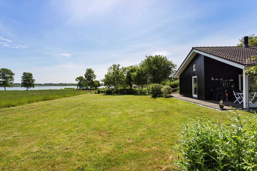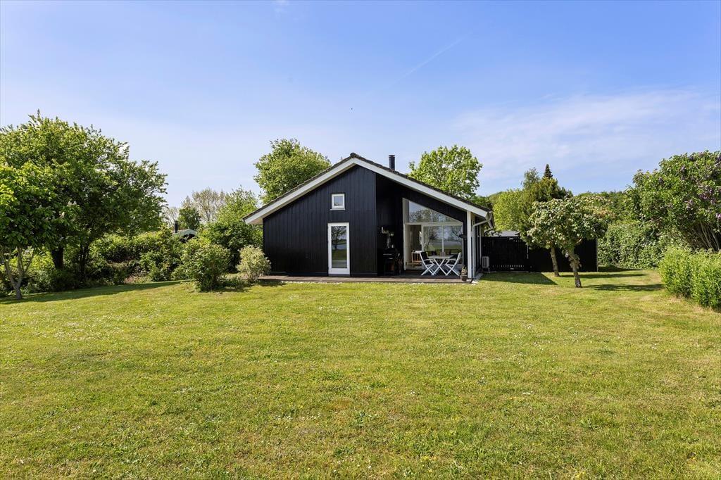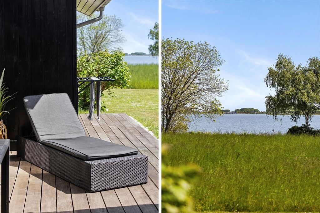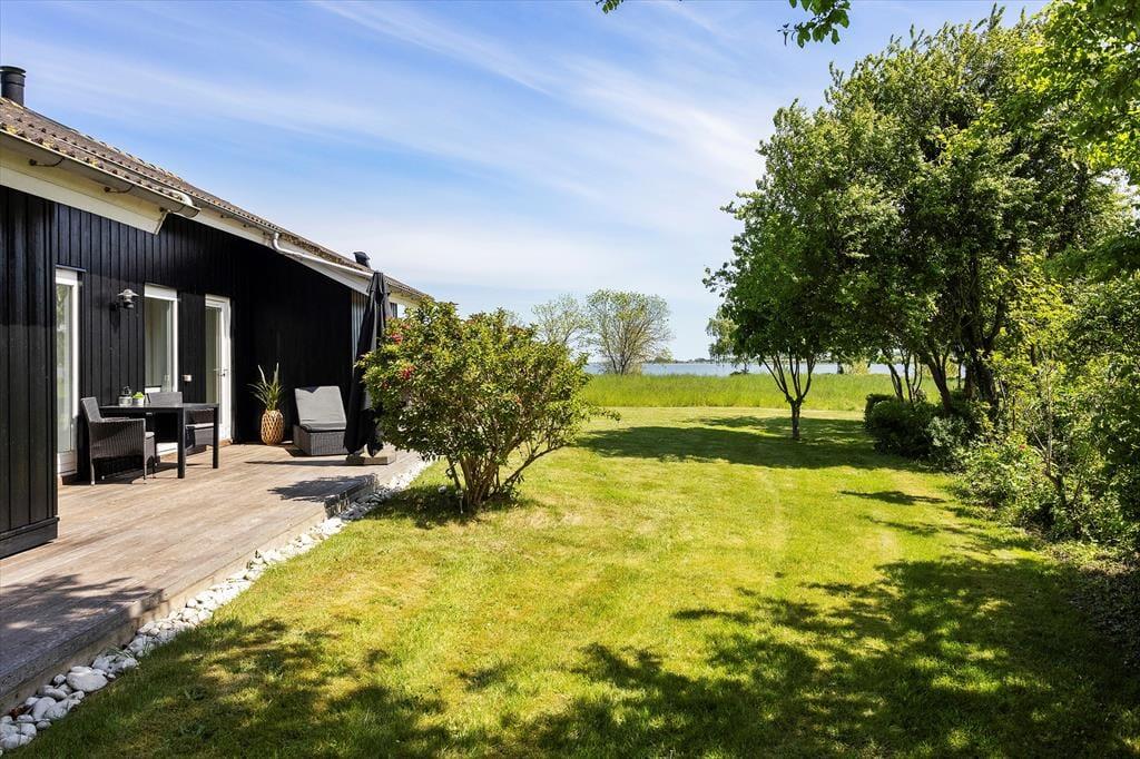 Vom Wohnzimmer aus hast du direkten Zugang zu einer gemütlichen, teilweise überdachten Terrasse, von der aus du einen Panoramablick auf den Rasen und das Meer genießen kannst. Hier kannst du morgens mit einer Tasse Kaffee sitzen, abends leckere Mahlzeiten grillen und den Blick über die schöne Landschaft schweifen lassen. Der Garten ist eine grüne Oase, die reichlich Platz für Outdoor-Aktivitäten und Spiel für Groß und Klein bietet. Wenn das Wetter gut ist, kannst du die kurze Strecke von 50 Metern zum Badestrand gehen, den Sand zwischen deinen Zehen spüren, im klaren Wasser baden oder einfach die Sonnenstrahlen genießen.