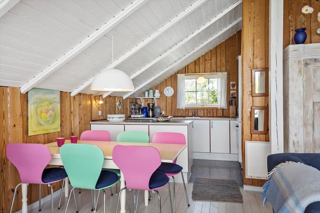 Die Terrasse und der Garten sind perfekt für Entspannung und Aktivitäten im Freien. Die geräumige Terrasse ist ideal, um den Morgenkaffee zu genießen, das Abendessen zu grillen oder einfach mit einem guten Buch zu entspannen. Der Garten mit seiner gepflegten Rasenfläche lädt zu Spielen und Spaß für Kinder und Erwachsene ein. Es gibt auch einen praktischen Fischreinigungstisch, sodass du deinen Fang problemlos reinigen kannst, wenn du angeln warst. Mit nur 100 Metern zum nahegelegenen Badestrand ist es einfach, ein Bad im klaren Wasser zu nehmen oder einen friedlichen Spaziergang entlang der Küste zu machen. Hier kannst du das beruhigende Rauschen der Wellen hören und den Sand zwischen deinen Zehen spüren.