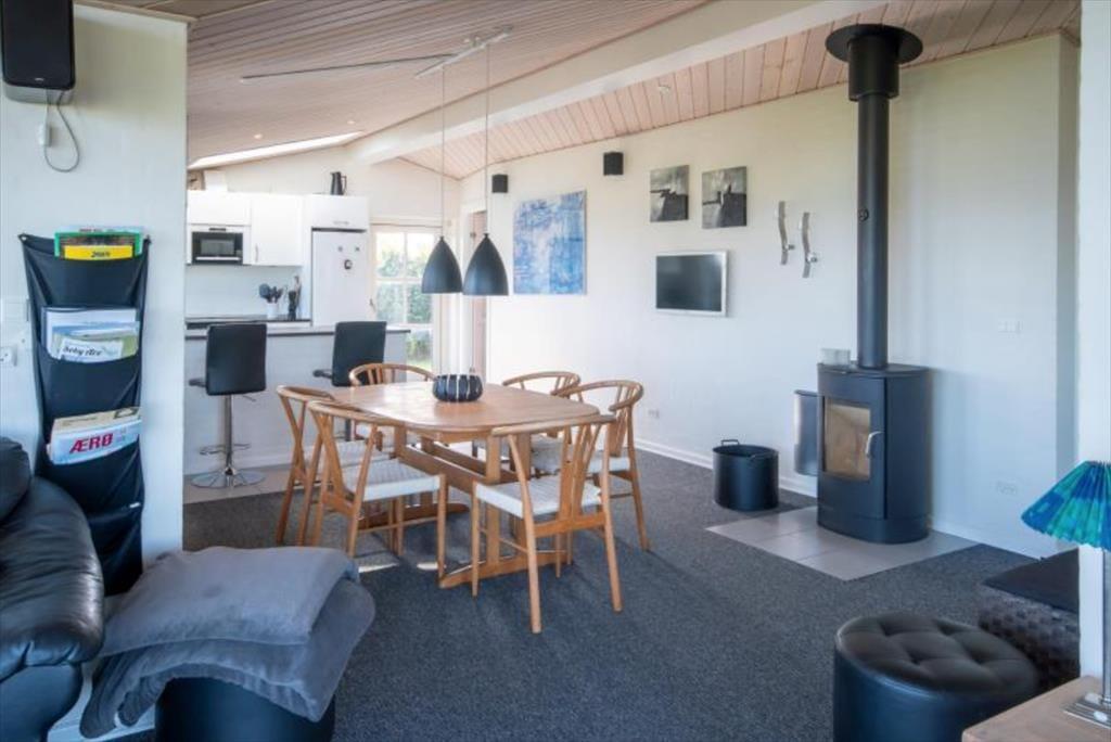 Einzigartiges Ferienhaus mit einer prachtvollen Aussicht über das Meer bis Ærøskøbing und Fünen. Das Haus liegt in einer Sackgasse, in der Nähe eines kinderfreundlichen Strandes. Im Garten können sich die Kinder mit Schaukel, Sandkasten und Bolzplatz beschäftigen.