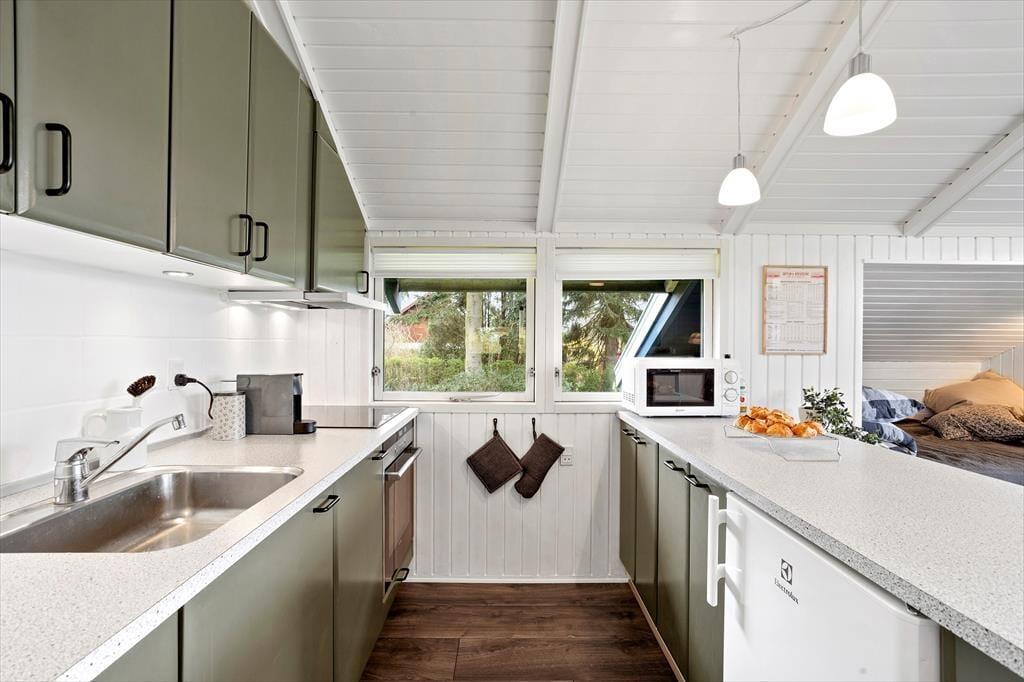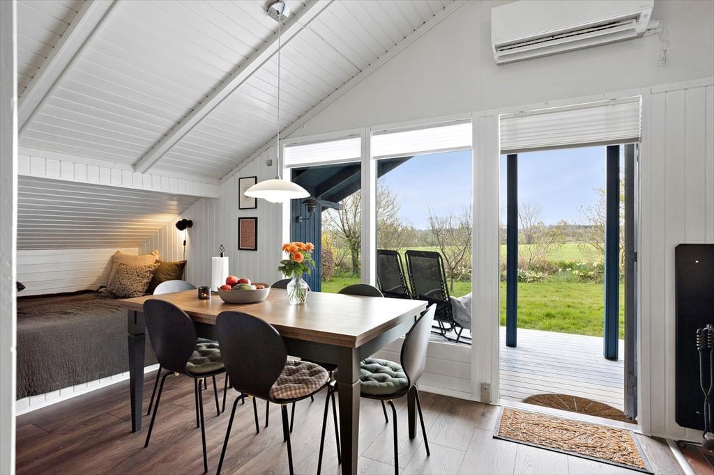 Der Garten rund um das Ferienhaus ist eine wahre Oase, perfekt zum Entspannen und für Aktivitäten. Hier können Sie lange Sommerabende auf der Terrasse genießen, die sich ideal für den Morgenkaffee und späte Grillabende eignet. Der gemütliche Garten lädt zum Spielen und Entspannen ein und ist auch ein fantastischer Ort, um die langen, hellen Sommertage zu genießen. Dank der kurzen Entfernung zum Strand können Sie ganz einfach im Meer baden, und der gemeinsame Badesteg bietet Ihnen die Möglichkeit zum Angeln oder zum Genießen der ruhigen Atmosphäre am Wasser. Hier können Sie die Ruhe und die Schönheit der Natur um sich herum wirklich spüren.