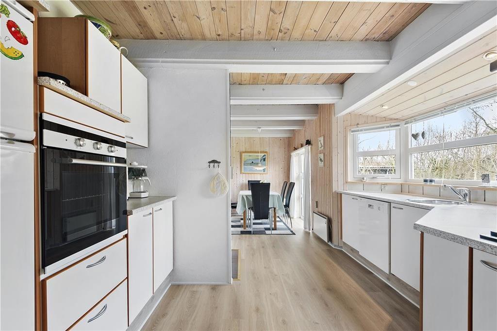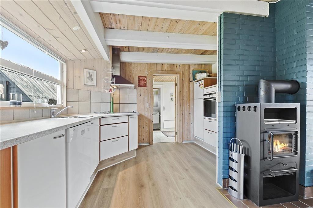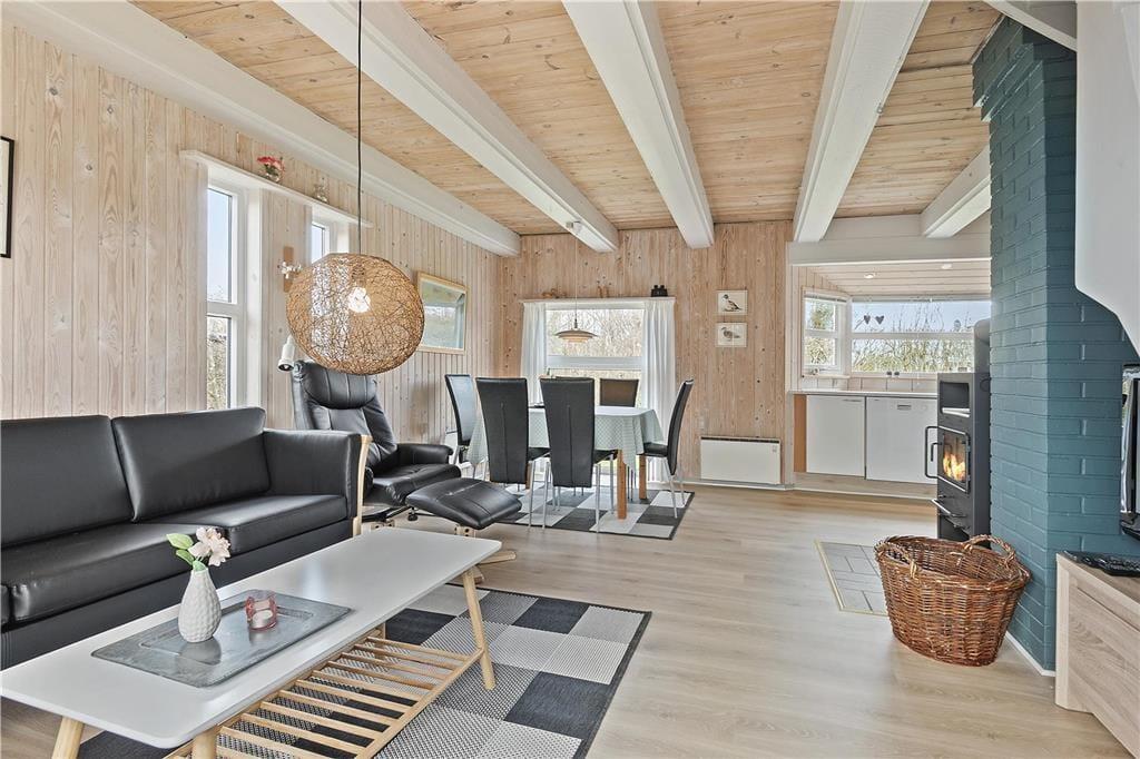 Dieses Urlaubsdomizil in Bork Havn überzeugt mit einer praktisch aufgeteilten Wohnfläche, die sich über zwei Etagen erstreckt, und mit einer Fülle attraktiver Details, wie z.B. ein Kaminofen und eine nach Süden ausgerichtete Terrasse. Auch die Lage ist ausgezeichnet - Sie wohnen in einem geschlossenen Weg, nur wenige hundert Meter von Bork Havns stimmungsvollem Hafen am Ringkøbing Fjord entfernt.