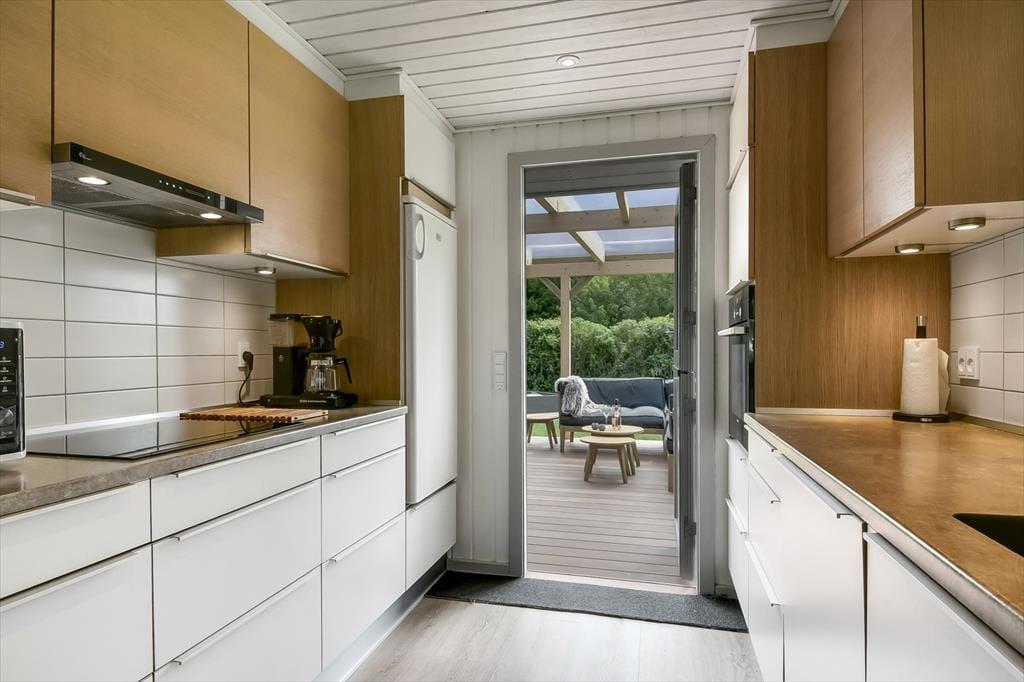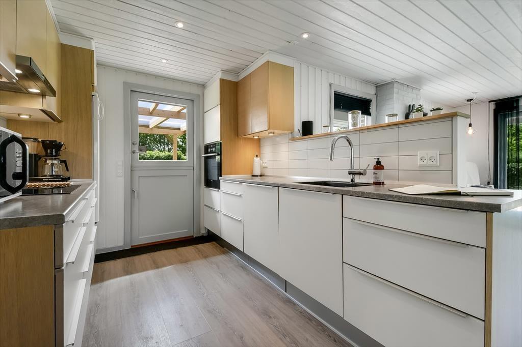 Bereits seit dem Jahr 1981 befindet sich dieses Urlaubsdomizil an dieser friedvollen Adresse. Im Laufe der Jahre wurde das Objekt liebevoll gehegt und gepflegt. Die letzte Renovierung wurde 2020 durchgeführt, sodass sich Ihnen nunmehr alle Räume mit einem einladenden Ambiente und einer modernen Einrichtung in gedämpften Farbtönen präsentieren. Das Wohnzimmer und die Küche bilden zusammen den großen Aufenthaltsbereich, in dem Sie gemütlich im Kreise Ihrer Lieben die Mahlzeiten zubereiten, in geselliger Runde rund um den Esstisch sitzen und Filmabende auf dem Sofa vor dem Kaminofen verbringen können. Zu Abend können Sie sich in eines der drei Schlafräume, die allesamt mit Doppelbetten ausgestattet sind, zu Ruhe begeben und neue Energie für Ihren nächsten erlebnisreichen Urlaubstag schöpfen. Zur Wohnfläche gehört selbstverständlich auch ein Badezimmer, das Sie mit einem gefliesten Boden und einer Dusche empfängt.