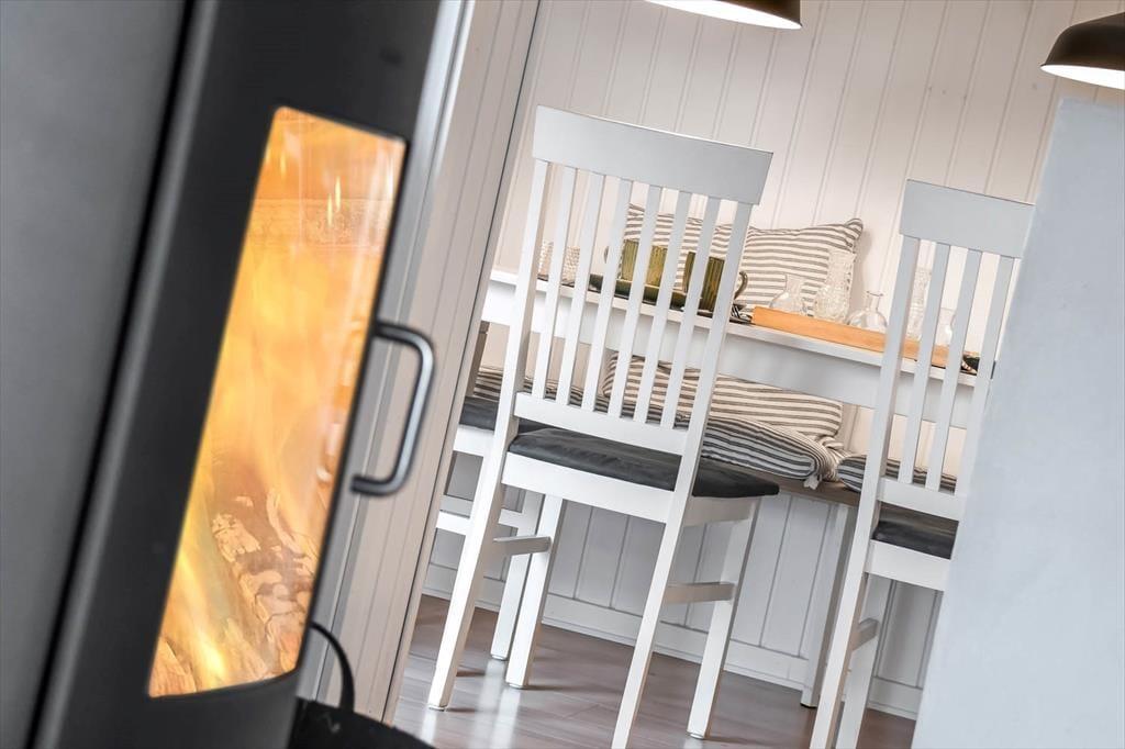 Drinnen empfängt dich eine warme und gemütliche Atmosphäre. Der helle Wohnbereich verfügt über einen Kaminofen, der an kühleren Tagen für eine behagliche Stimmung sorgt, während die großen Fenster viel Tageslicht hereinlassen und einen schönen Blick ins Grüne bieten. Am Esstisch könnt ihr gemeinsam speisen oder euch in der Sofaecke mit einem guten Buch entspannen. Die offene Küche ist direkt in den Wohnbereich integriert, sodass das Ferienleben entspannt und unkompliziert bleibt. Drei gemütliche Schlafzimmer und ein Badezimmer sorgen dafür, dass ihr euch hier rundum wohlfühlen könnt.