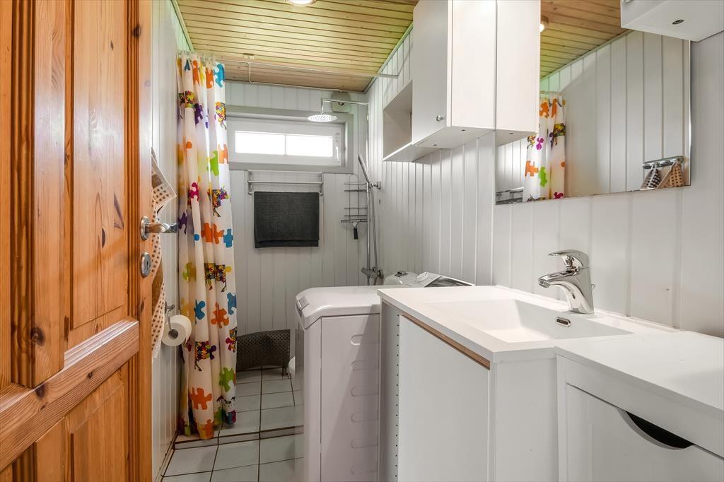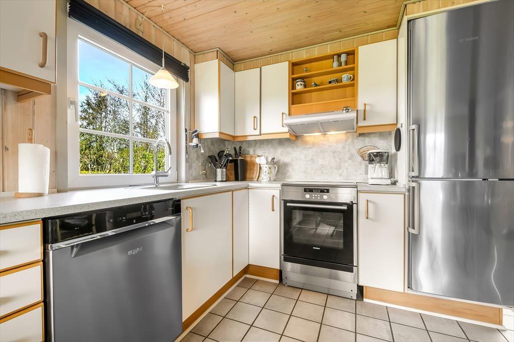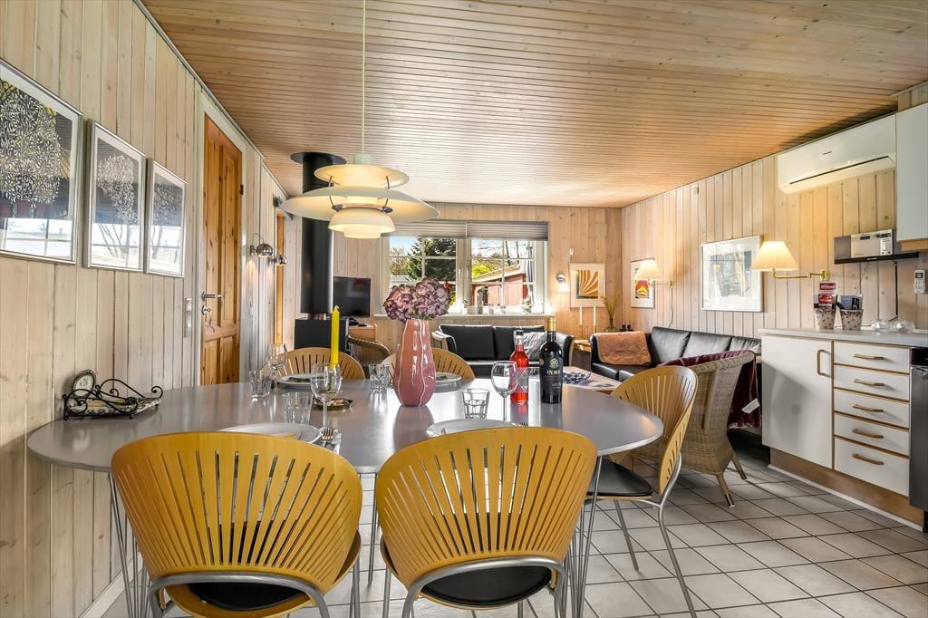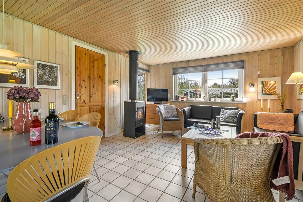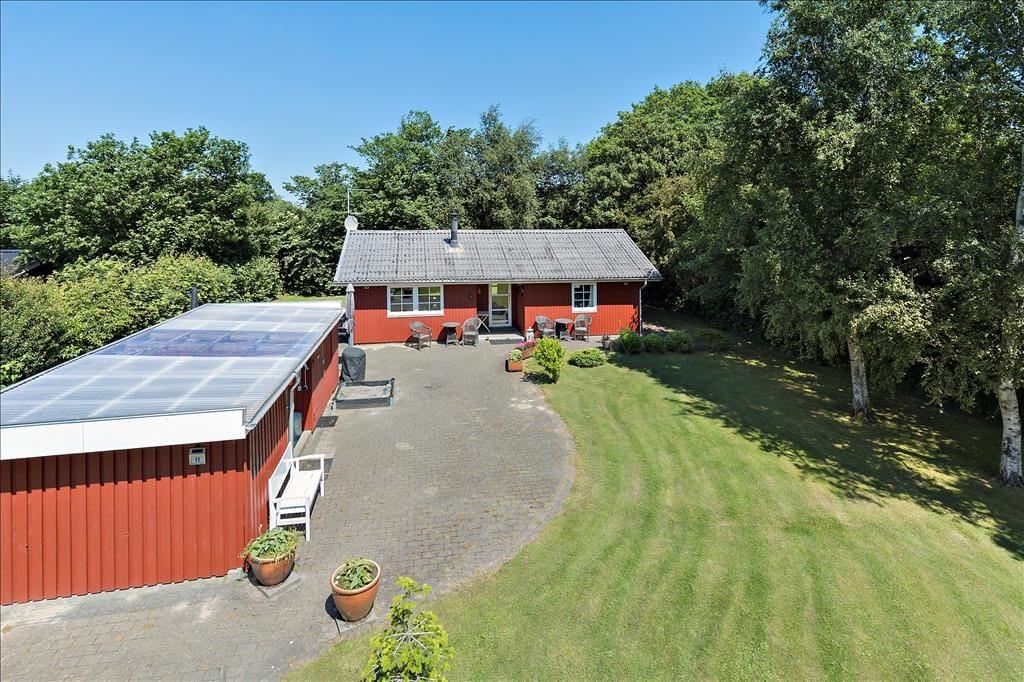 Das Urlaubsdomizil präsentiert sich Ihnen in ansprechender und klassischer Weise mit einer roten Holzfassade und weißen Fensterrahmen, die einen schönen Kontrast zum grünen Garten bilden. Im Hausinneren werden Sie im Nu feststellen und sehen, dass das Haus stets gehegt und gepflegt wurde. Dank der gemütlichen Einrichtung werden Sie sich sicherlich schnell heimisch fühlen. Im Zuge einer Renovierung im Jahr 2014 wurden die hellen und einladenden Räumlichkeiten des Mietobjektes mit diversen moderne Annehmlichkeiten und Einrichtungsgegenständen versehen. Hierzu zählen unter anderem die Wärmepumpe mit zusätzlicher Kühlfunktion und die in den Wohnraum integrierte Küche. Ein romantisch knisternder Kaminofen und eine Musikanlage sorgen während gemütlicher Stunden auf dem Sofa und selbst bei der Zubereitung der Mahlzeiten für ein Maximum an Stimmung. Ihnen stehen zwei Schlafräume mit je einem Doppelbett und ein Schlafraum mit zwei Einzelbetten zur Verfügung. Das Badezimmer ist ebenfalls gut eingerichtet und umfasst neben einer Dusche auch eine Waschmaschine.